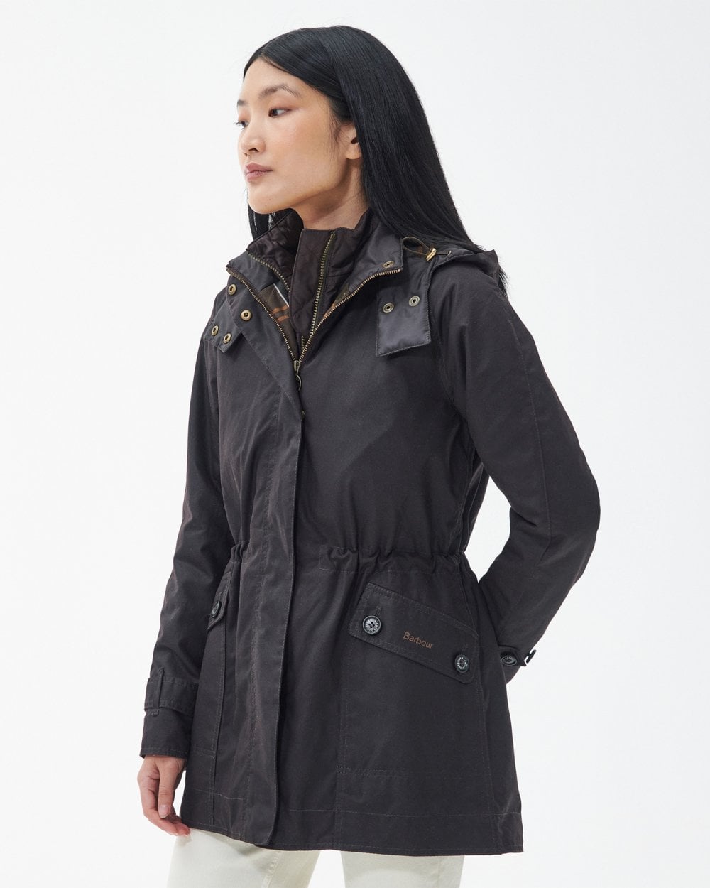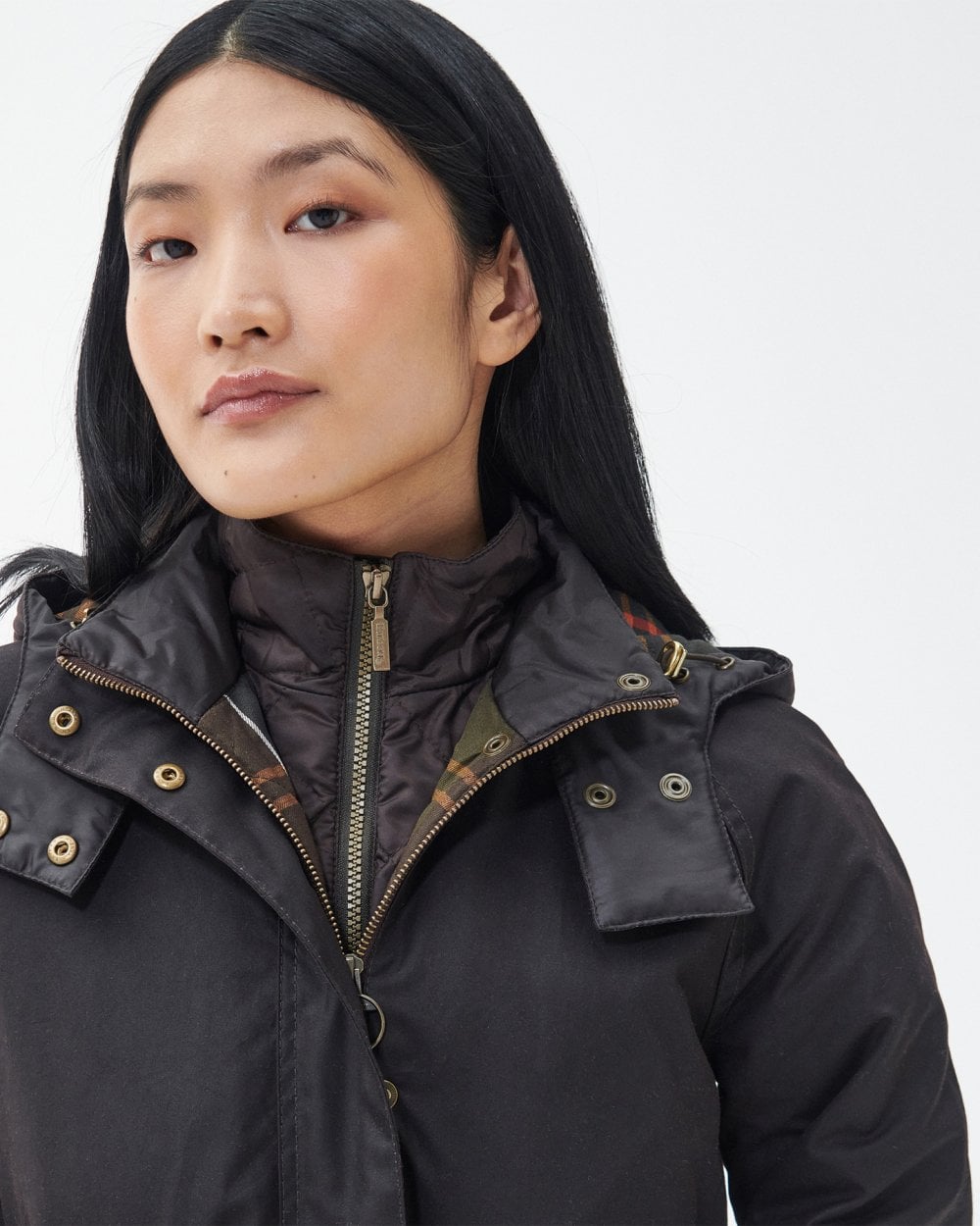 The Barbour Cannich wax features a midlength fishtail parka inspired style. With a detachable hood and inner baffle body, this jacket features body insulation and lining in a quilted tartan. This jacket is finished with branding to the left pocket.