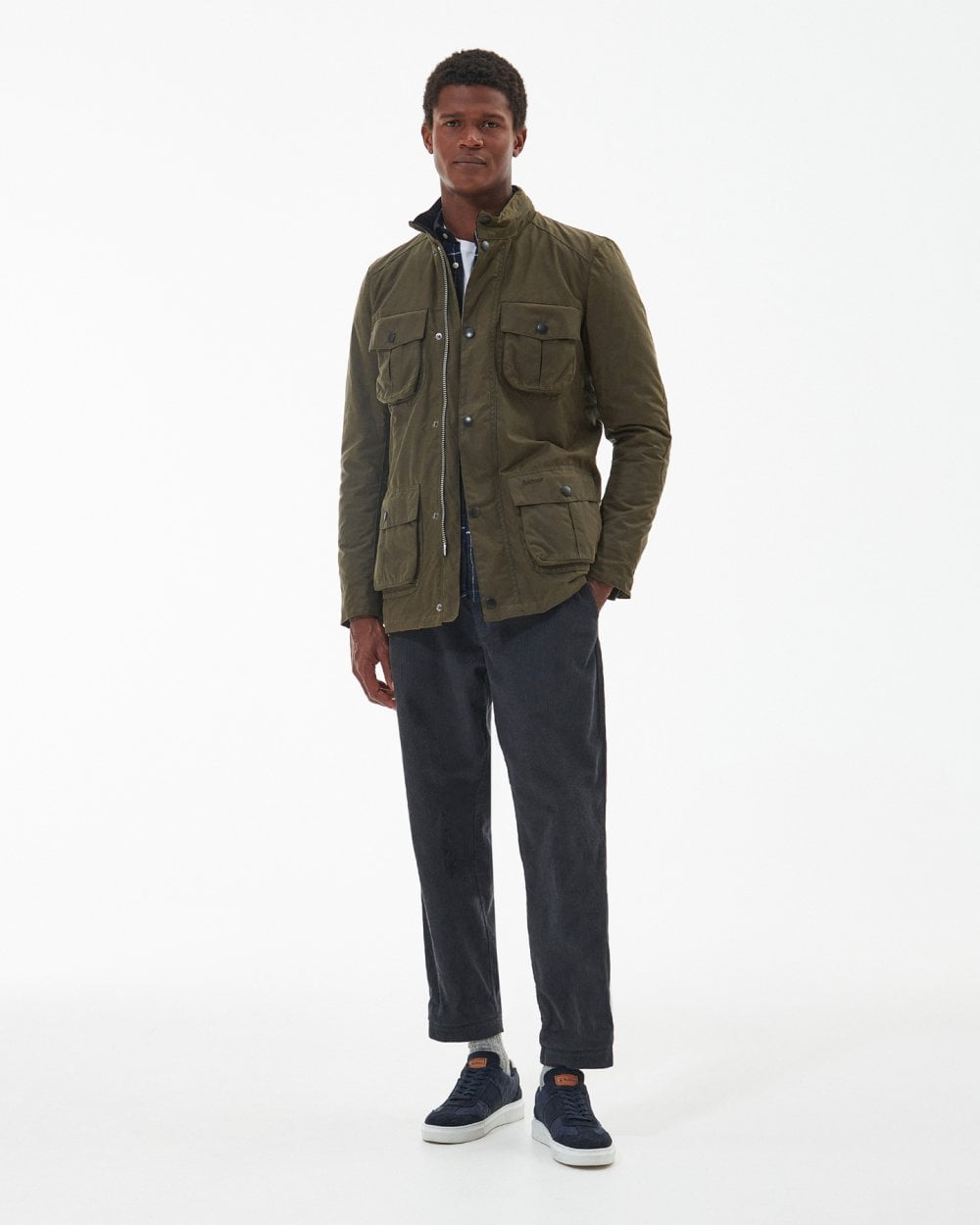 The Corbridge is a rugged utility-style men's waxed jacket updated with a contemporary engineered fit. With winter in mind, this multi-functional jacket is constructed in Barbour's hardy 6oz Sylkoil waxed cotton with a comfortable, lightweight Nylon lining quilted to 50g wadding, for additional warmth. The corduroy-lined funnel collar features an integral Nylon hood complete with adjustable toggles for a perfect fit, offering wet-weather defence when needed but easily stowed away in the collar on dry days. Built to offer comfort and protection to those who are active outdoors in any weather, the Corbridge benefits from adjustable cuffs, a robust two-way zip, a storm fly front with stud fastenings and an action back. The classic four-pocket detail adds a stylish, practical feature that keeps essentials safe and hands free. Available in a choice of three versatile colours. As this is a slim fitting jacket, we would advise purchasing the next size up than you would normally choose.
