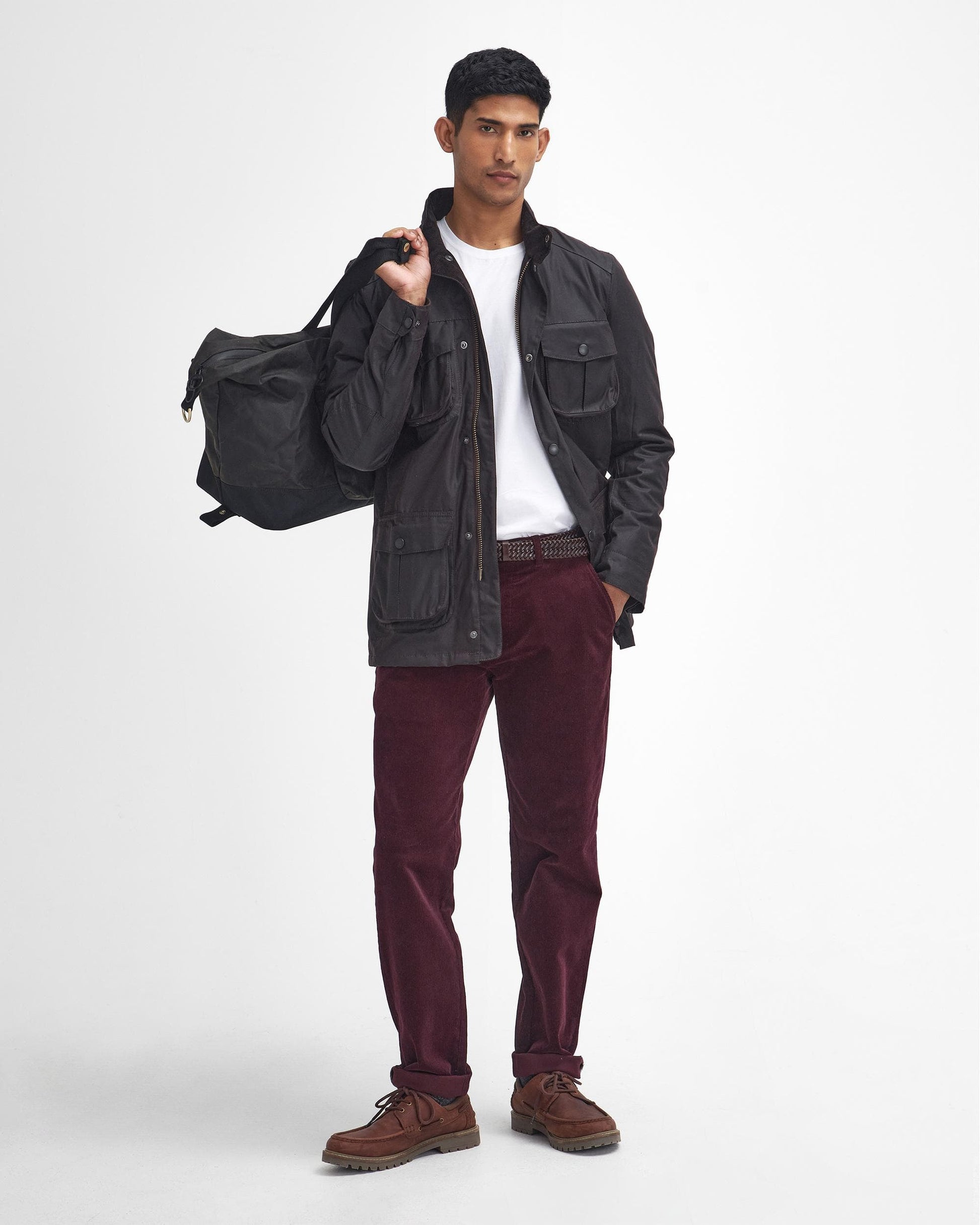 The Corbridge is a rugged utility-style men's waxed jacket updated with a contemporary engineered fit. With winter in mind, this multi-functional jacket is constructed in Barbour's hardy 6oz Sylkoil waxed cotton with a comfortable, lightweight Nylon lining quilted to 50g wadding, for additional warmth. The corduroy-lined funnel collar features an integral Nylon hood complete with adjustable toggles for a perfect fit, offering wet-weather defence when needed but easily stowed away in the collar on dry days. Built to offer comfort and protection to those who are active outdoors in any weather, the Corbridge benefits from adjustable cuffs, a robust two-way zip, a storm fly front with stud fastenings and an action back. The classic four-pocket detail adds a stylish, practical feature that keeps essentials safe and hands free. Available in a choice of three versatile colours. As this is a slim fitting jacket, we would advise purchasing the next size up than you would normally choose.