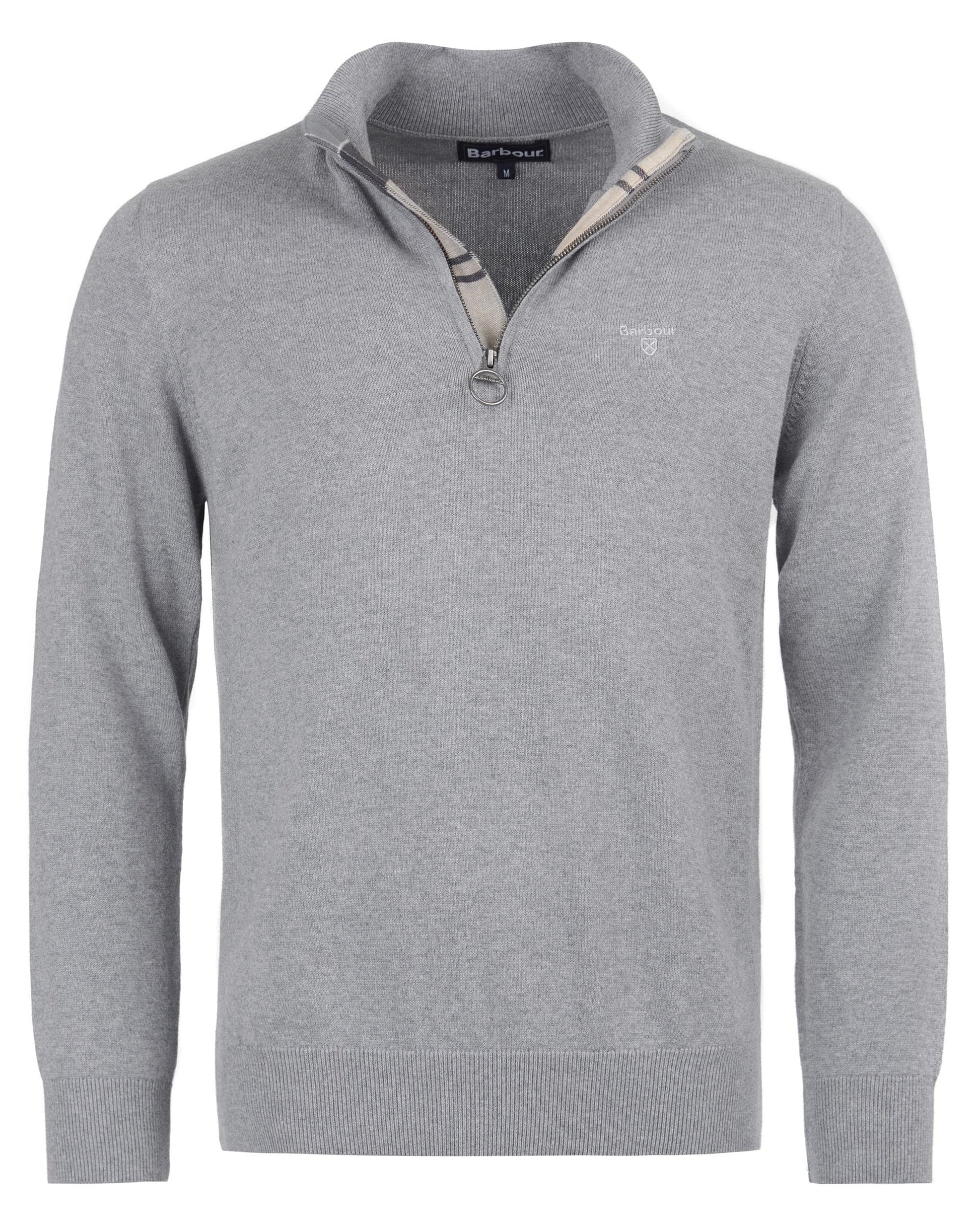 Barbour Cotton Mens Half Zip Jumper in Grey Marl