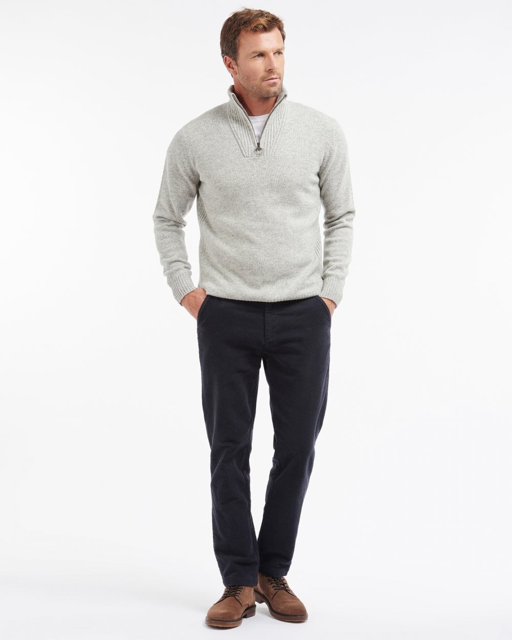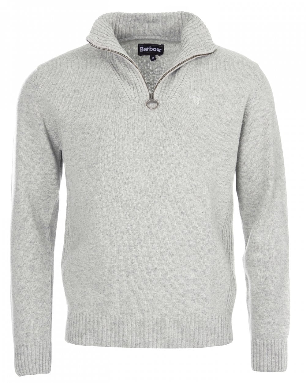 Barbour Essential Lambswool Mens Half-Zip Jumper in Light Grey Marl