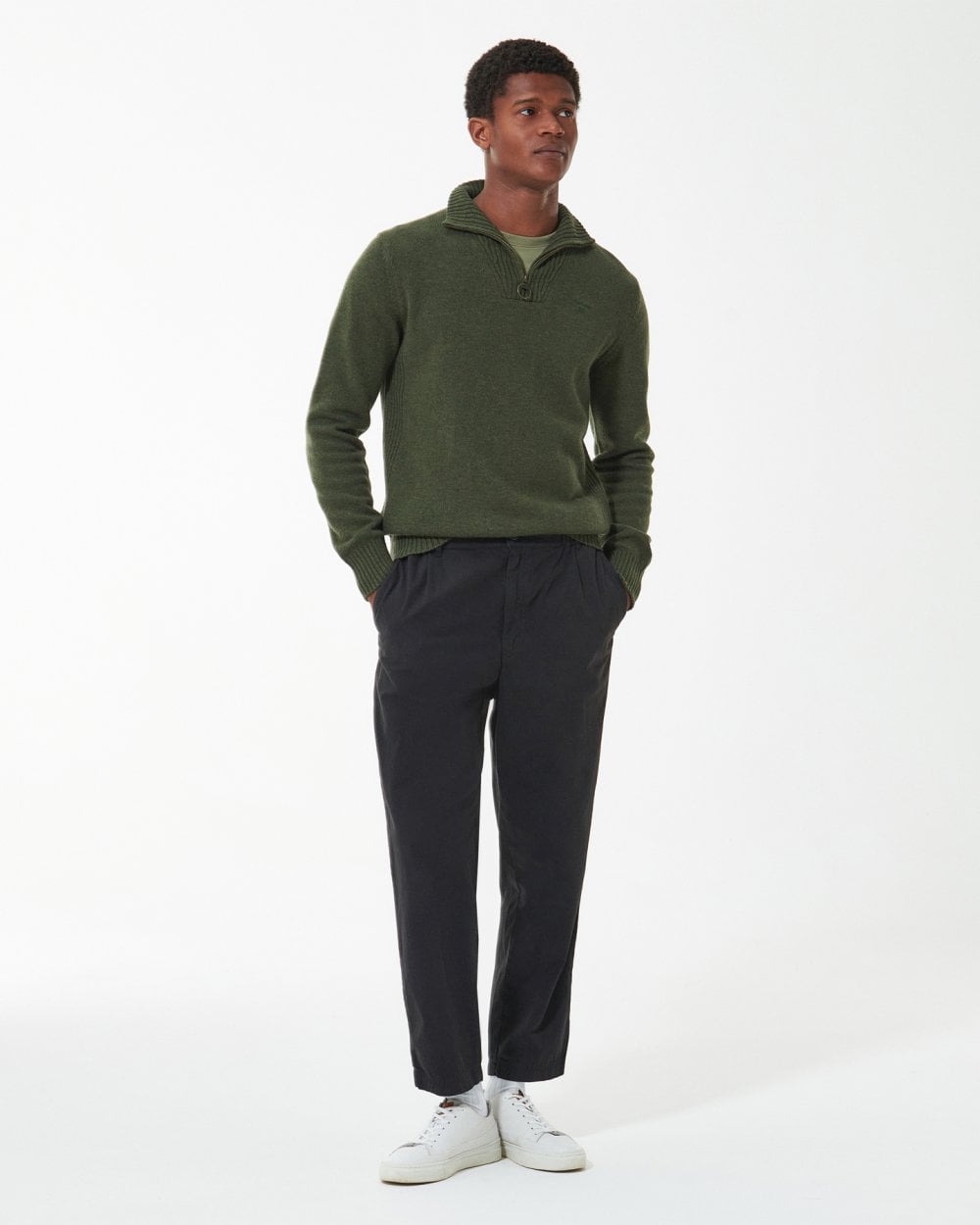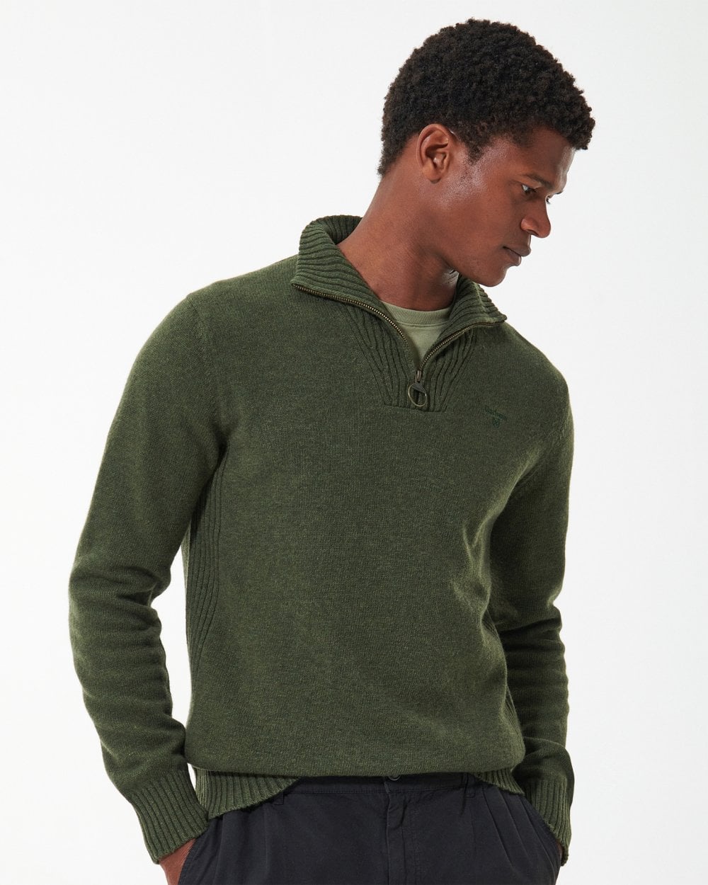 Barbour Essential Lambswool Mens Half-Zip Jumper in Mid Olive