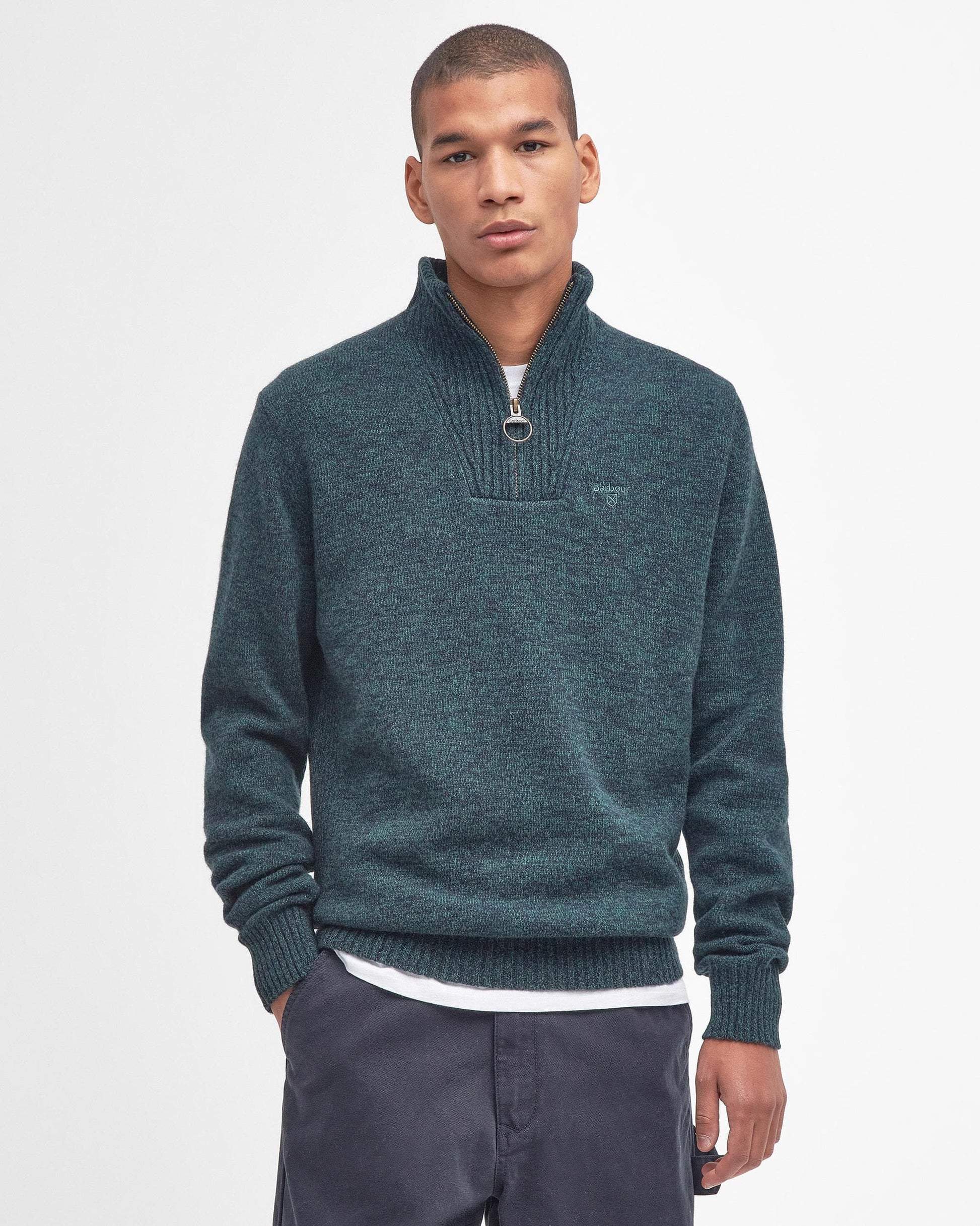 Barbour Essential Lambswool Mens Half-Zip Jumper in Seaweed Mix