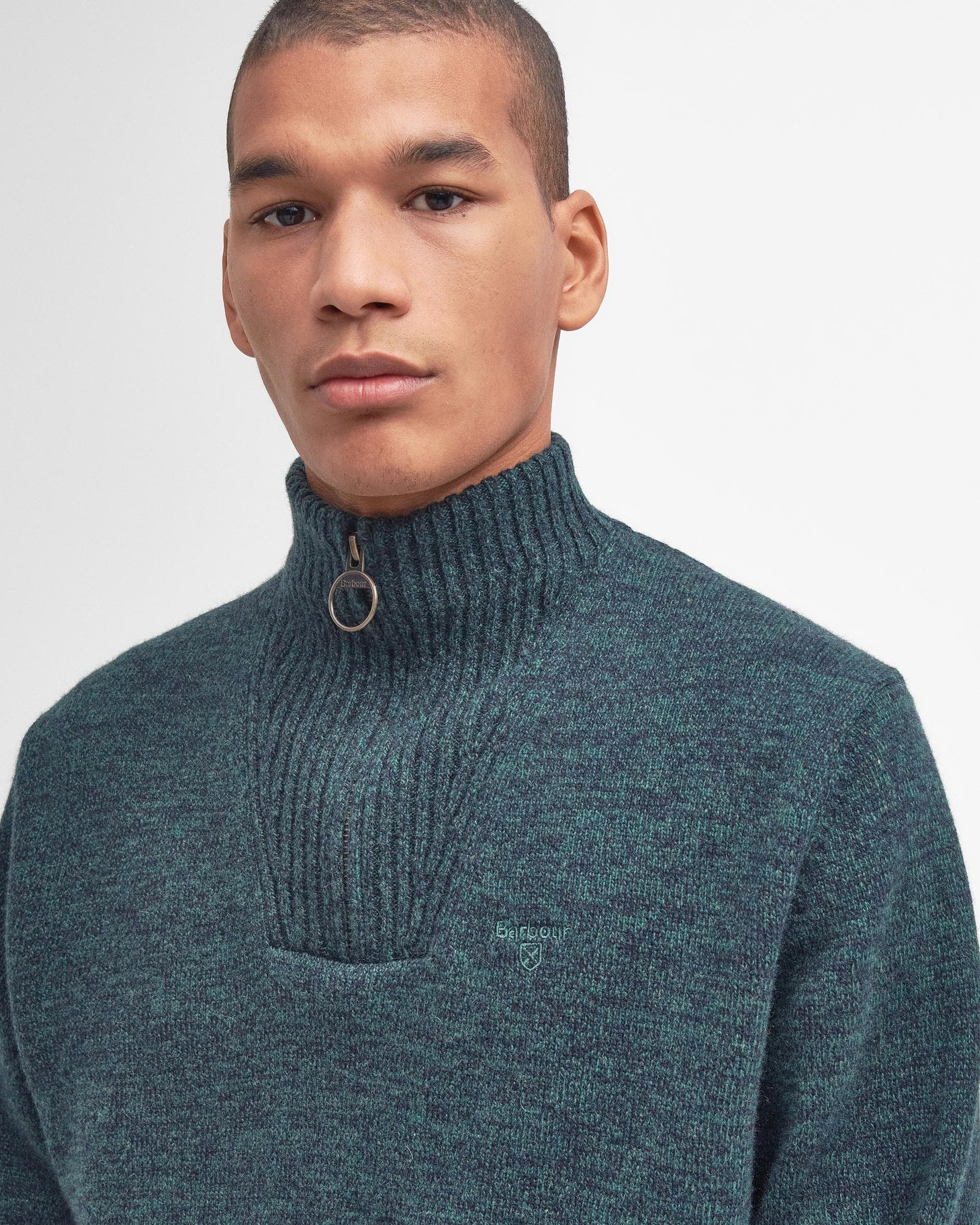 Created in super-soft lambswool, this cosy sweater is styled with a funnel neck and a signature zip closure. Its regular fit makes for easy wearing, while the iconic Barbour shield embroidery adds the finishing touch at the chest.