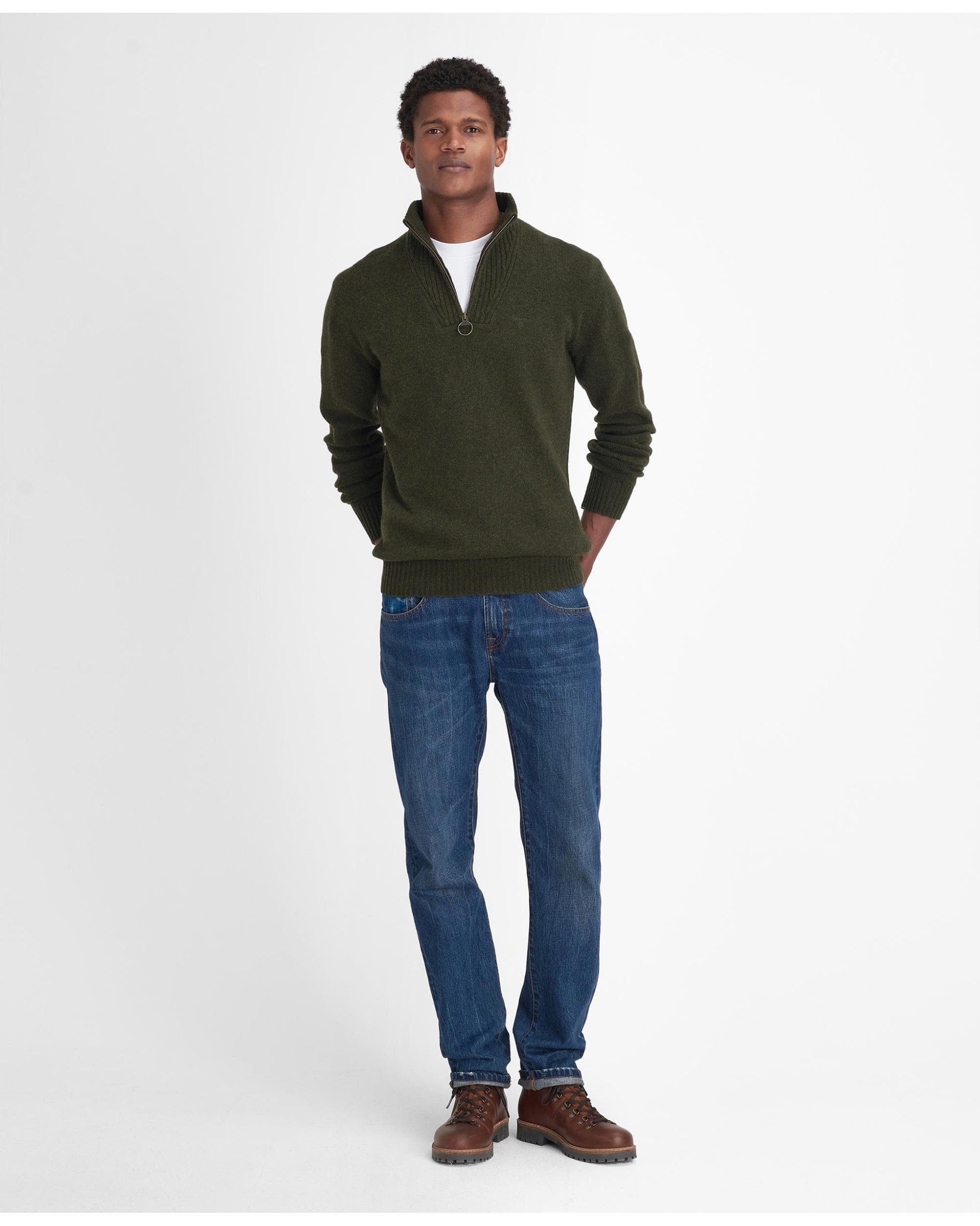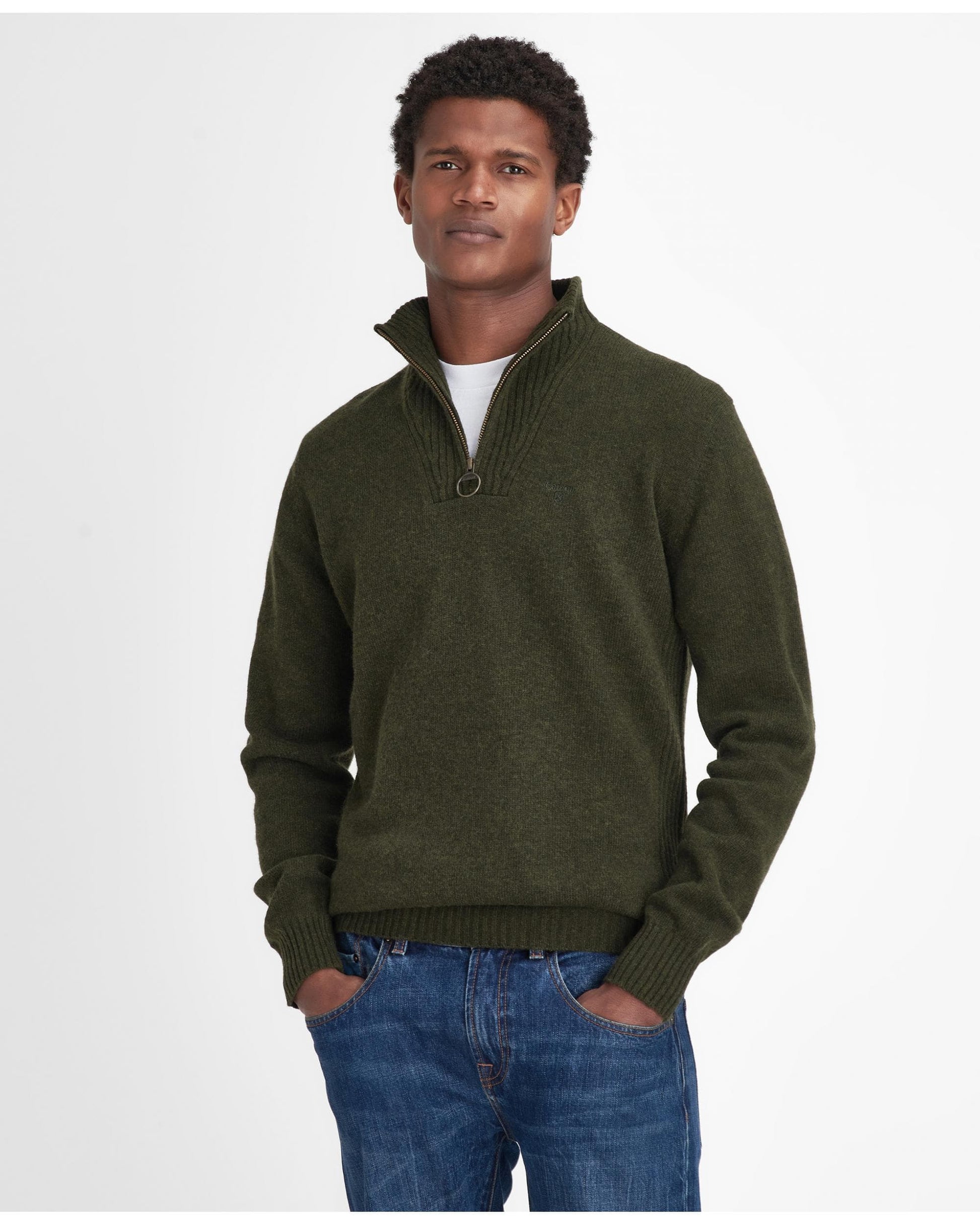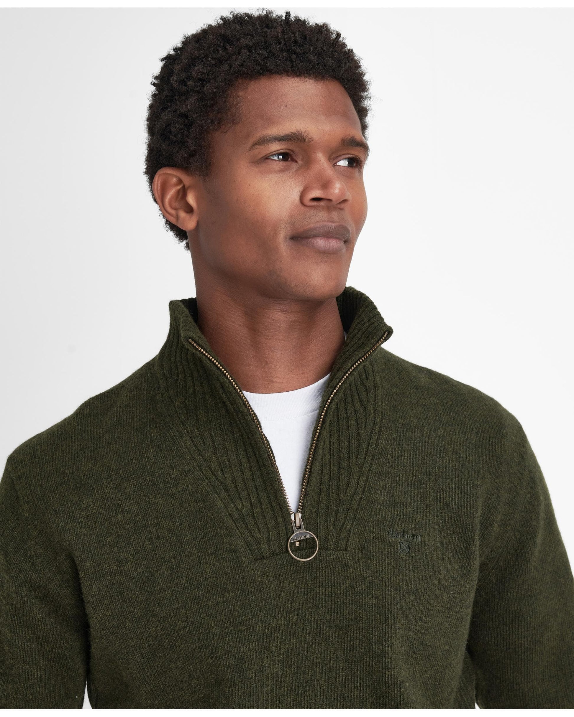 Barbour Essential Lambswool Mens Half-Zip Jumper in Seaweed