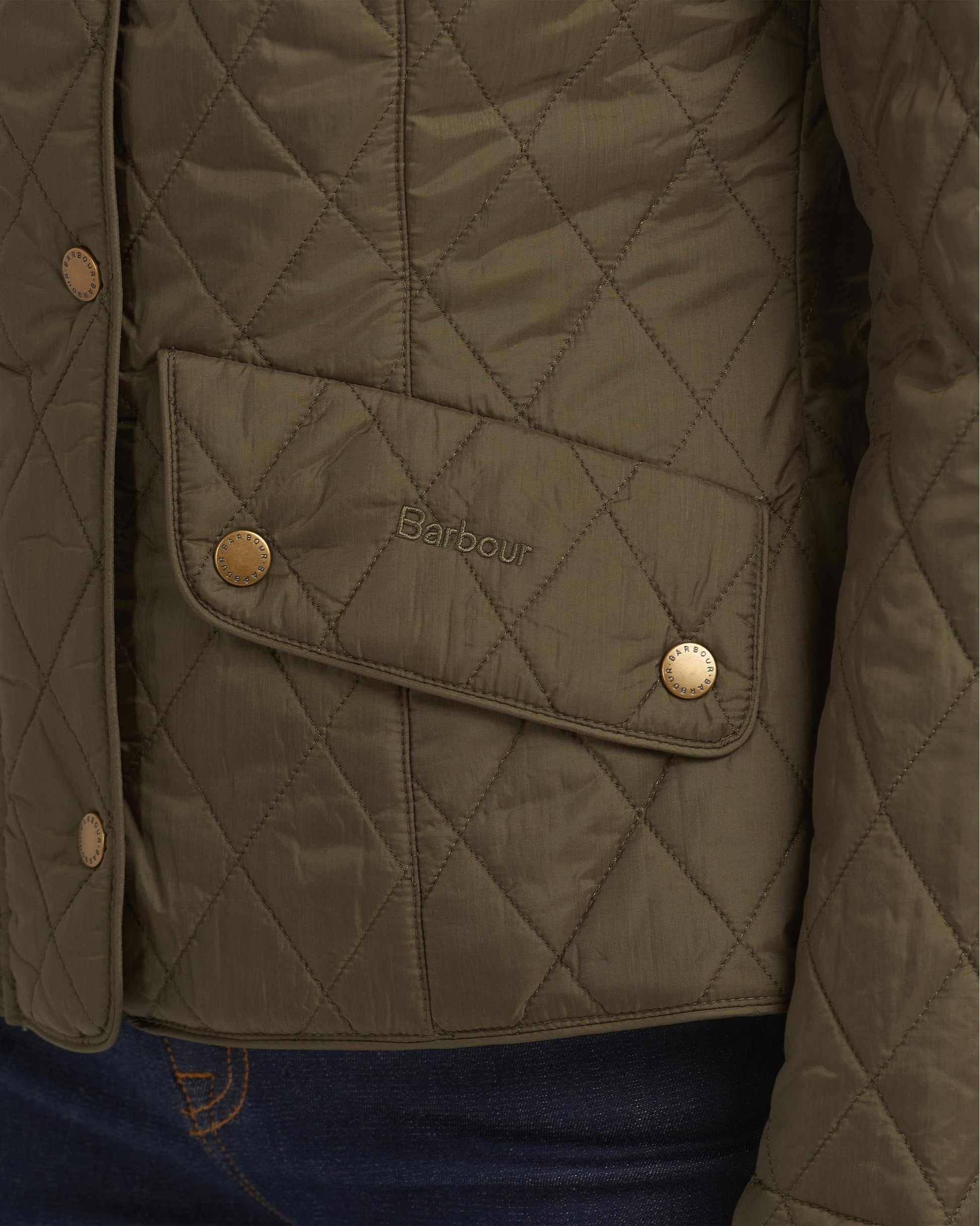 - Barbour embroidery on left pocket flap