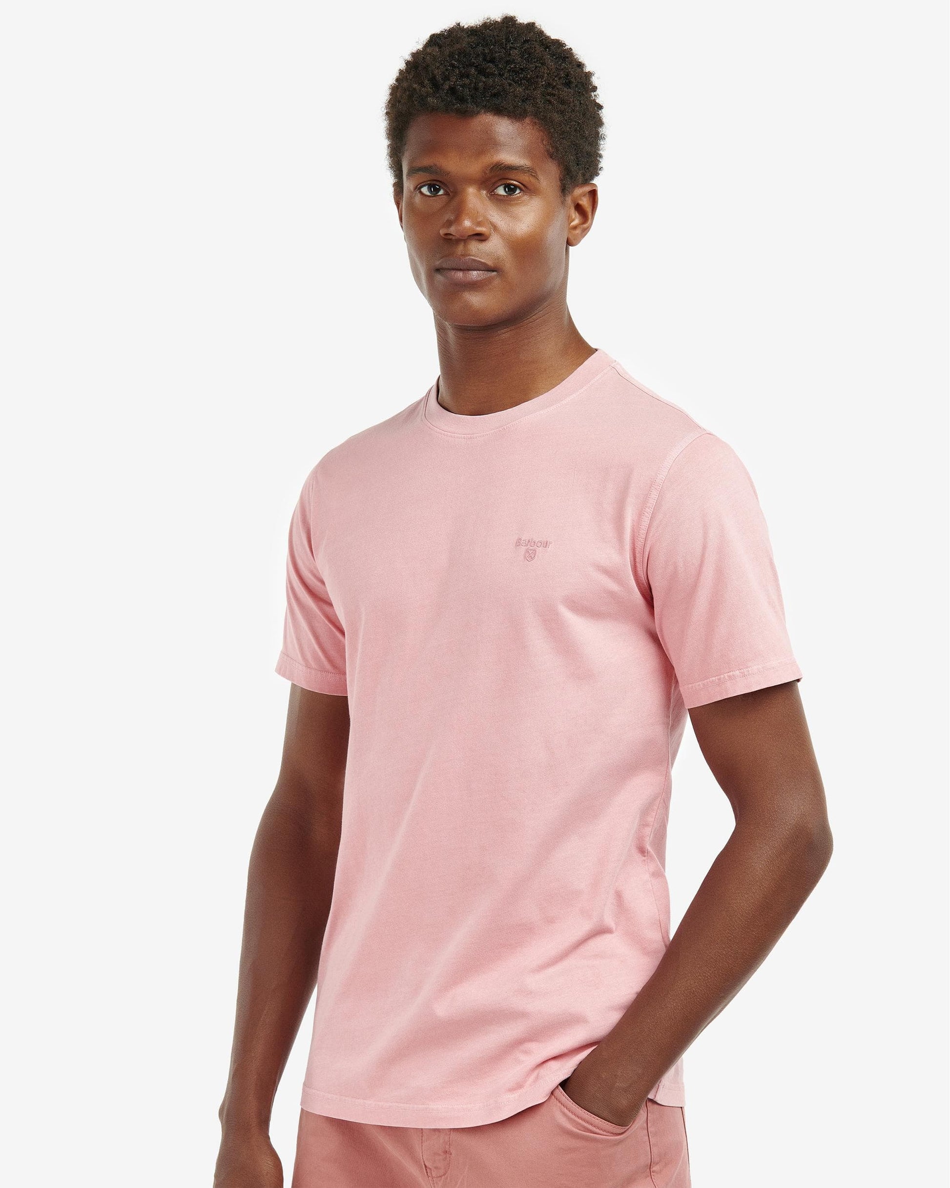 Barbour Garment Dyed Mens Tailored T-Shirt in Pink Salt