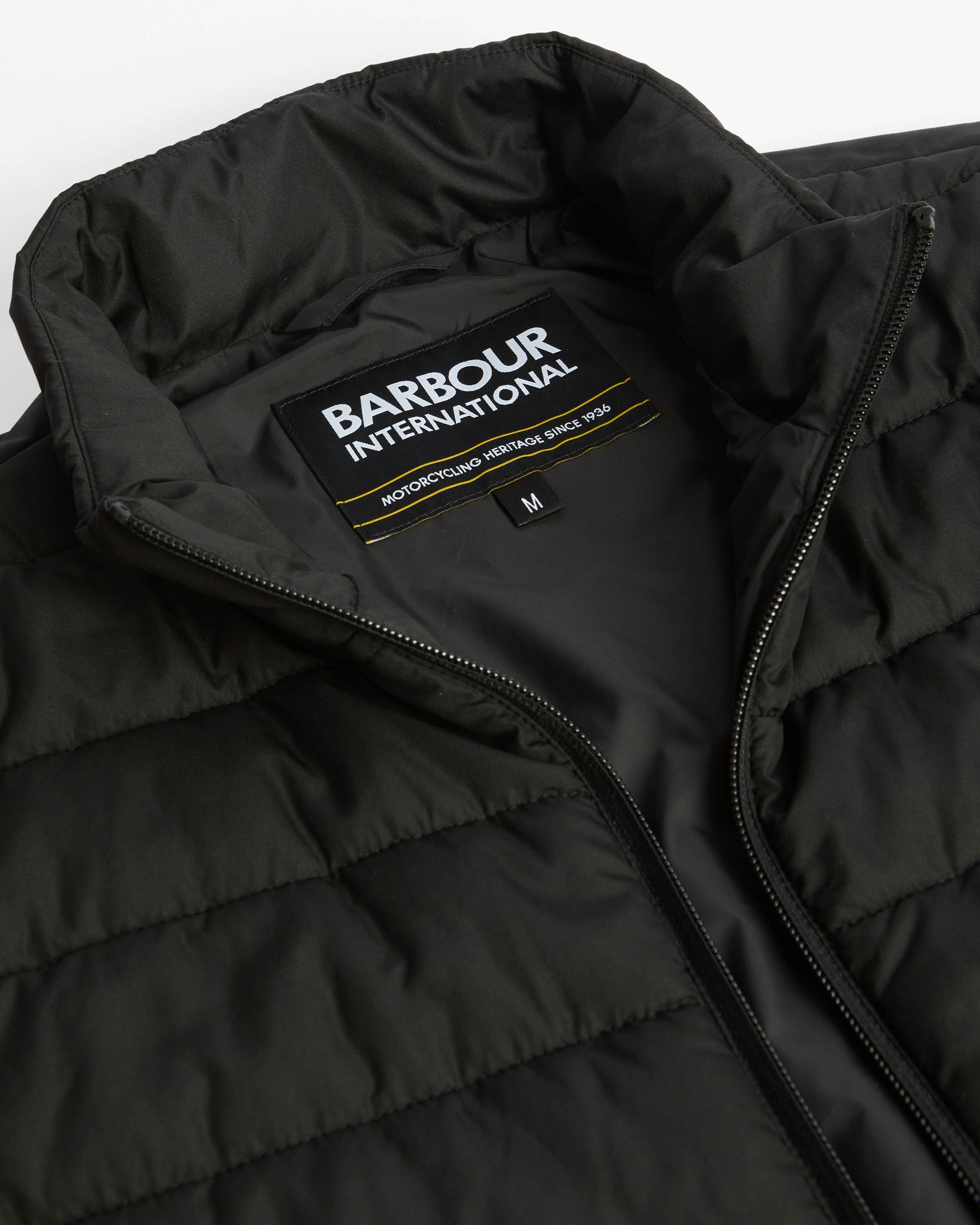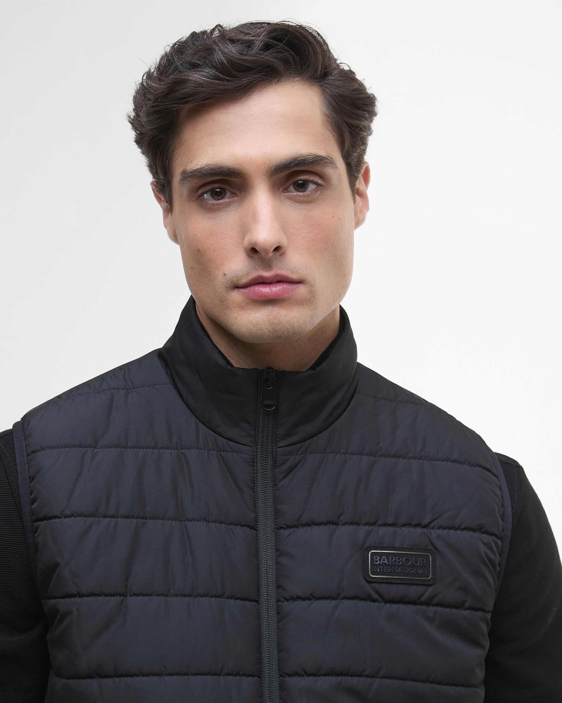 For layering that doesn't compromise, the Barbour International Aldon Quilted Gilet features a stand collar for a sporty-inspired look. Styled with lower in seam pockets for easy wearing, its Lycra bound armhole and embossed logo to the chest keeps things casual.