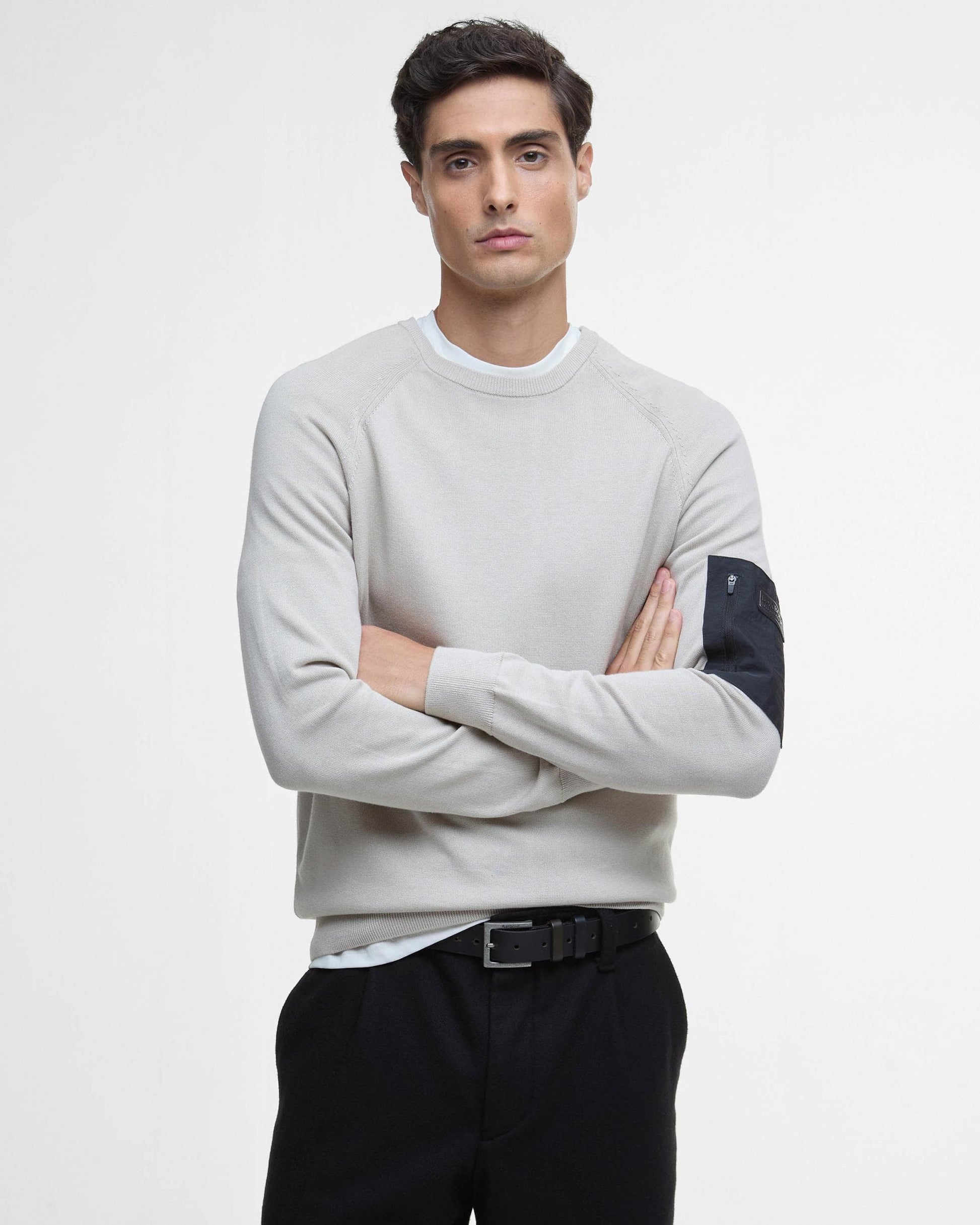 Barbour International Blades Mens Cotton Crew Neck Jumper in Mist