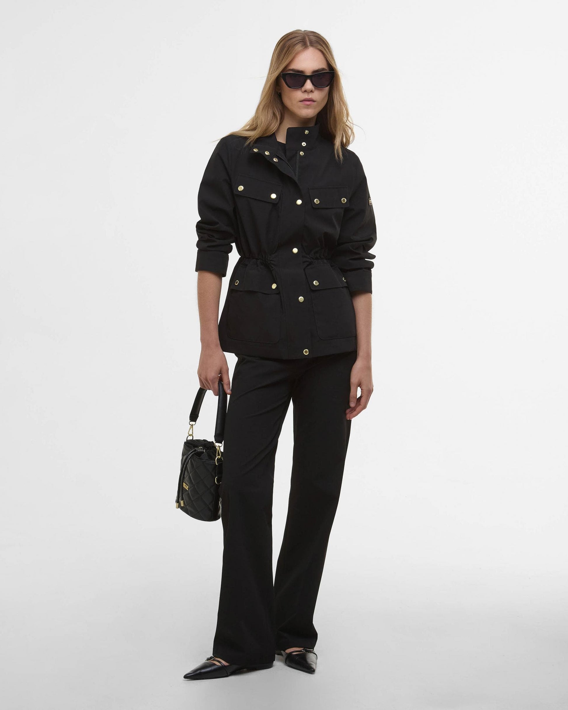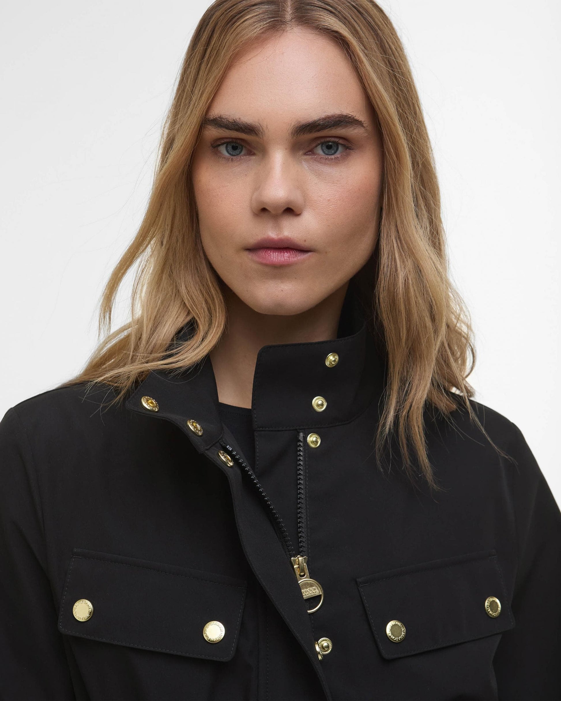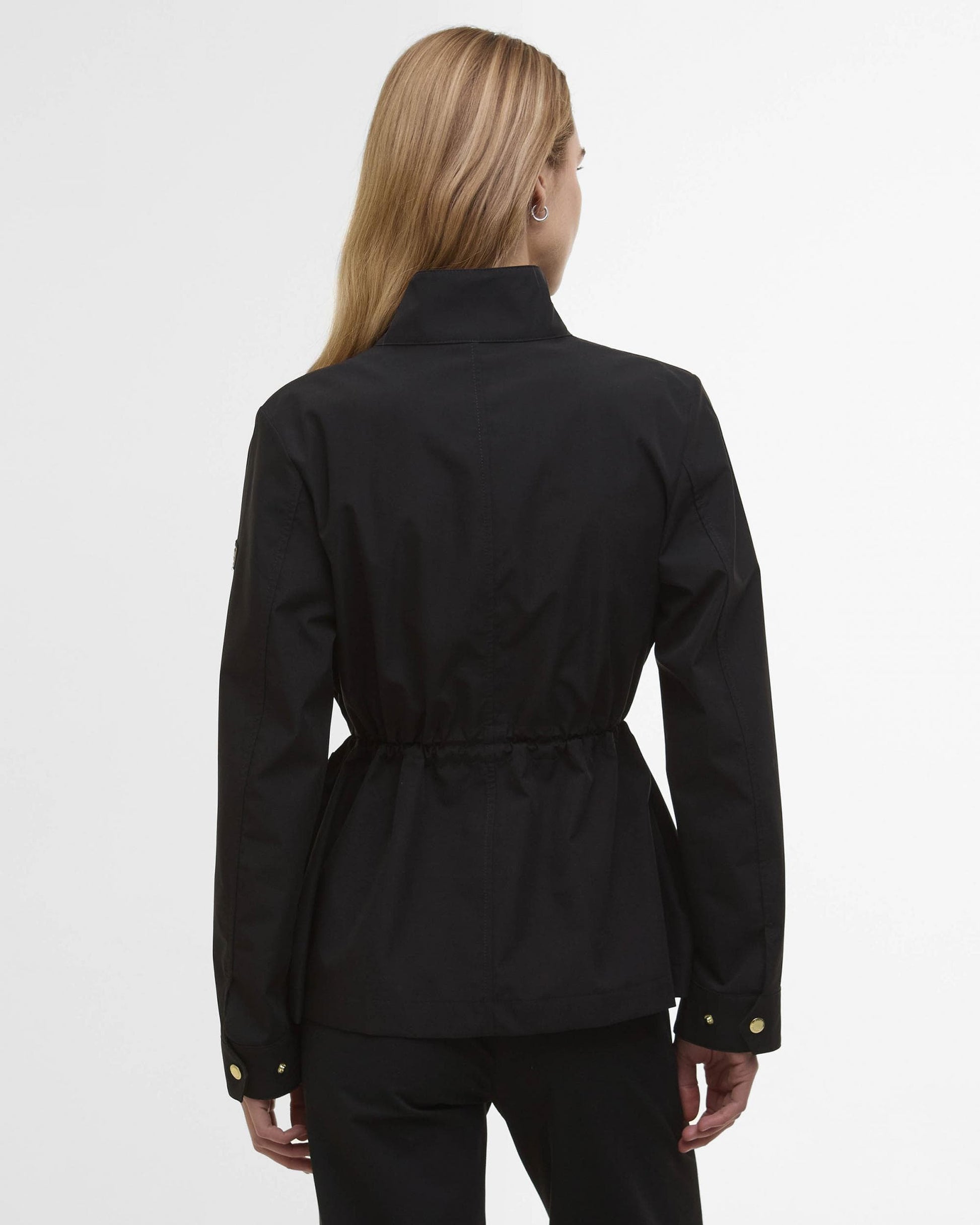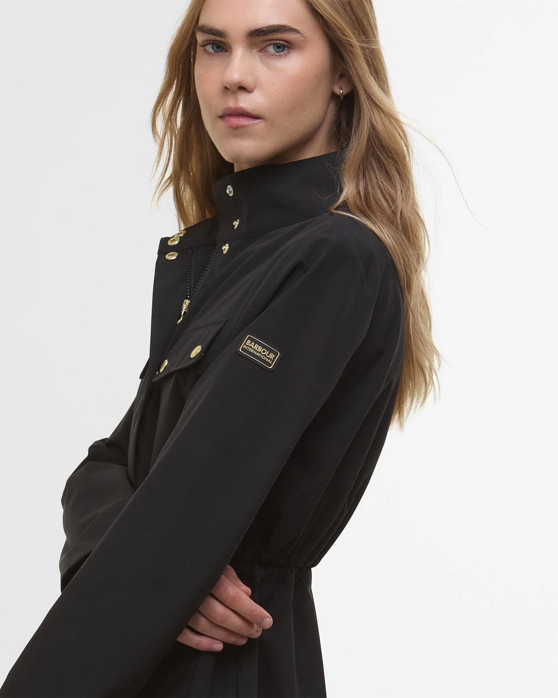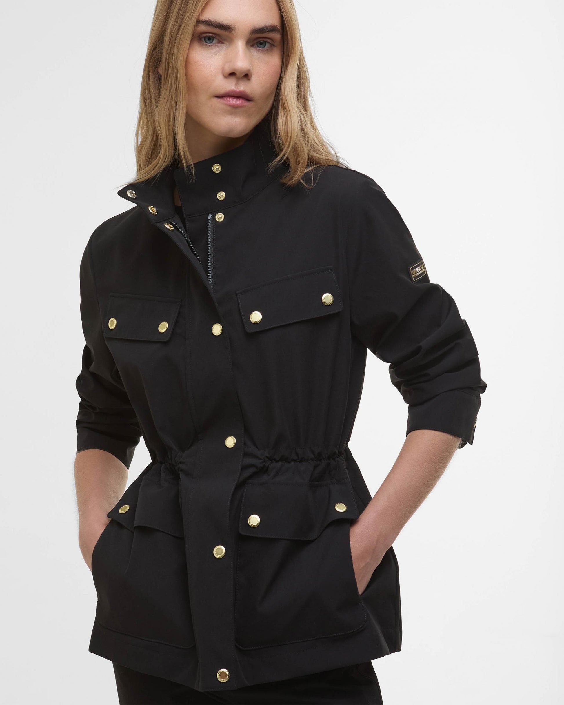 Updating the iconic Barbour International look with a practical showerproof fabrication, this slim-fitting design features four studded pockets, a funnel collar, a sleeve logo patch for a signature finishing touch.