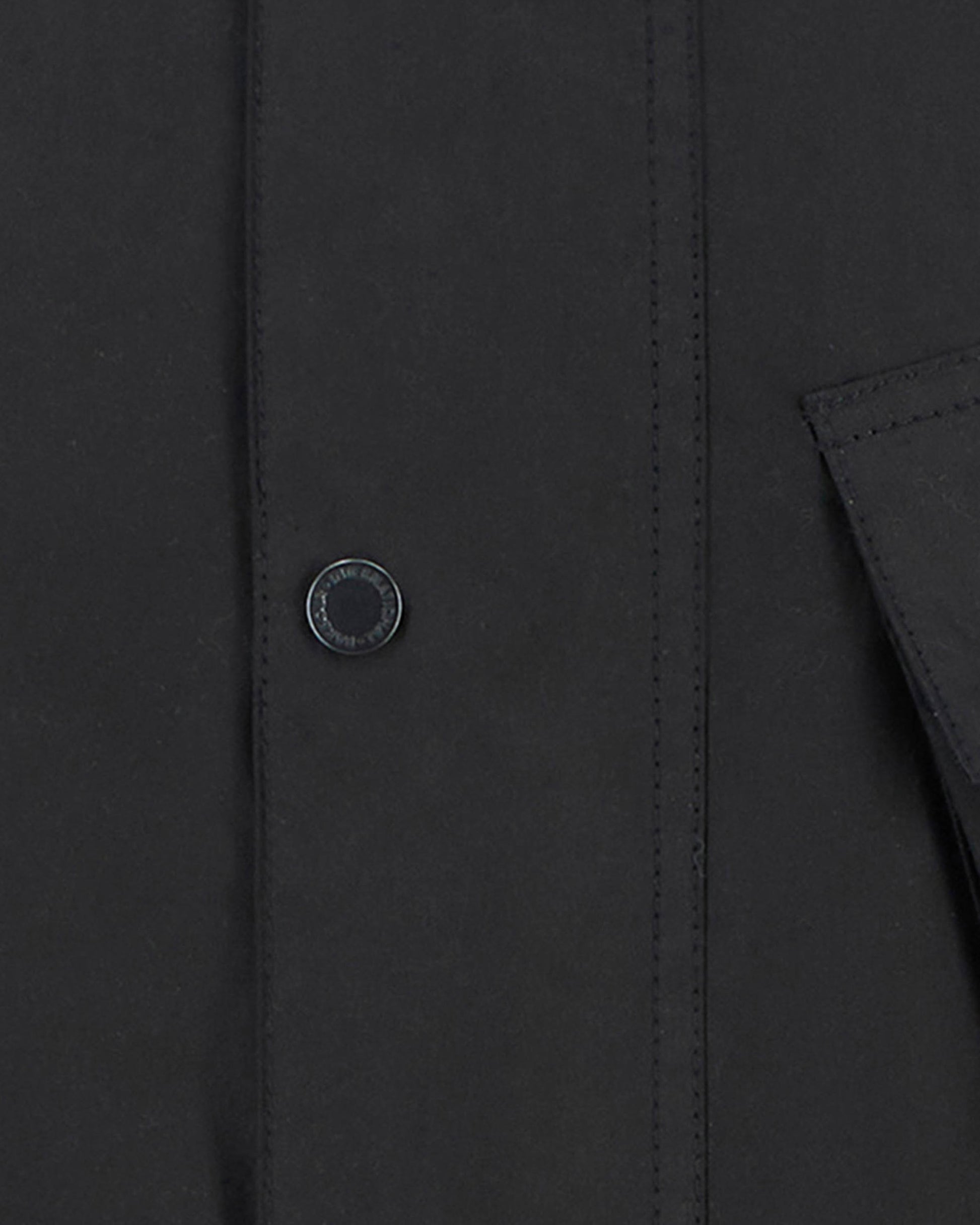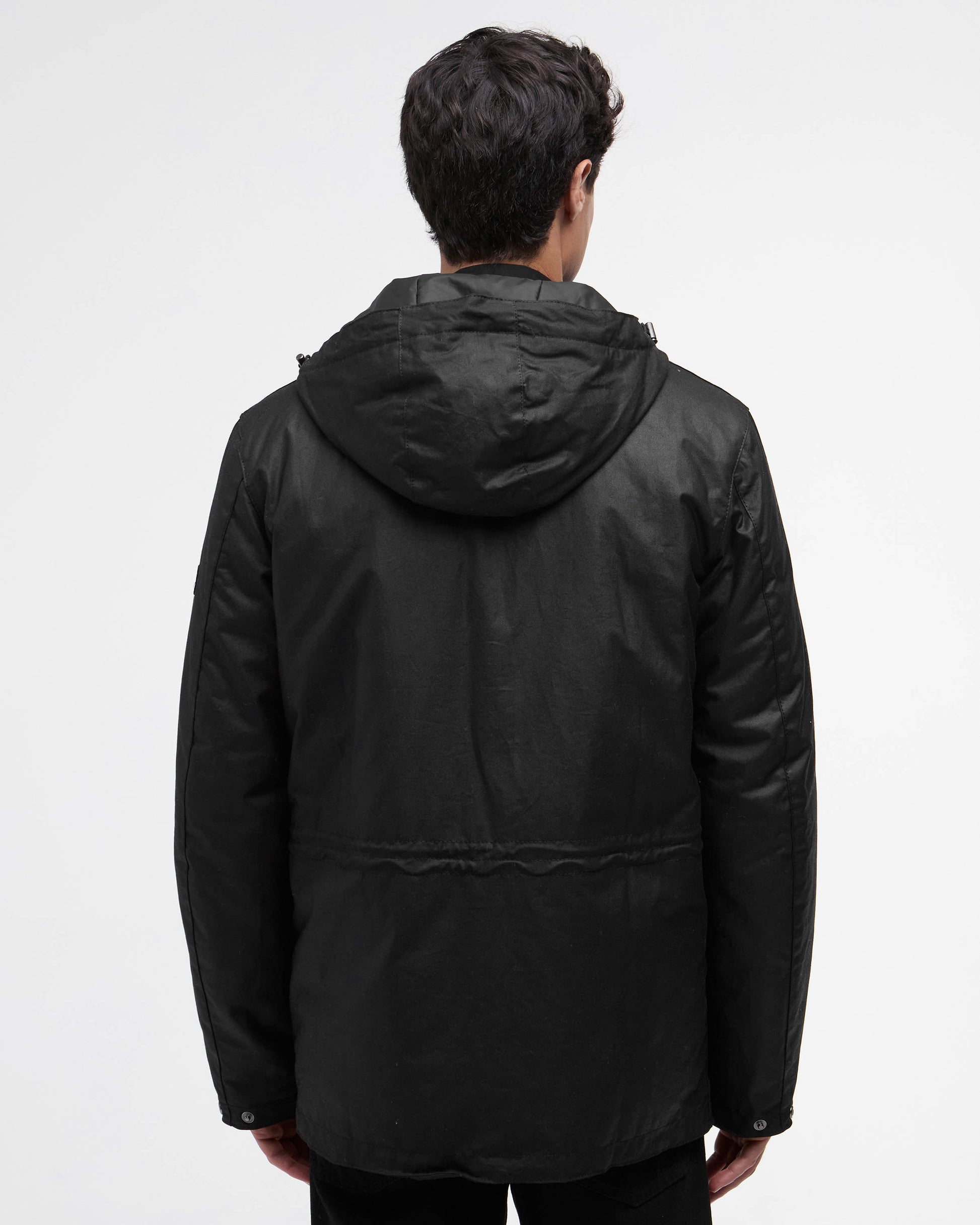 The B.Intl Endley Waxed Jacket is crafted from 6oz waxed cotton with a baffled lining for warmth. Featuring a zip and stud front fastening, bellow pockets, and an angled map pocket, it offers shockcord adjustment at the waist and hood. Finished with a black and gunmetal sleeve badge, it styles perfectly with cargo trousers, sturdy boots, and a casual knit. MWX2531BK71