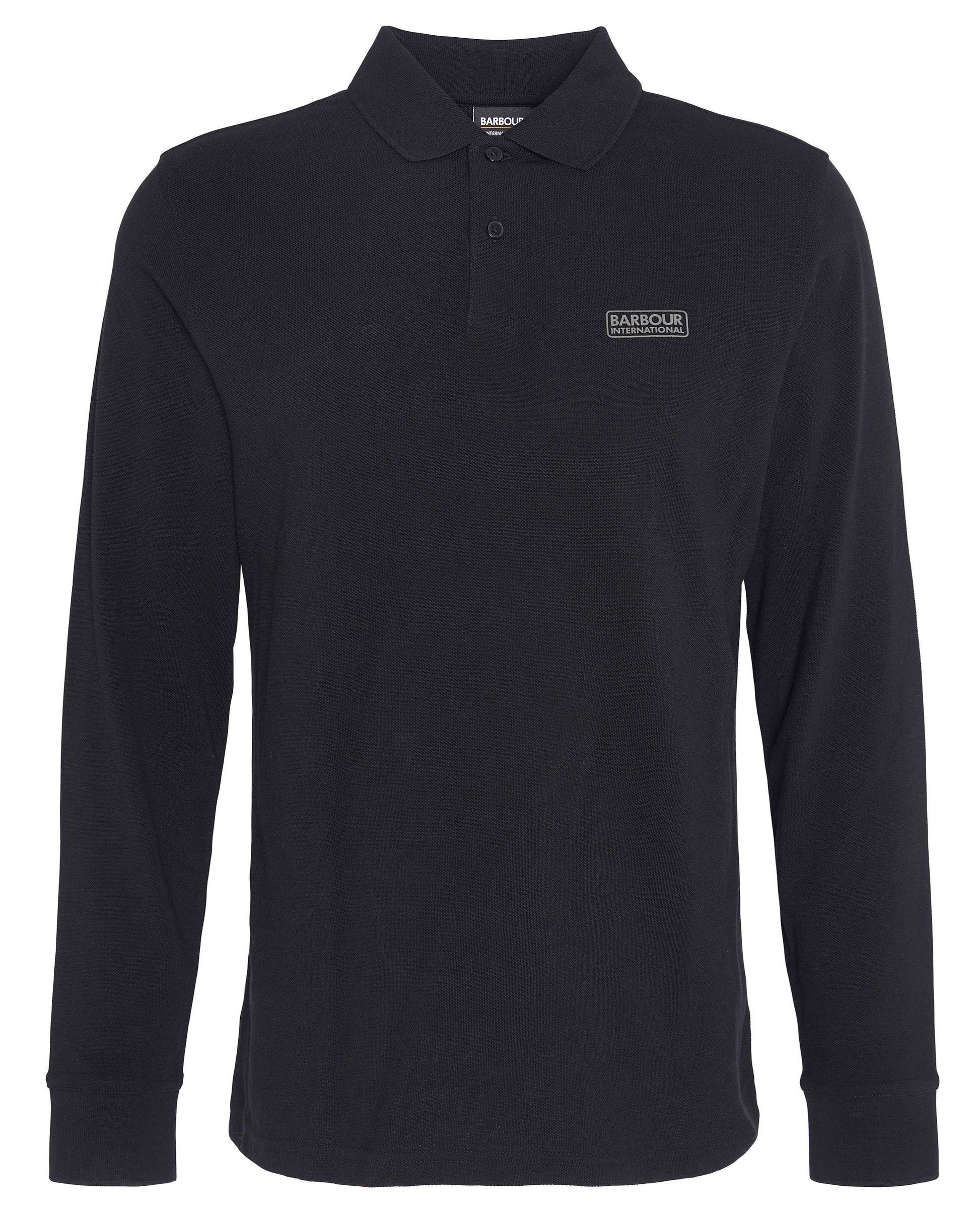 Barbour International Essential Mens Long Sleeve Polo in Black/Pewter