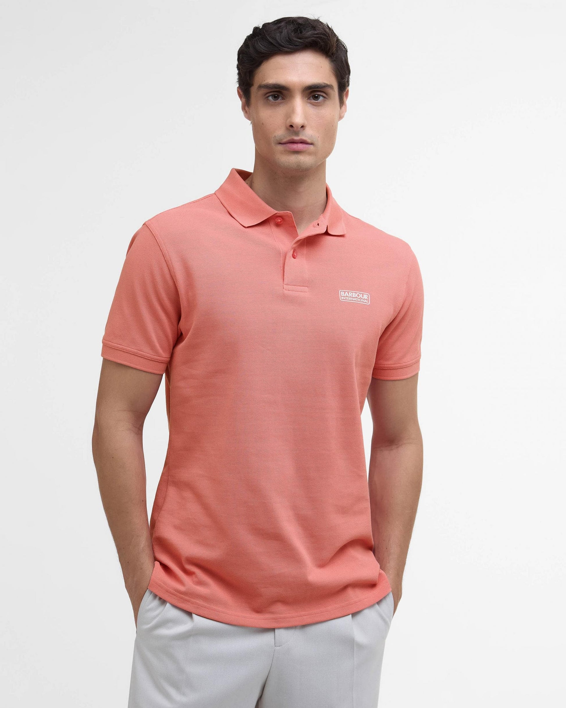 Barbour International Essential Short Sleeve Mens Polo in Coral