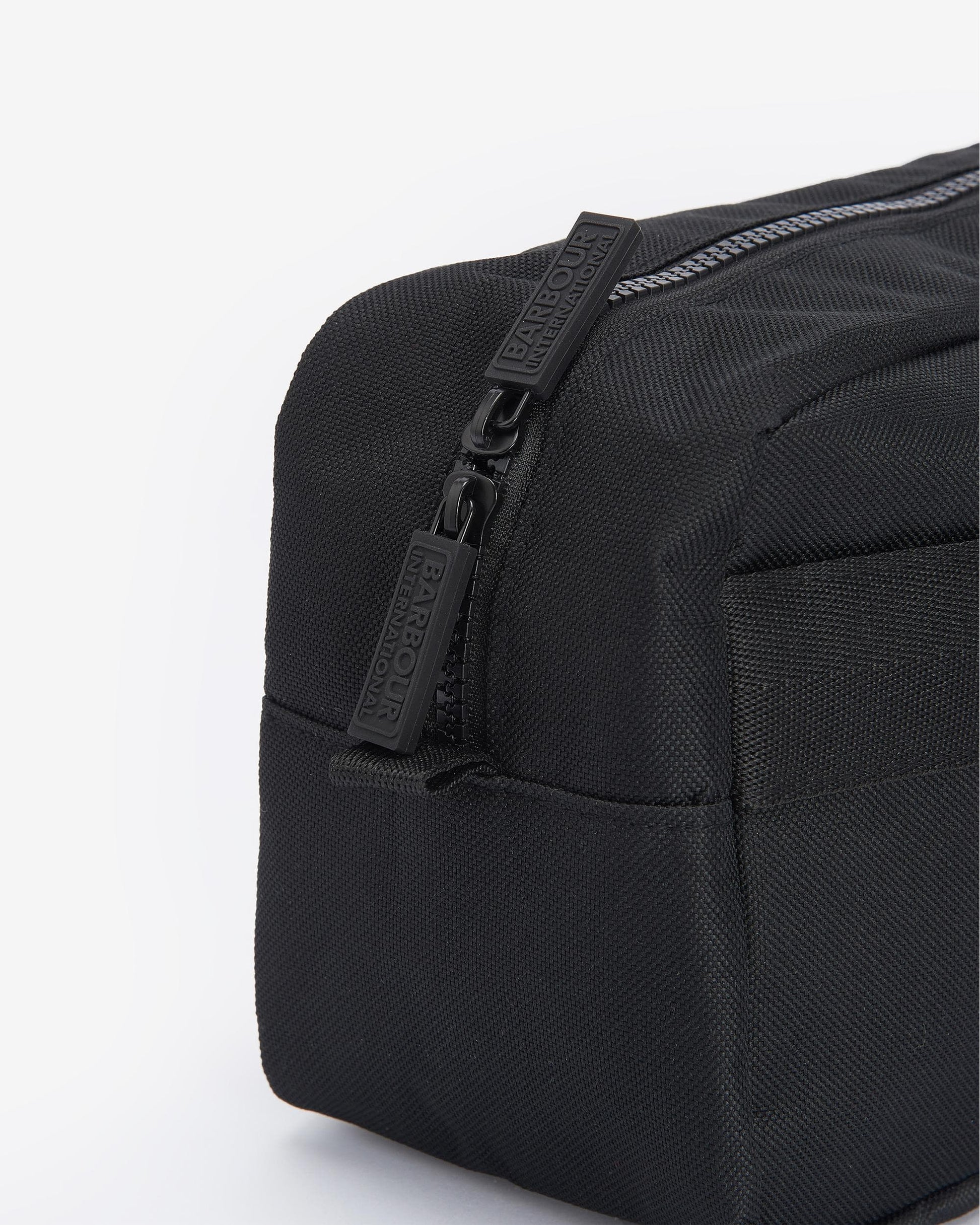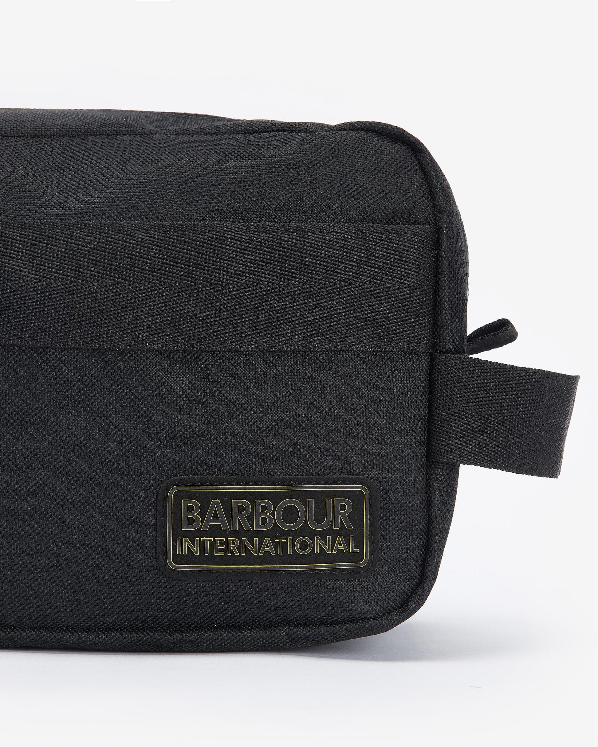 A travel essential for the modern man that's always on the go, the B.Intl Knockhill Essential Washbag is crafted from sturdy, wipe-clean canvas for durability and features a practical zipped closure to the top for easy access. A webbing grab handle makes it easy to carry from one place to the next, while logo detailing gives it the Barbour International seal of approval.