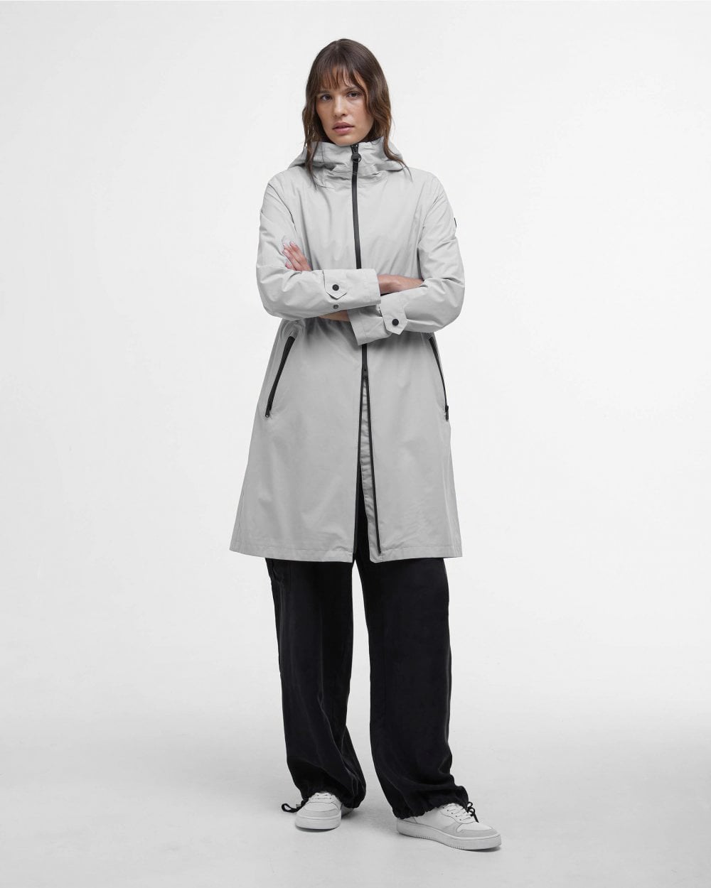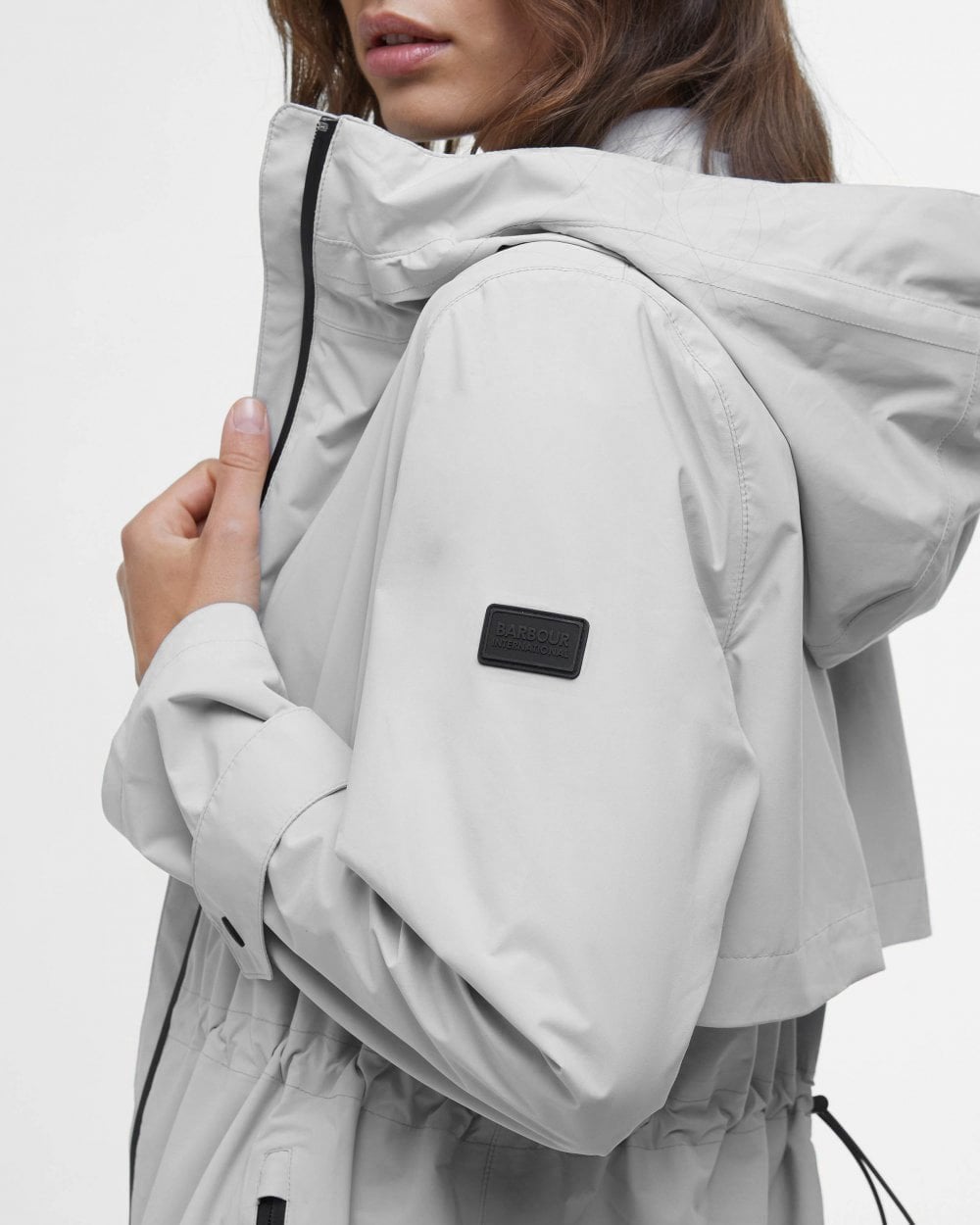 Barbour International Long Kyra Womens Waterproof Jacket in Light Steel Blue