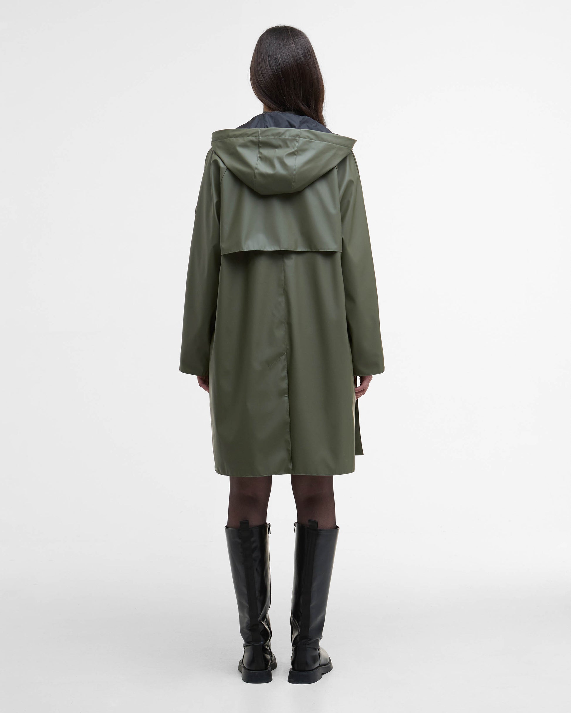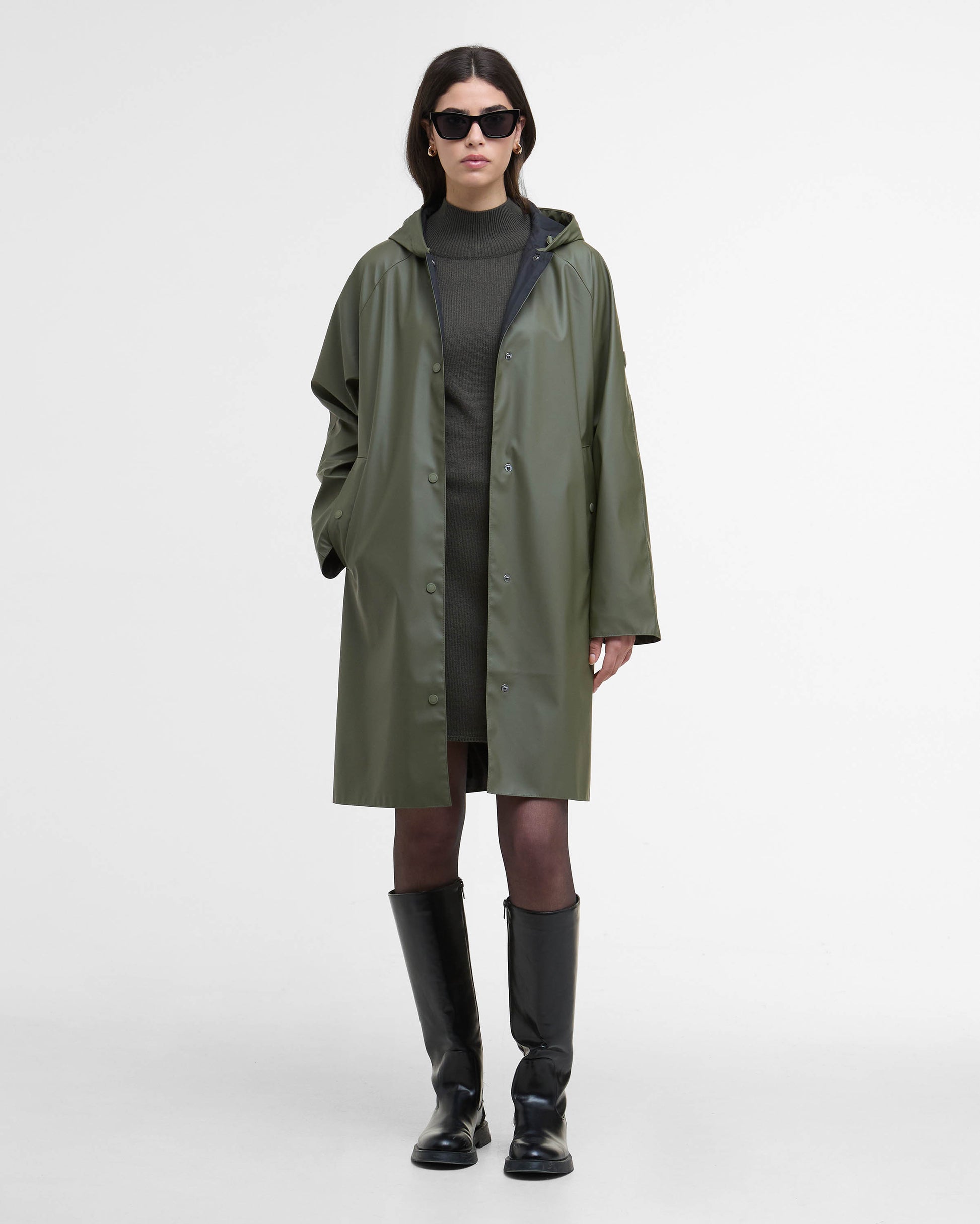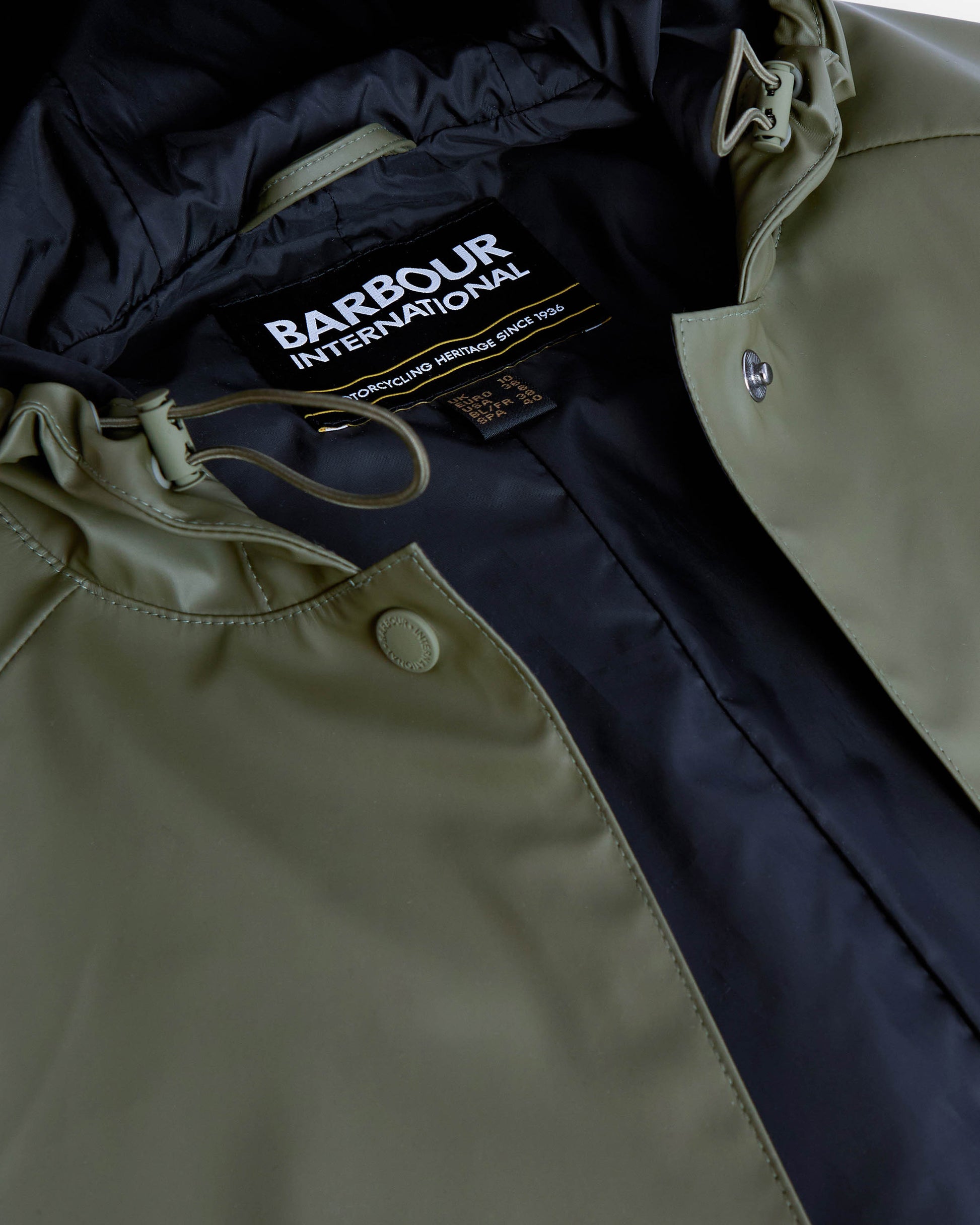 Meet the B.Intl Recoleta Showerproof Jacket, a sleek addition to your wardrobe. Crafted with an unlined rubberised finish, it features a fixed hood for optimal protection. Enhanced with new rubberised hardware, this jacket embodies Barbour International's dedication to quality and timeless style, perfect for any weather.