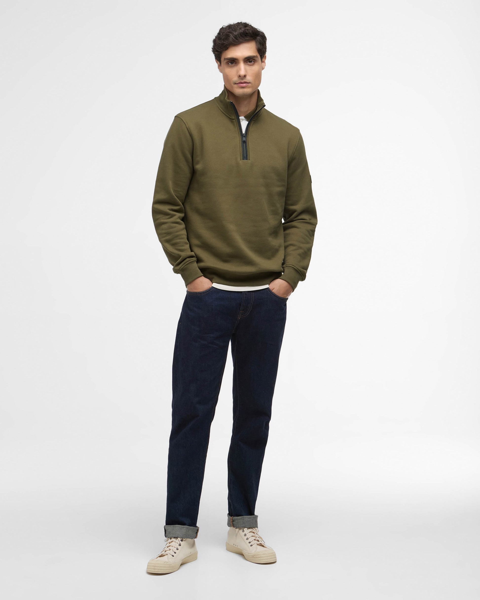 Stay warm and stylish with the B.Intl Rufforth Half Zip Jumper. Made from luxurious cotton fleece with a brushed back, this sweatshirt combines comfort and durability. Featuring a sleek knitted tipped placket with a concealed zip and a rib funnel neck, cuffs, and hem, it’s finished with the signature Barbour International branding badge for a refined touch. MOL0736SG72