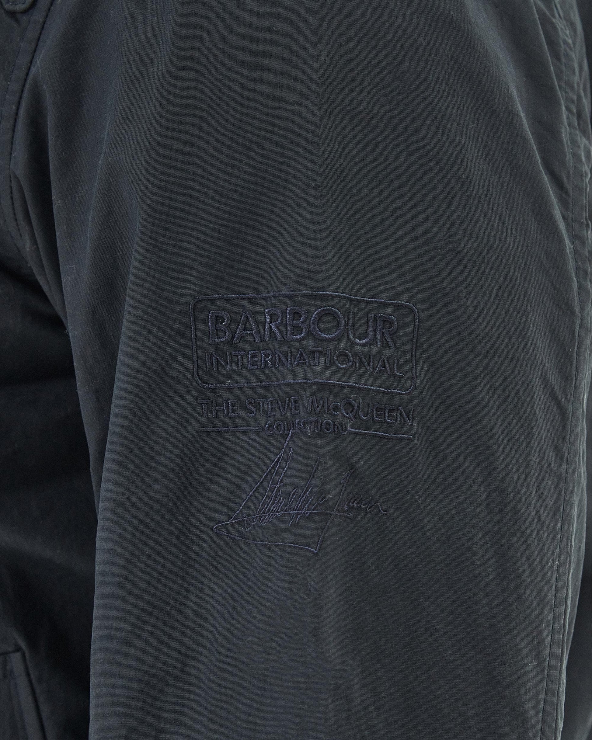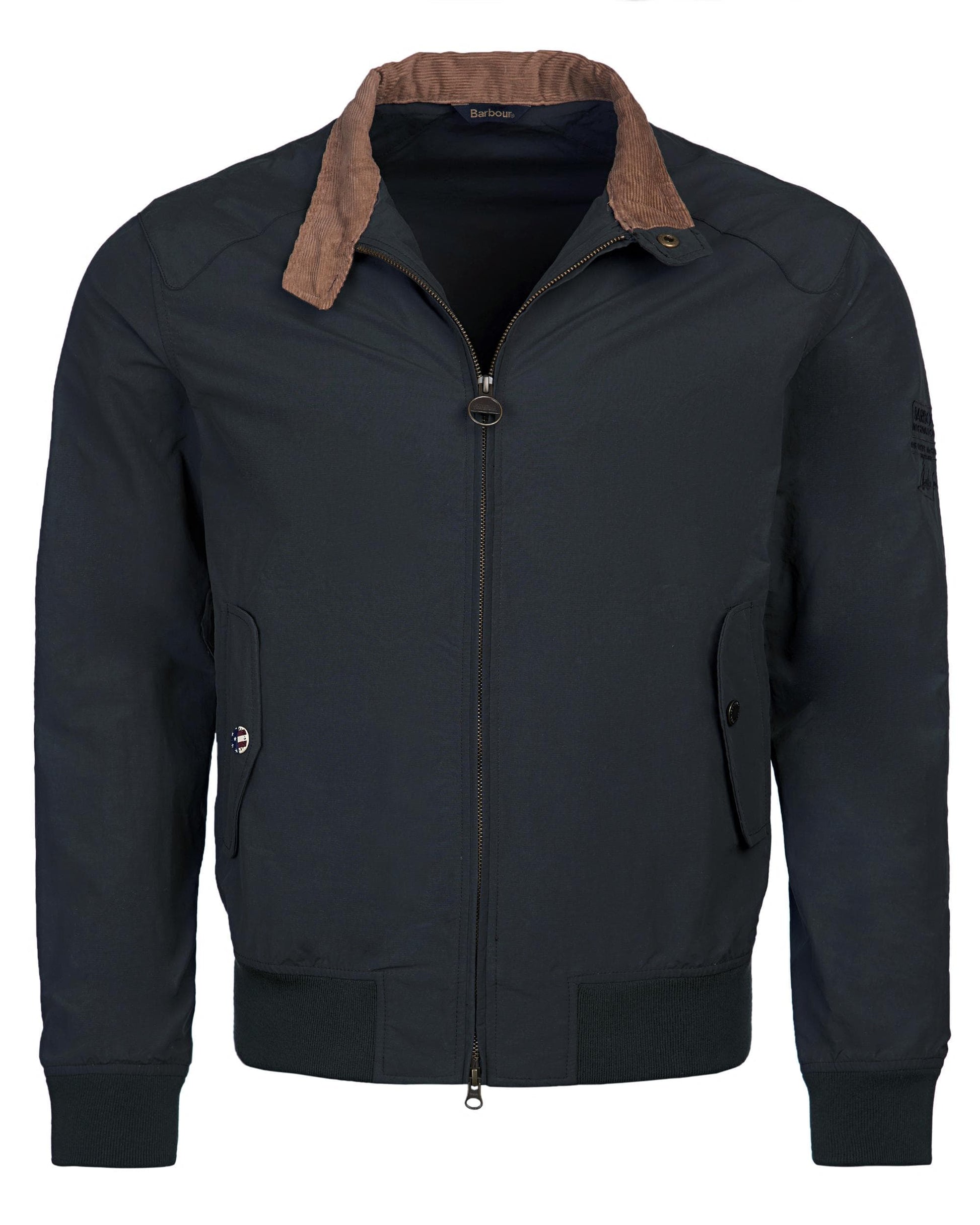 The Barbour International Rectifier jacket is reminiscent of a classic Harrington. Featuring a contrast collar lining, cuffs and hem the jacket boasts two stud fastened pockets to the front, an embroidered Steve McQueen patch on the arm and red, white and blue eyelets underarm for breathability.