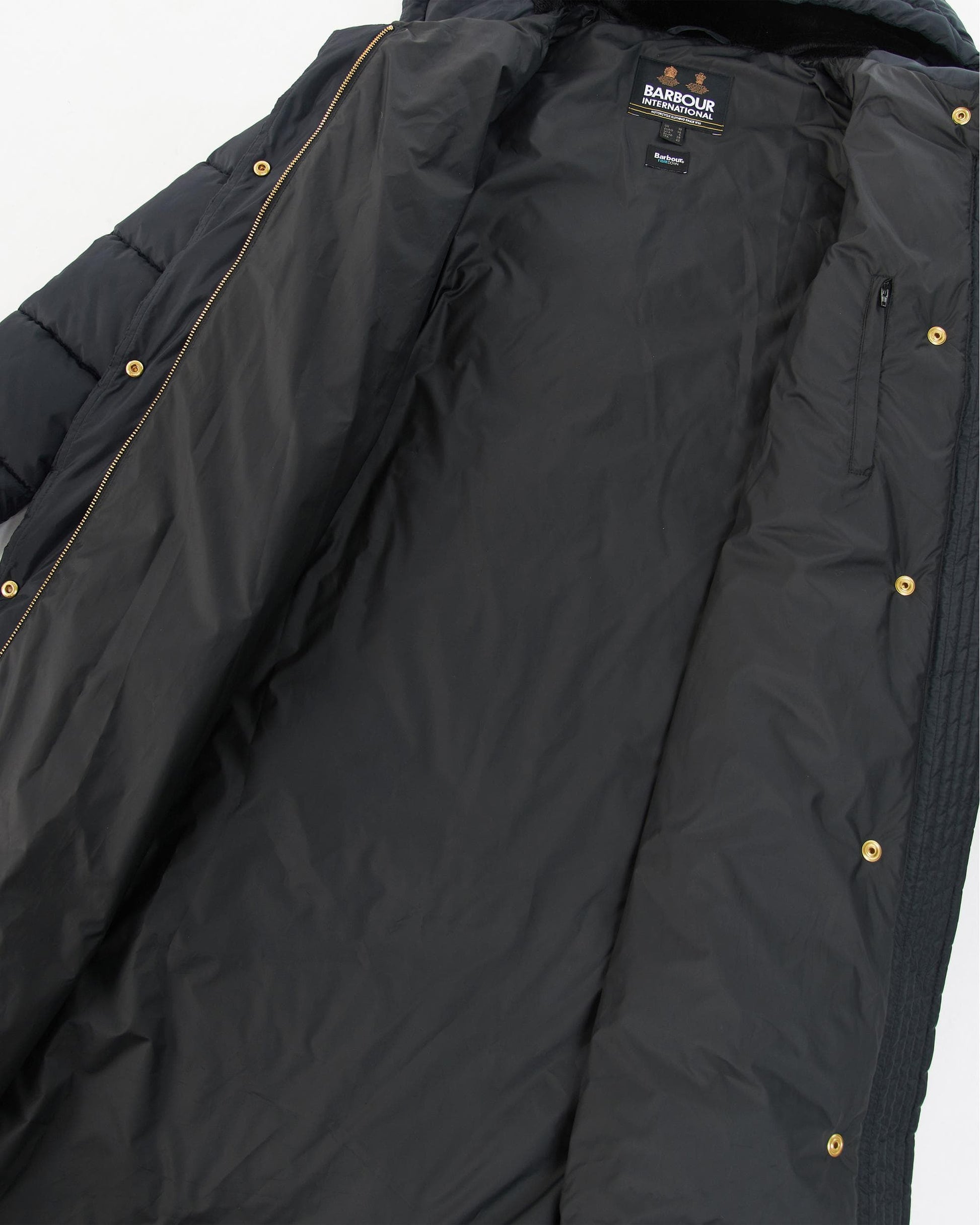 Barbour International Track Line Womens Long Quilted Jacket in Black