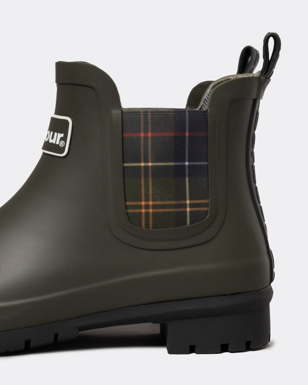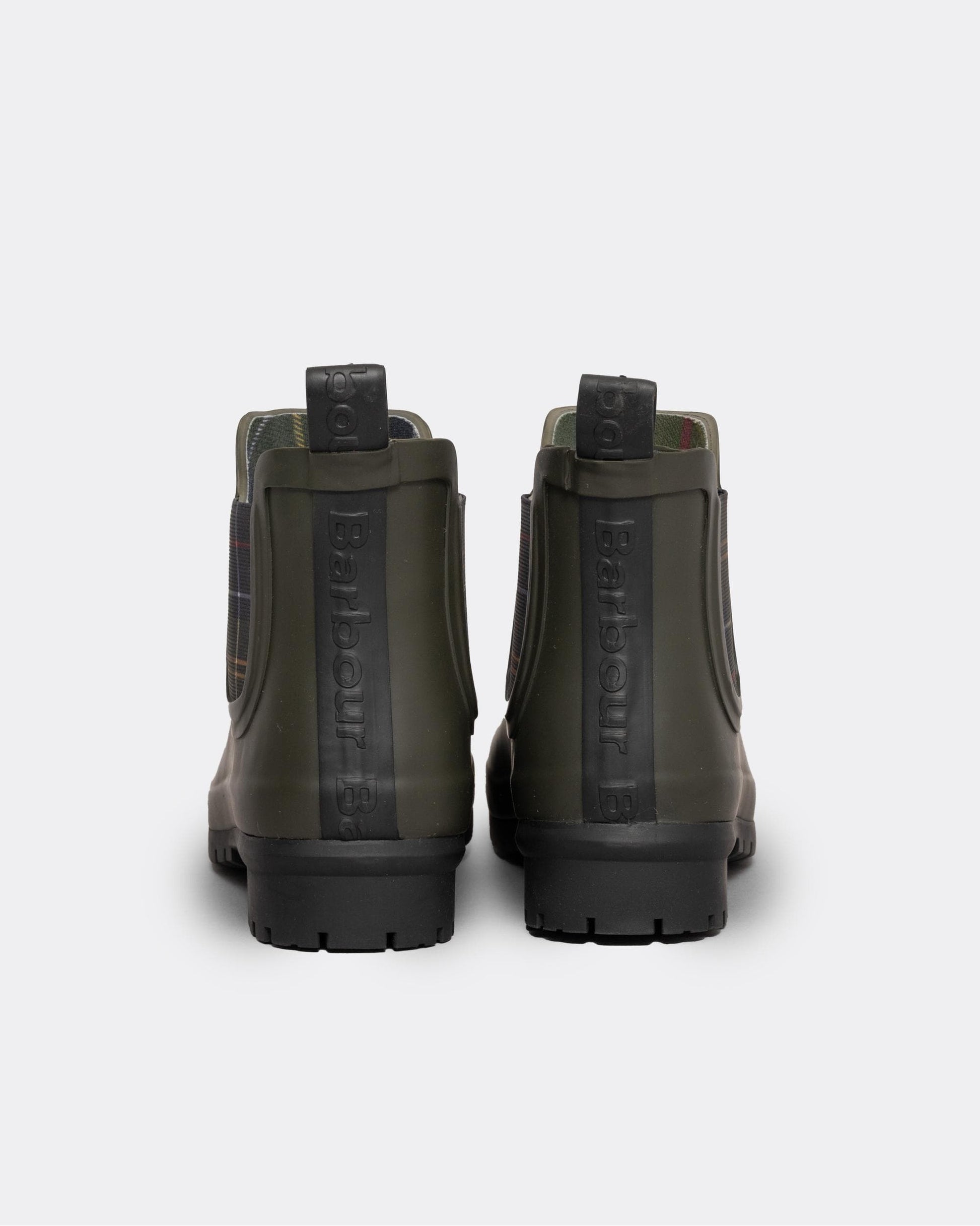The Barbour Kingham wellingtons are styled in a Chelsea boot inspired style. Featuring a classic tartan elastic gusset, these boots are perfect for country walks in style.