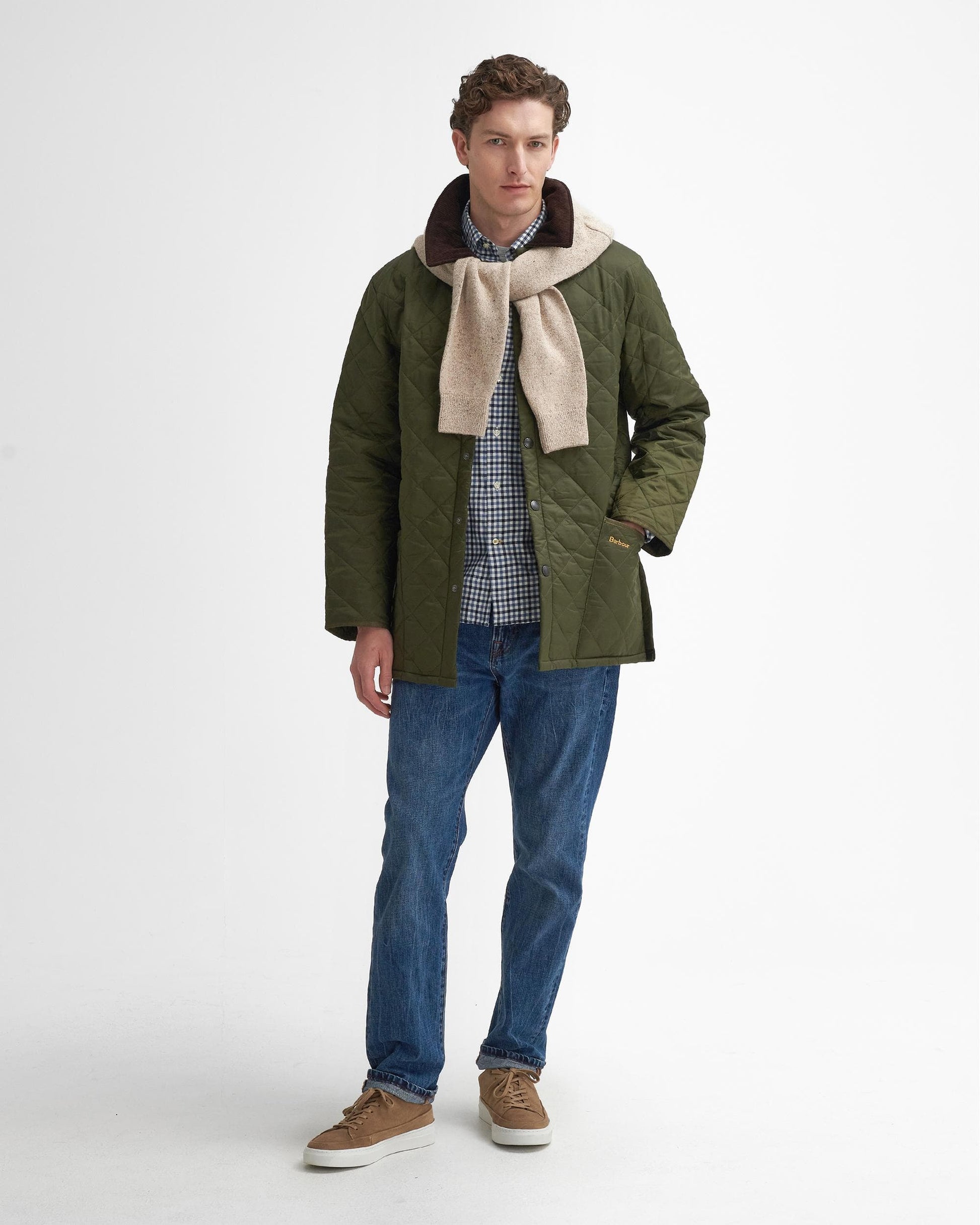 The Liddesdale provides plenty of room for laying and a generous fit, we suggest you go down one size if you prefer to wear this as a summer jacket. One of the most iconic Barbour jackets, the original Liddesdale jacket is a firm favourite year after year. With Barbour's signature diamond quilted outer and a warm yet lightweight contrast nylon lining, this popular men's quilted jacket is durable, simple and stylish. From the Classic collection and available in a range of wearable colours, it features a robust front stud fastening to protect from the elements, and a smart sit-down cord collar that can be raised for additional warmth and protection, with a luxuriously soft feel against the skin. With a generous fit, the Liddesdale provides plenty of room for layering up with chunky knits and insulating gilets, while the studded rear vents ensure comfort and ease of movement. The signature front patch pockets are trimmed with contrast Barbour embroidery and are generously proportioned, while a zipped inner security pocket safeguards valuables. A timeless addition to any winter wardrobe.