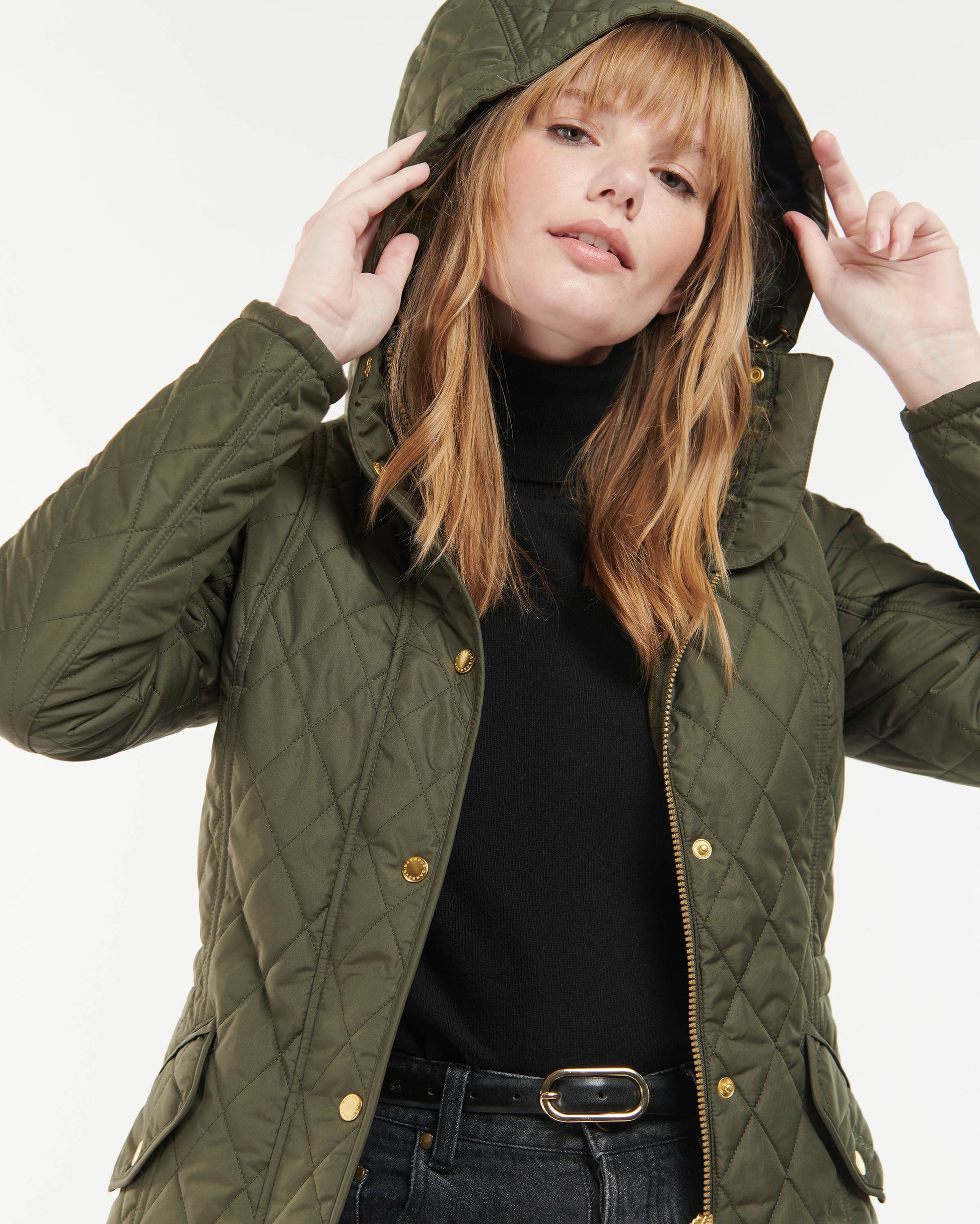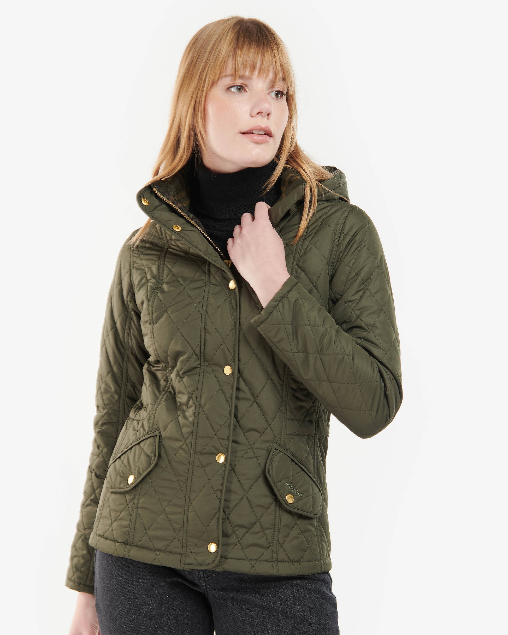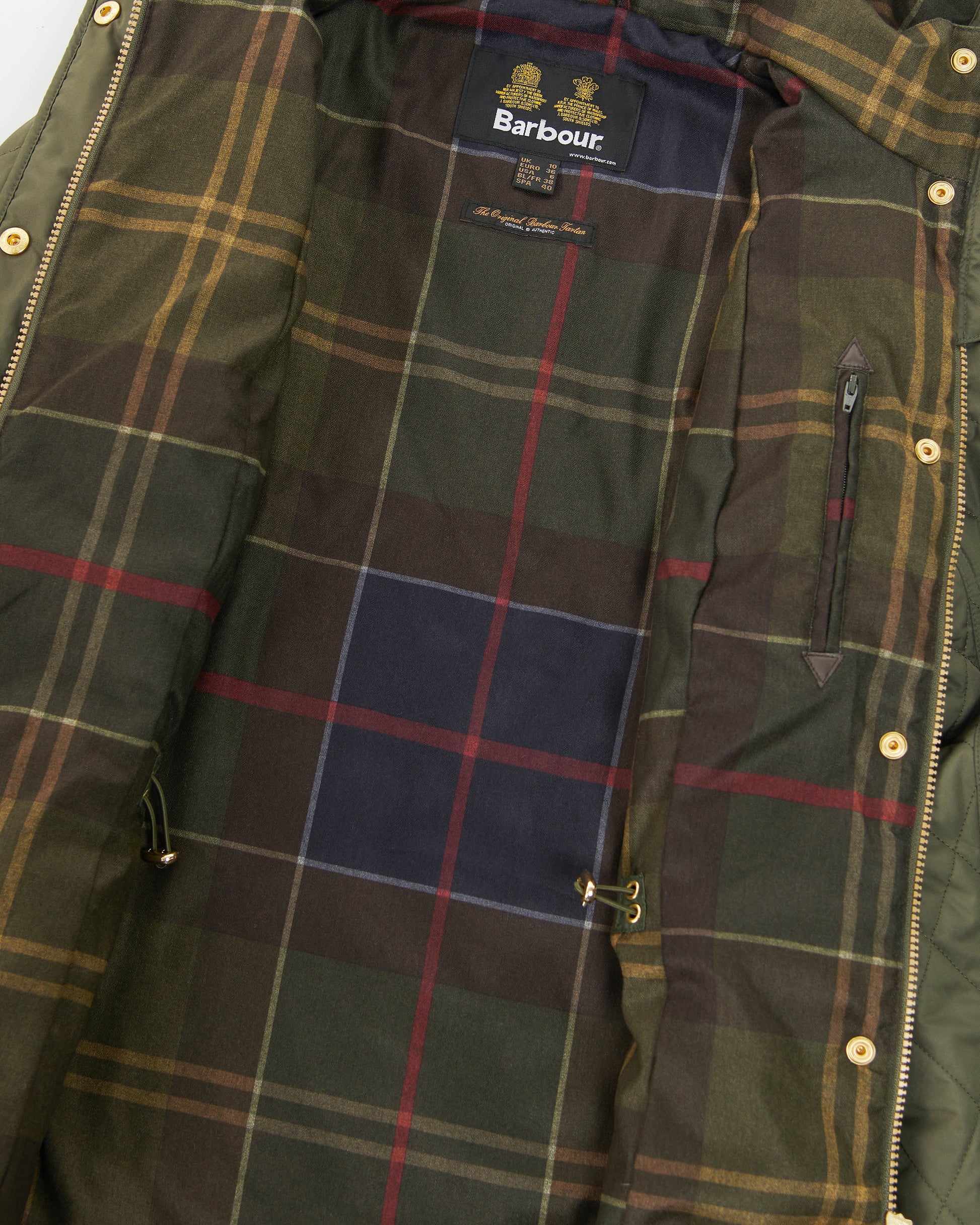 Cut to a flattering, feminine silhouette, this chic quilted jacket is perfect for the cooler months. Featuring a detachable hood and a concealed waist drawcord for the perfect fit, the lining holds Barbour tartan for a classic finish.