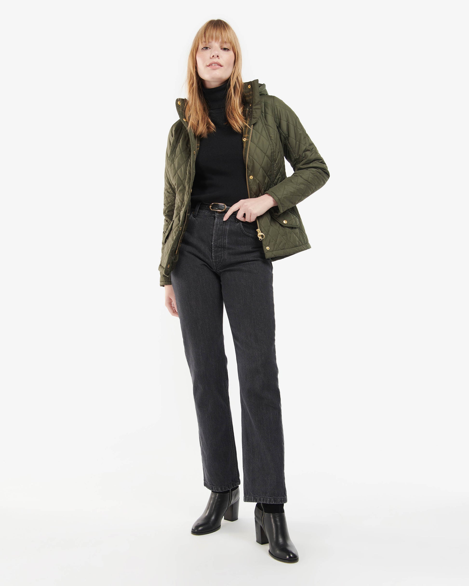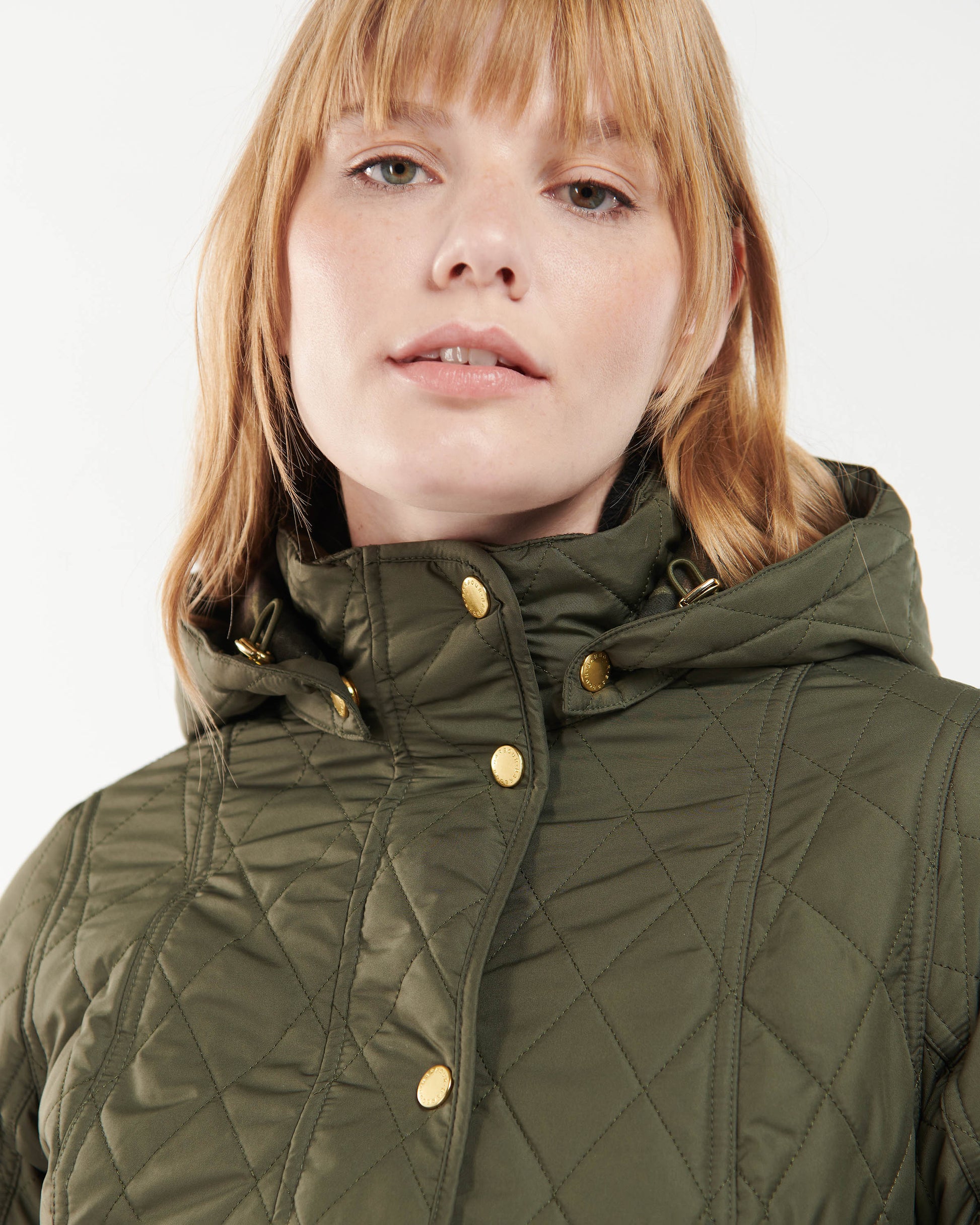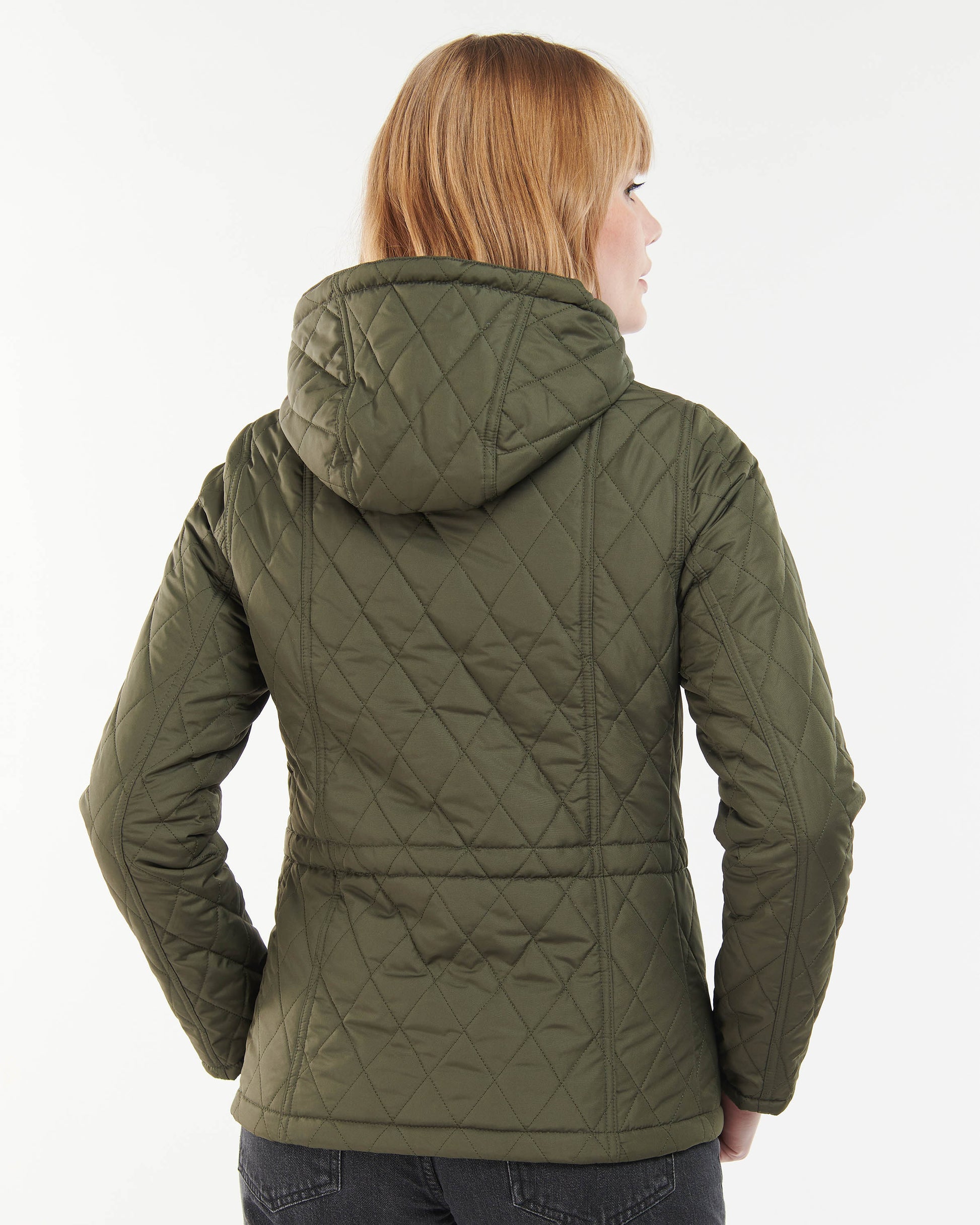 Cut to a flattering, feminine silhouette, this chic quilted jacket is perfect for the cooler months. Featuring a detachable hood and a concealed waist drawcord for the perfect fit, the lining holds Barbour tartan for a classic finish.
