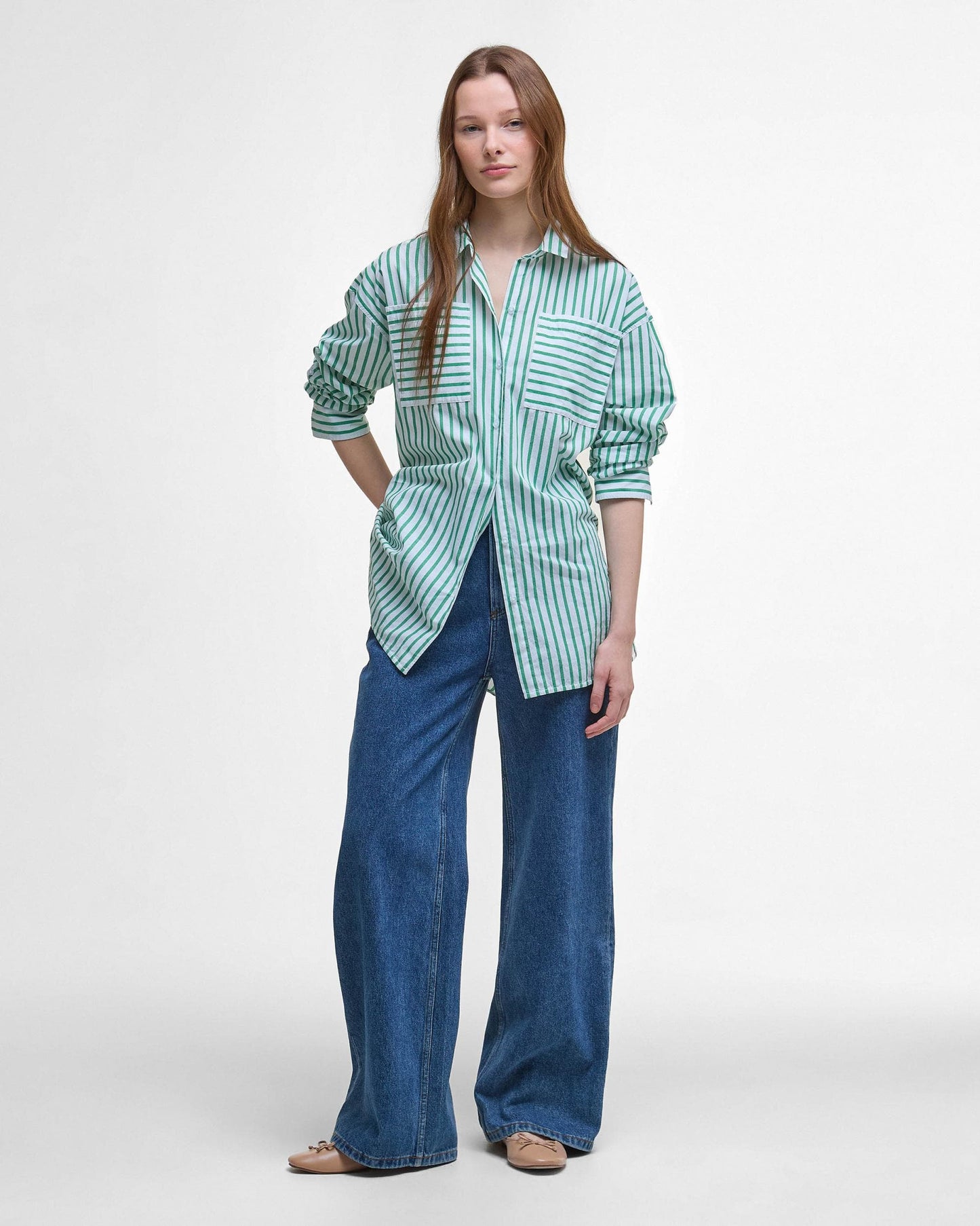 If you're looking to complete your selection of wardrobe staples, a blue striped poplin shirt is a must-have. The Barbour Nicola Long Sleeve Shirt has been crafted to a relaxed fit with rolled up sleeves. Perfect for tucking in or wearing loose over trousers or leggings, this style is perfect for layering as the seasons change.