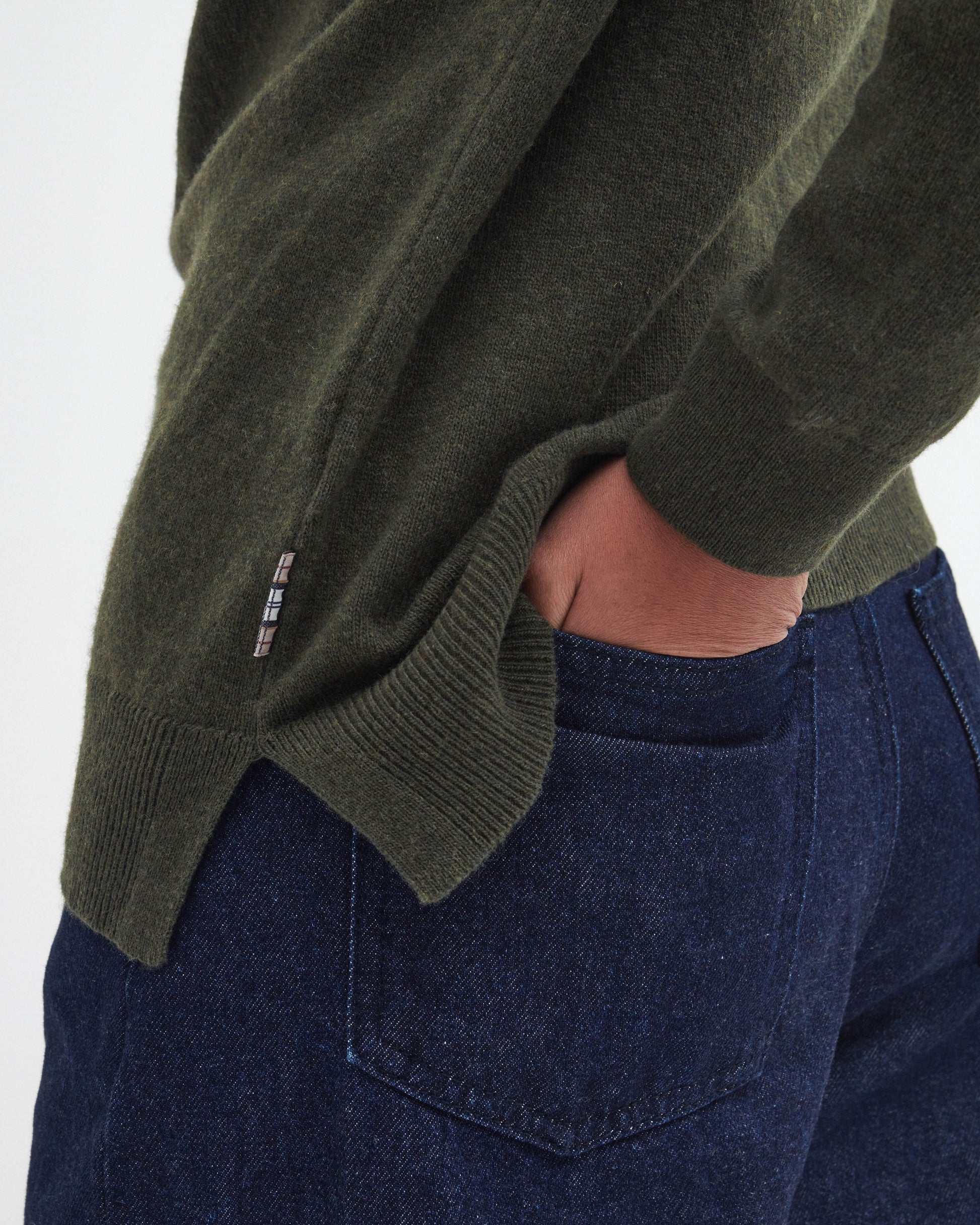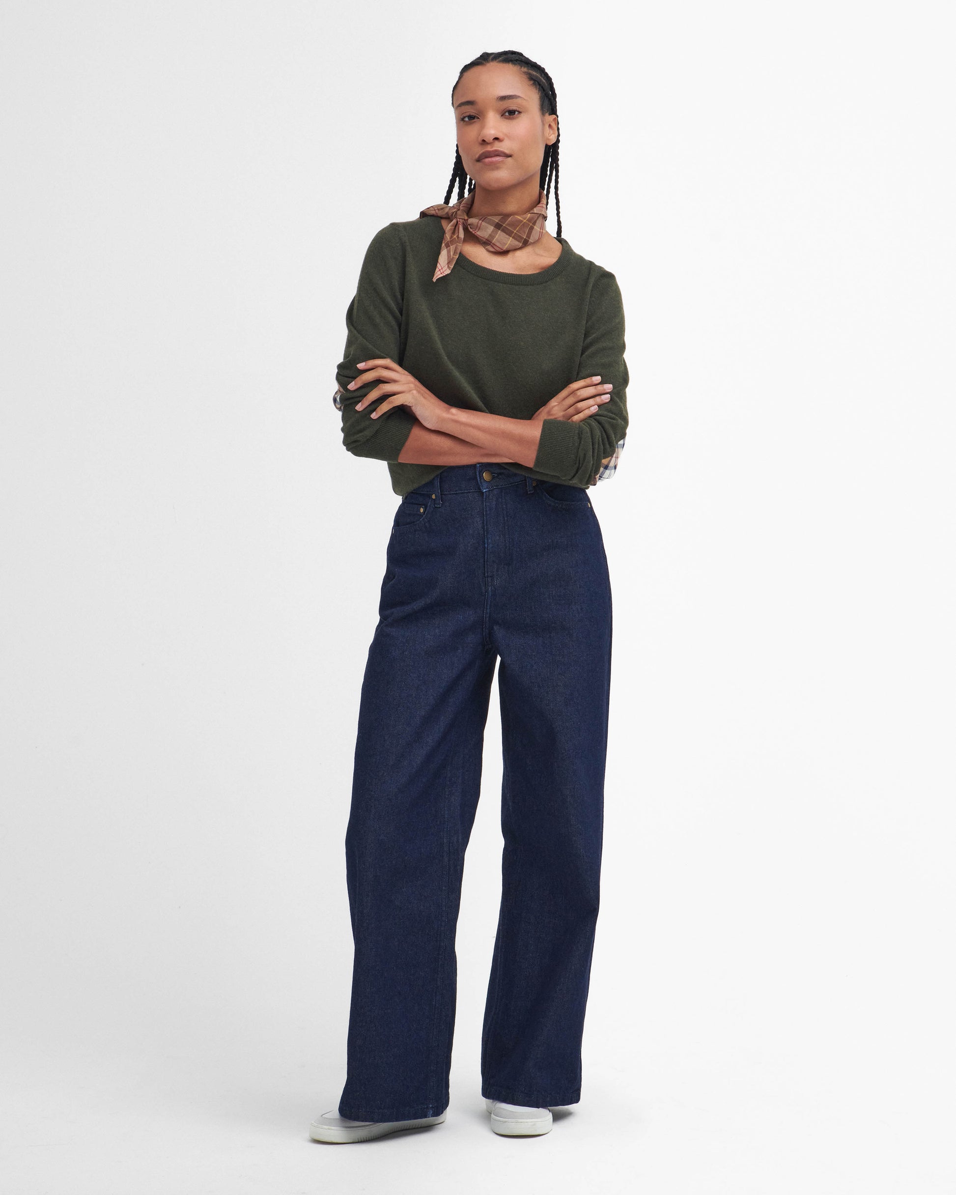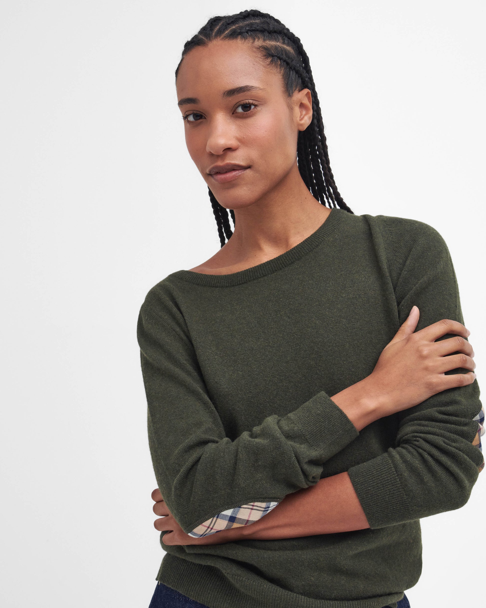 Barbour Pendle Crew Knitted Womens Jumper in Olive/Hessian Tartan