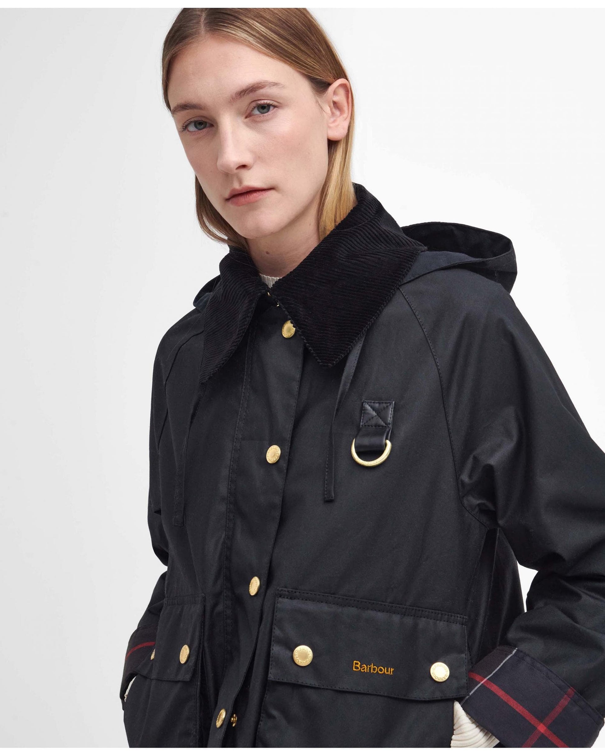 Barbour Reighton Womens Wax Jacket in Black/Classic