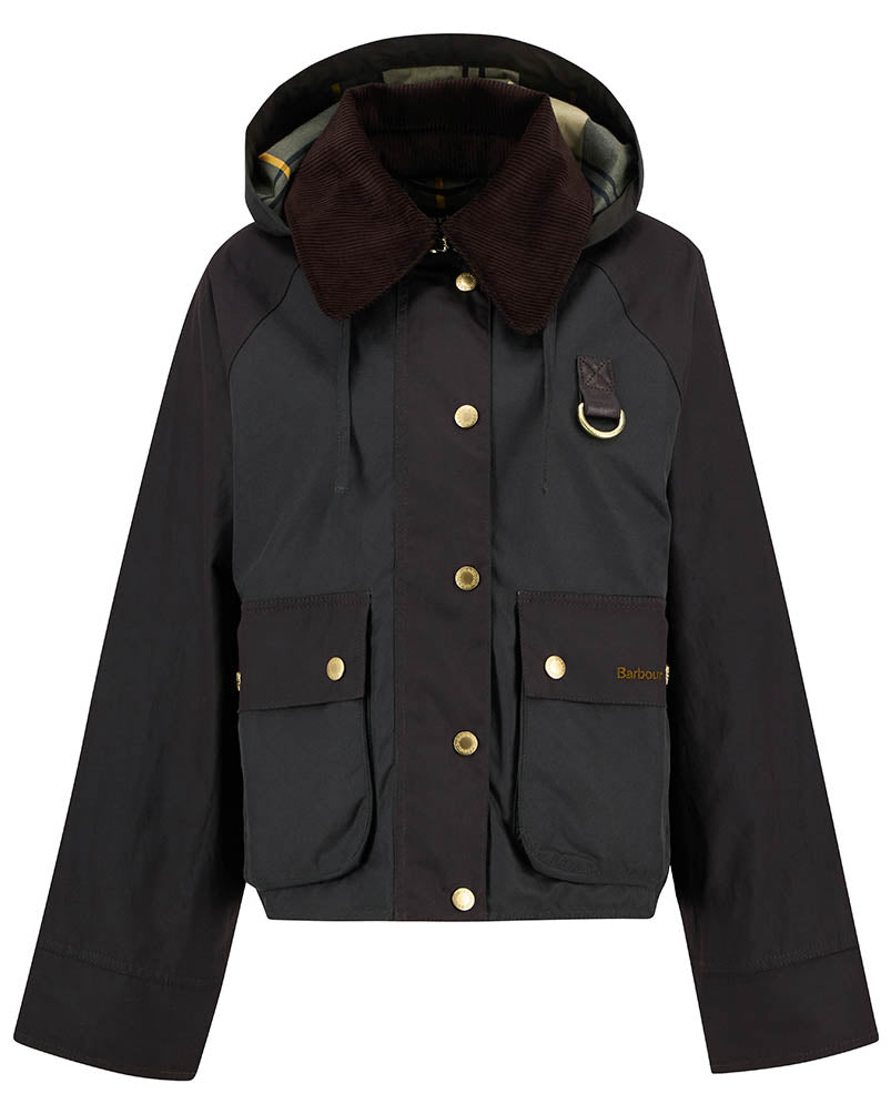 Inspired by the archive Spey Waxed Jacket, the Barbour Reighton Spey Waxed Jacket showcases all of the classic details such as the D-ring tab to the chest and a fixed hood. Complete with an oversized cord collar for a contemporary finish and tartan trims to the cuffs for a playful finish.