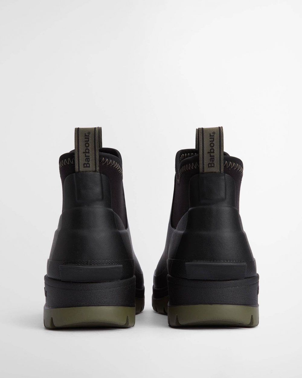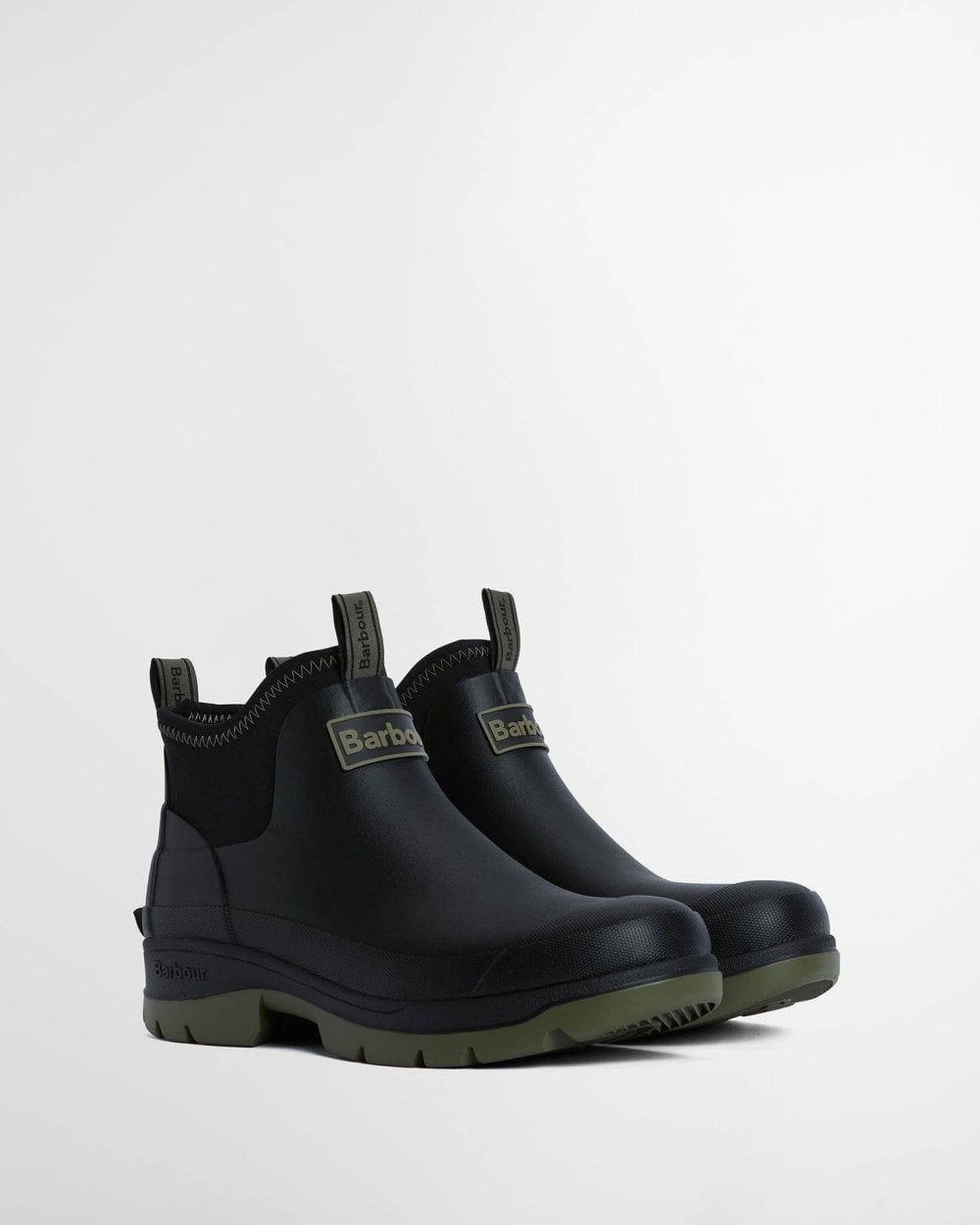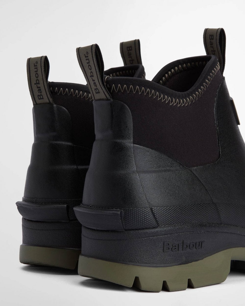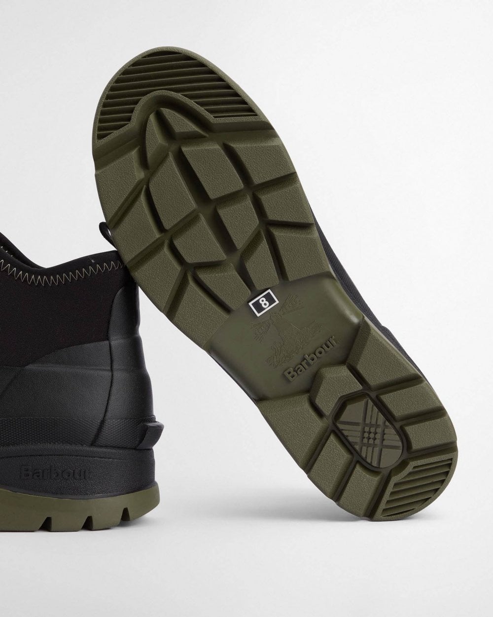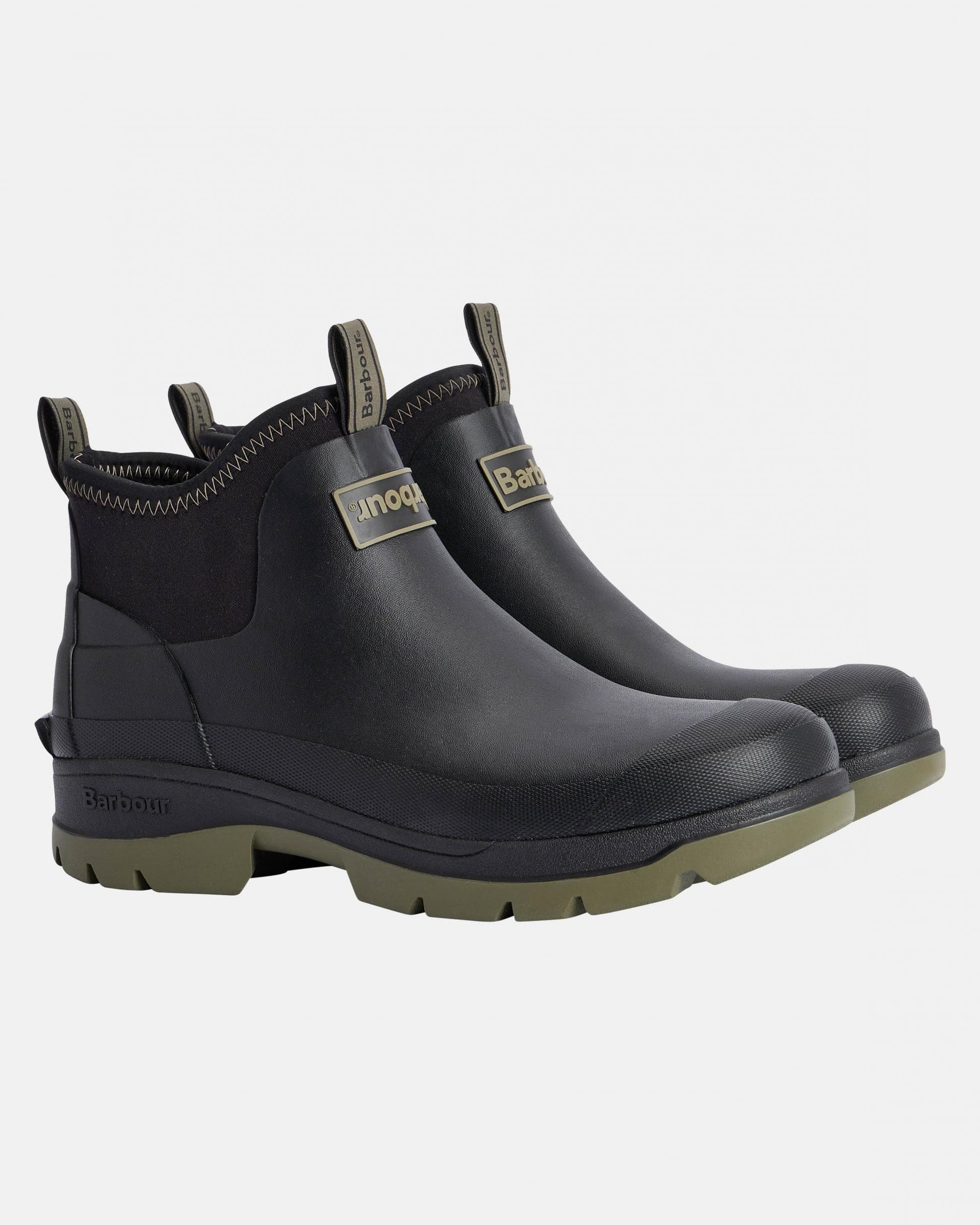 Barbour wellington on ridge sole unit with sidewall Barbour branding and pull tabs to front and back.