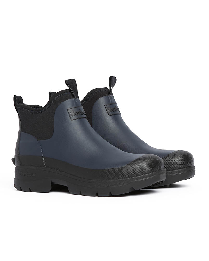 Barbour wellington on ridge sole unit with sidewall Barbour branding and pull tabs to front and back.