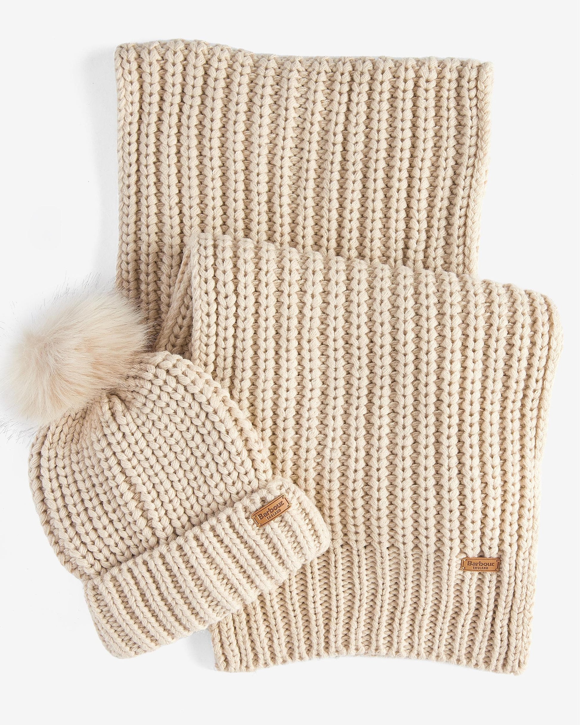 Barbour Saltburn Beanie & Scarf Gift Set in Pearl