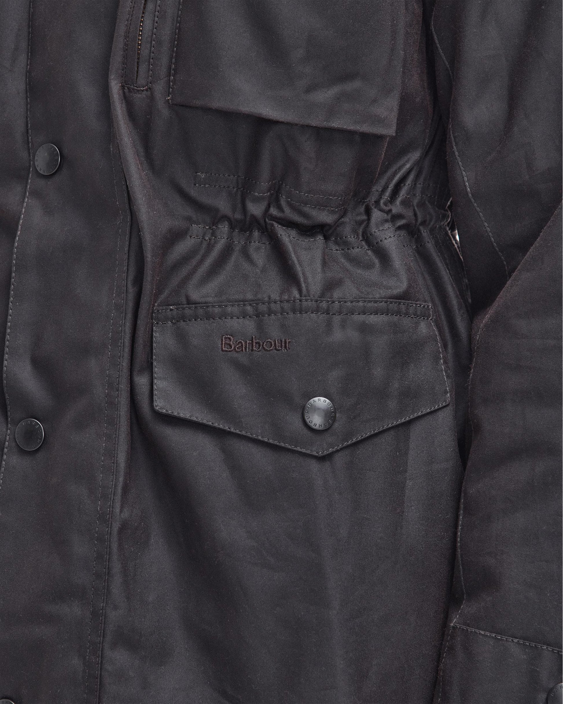This subtly tailored version of Barbour's popular Sapper Jacket blends rugged functionality with an effortlessly smart look. It's made from lighter-weight Sylkoil waxed cotton and features a drawcord waist, four outer pockets and a stowaway waterproof hood.