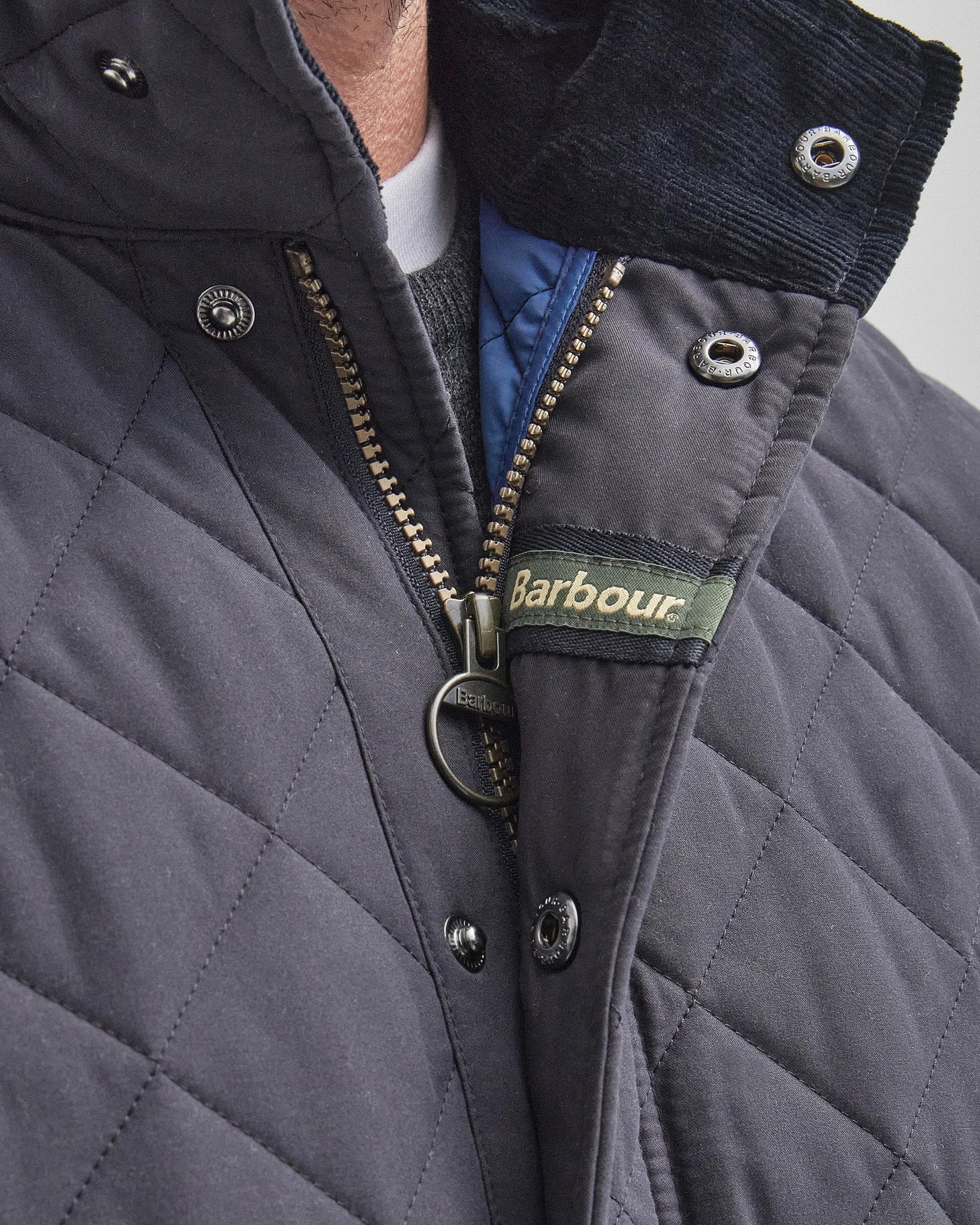 The Barbour Shoveler Quilted Jacket is cut for a traditional relaxed fit with the signature diamond-quilted outer, needlecord inner collar and a contrast lining. Studded flap pockets and an additional zipped pocket add extra practicality.