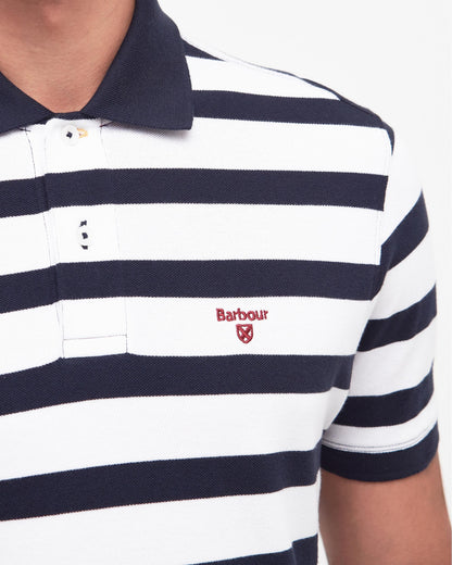 Putting a twist on the traditional minimal profile of Barbour's classic polo shirts, the Barbour Striped Sports Polo Shirt boasts a bold contrasting striped print all over for a modern take. Simply pair this daring design with tailored trousers or shorts for a playful take on smart-casual styling.