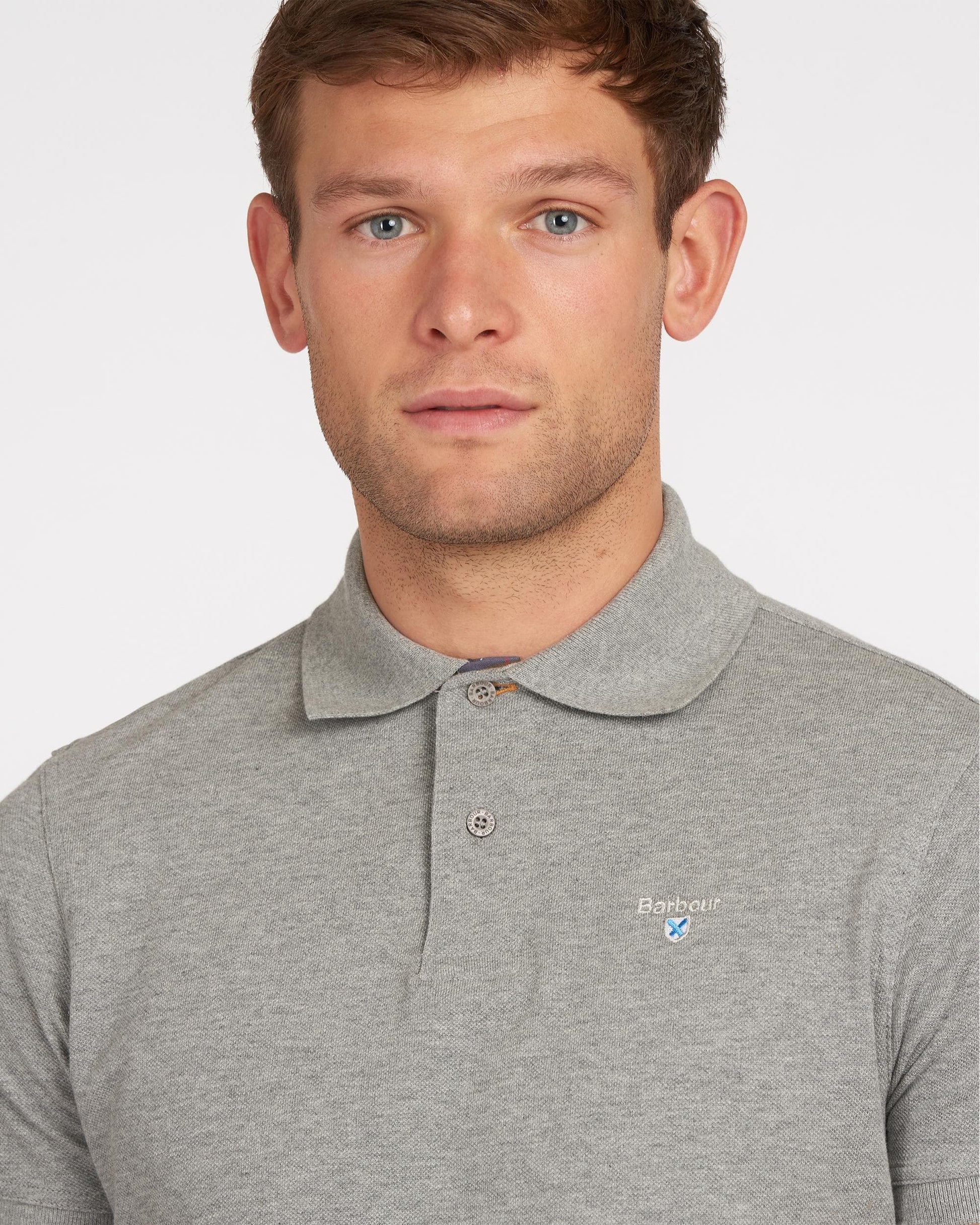 Barbour Tartan Pique Mens Polo in Grey Marl