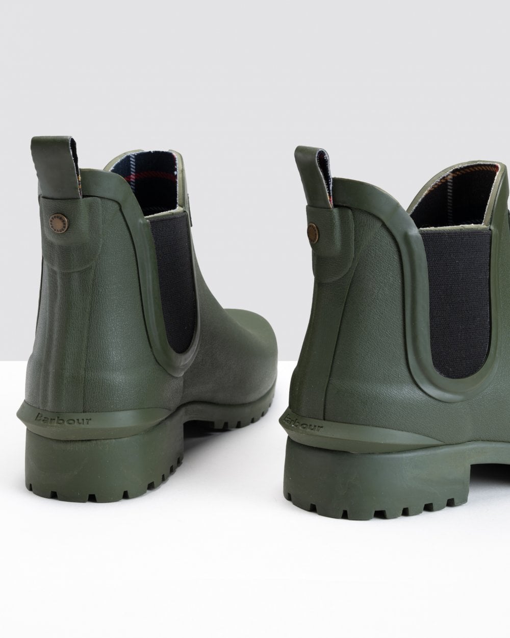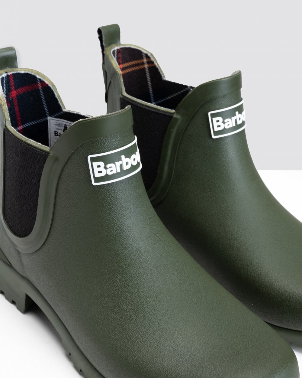 A fashion-focused twist on the classic wellington, this Chelsea-style boot features Barbour's signature tartan lining and a commando-style sole. Finished with a Barbour logo to the outer.