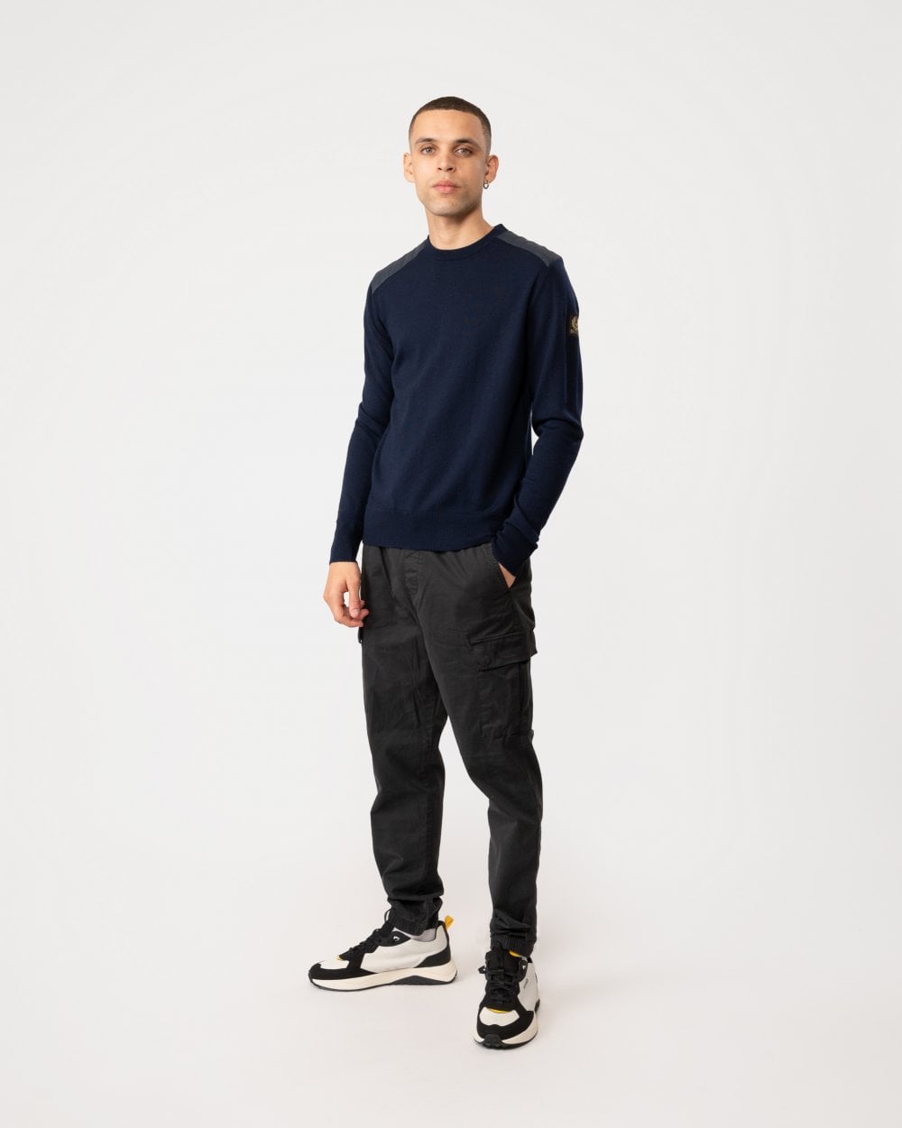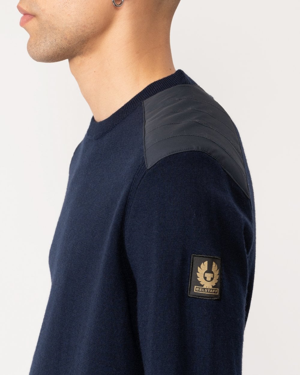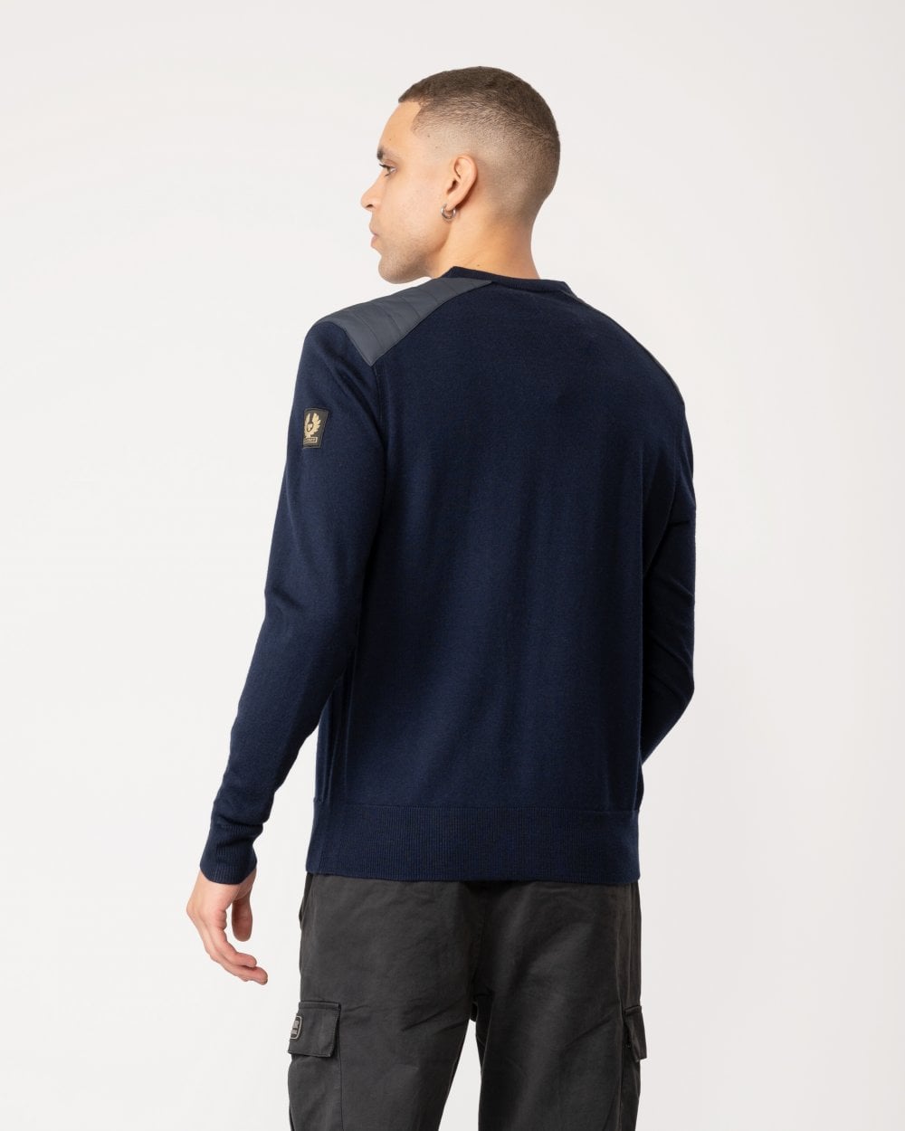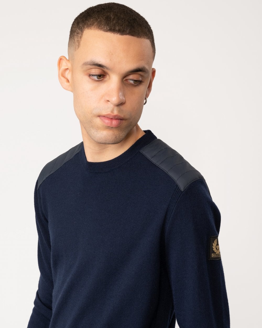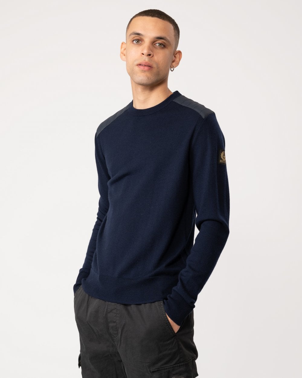 Belstaff Kerrigan Mens Merino Wool Crew Neck Jumper in Dark Ink