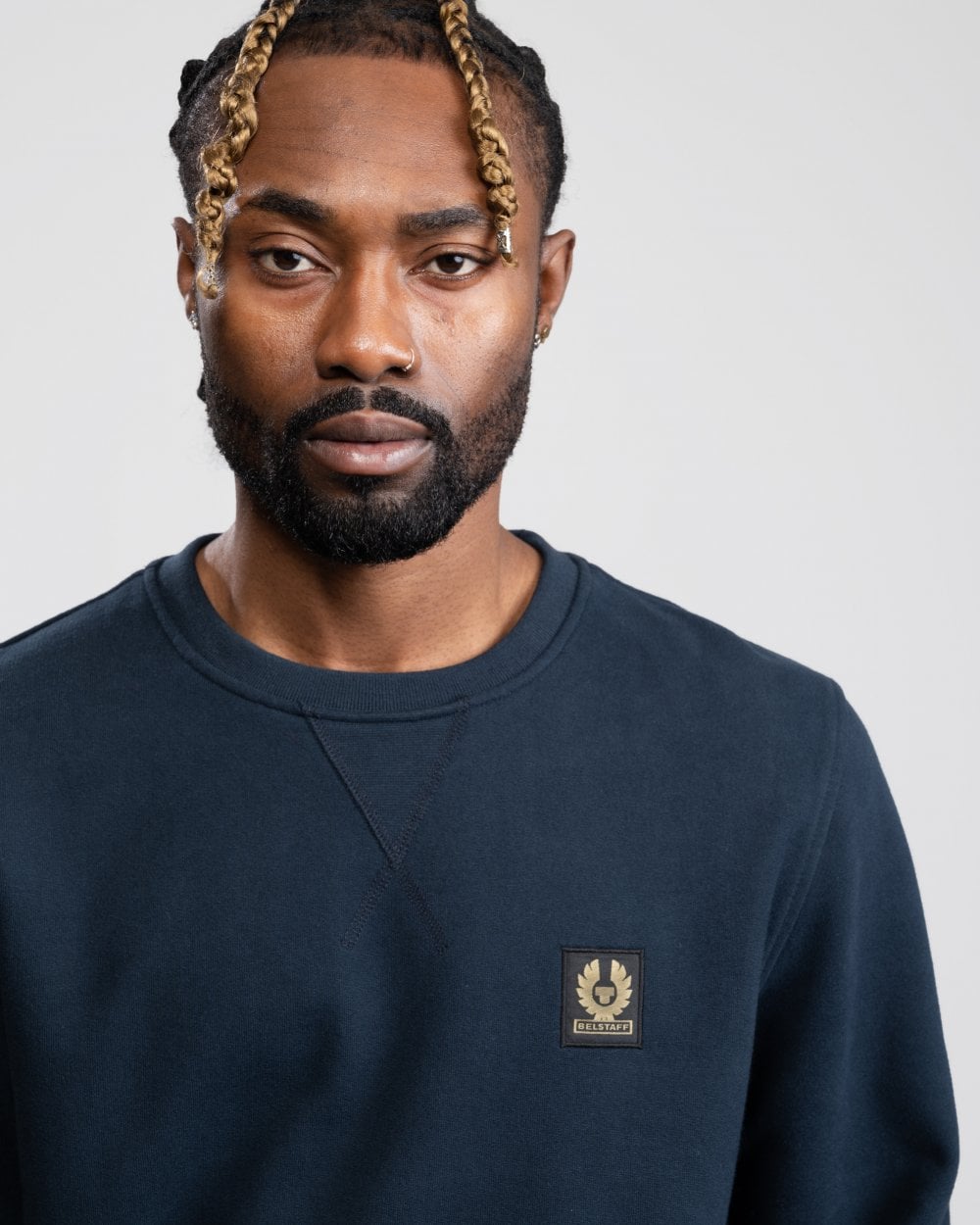 Belstaff Mens Crew Neck Sweatshirt With Logo Patch in Dark Ink