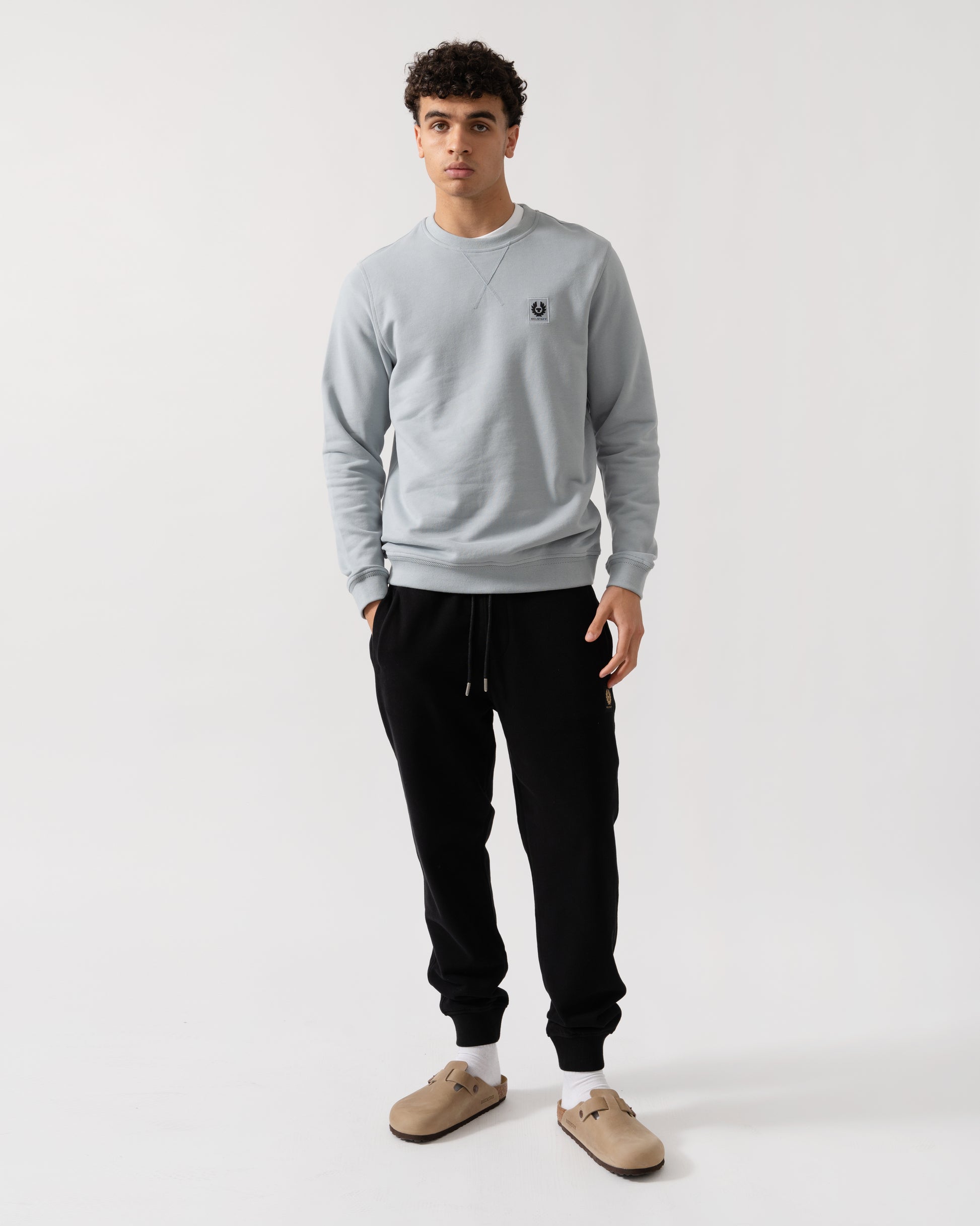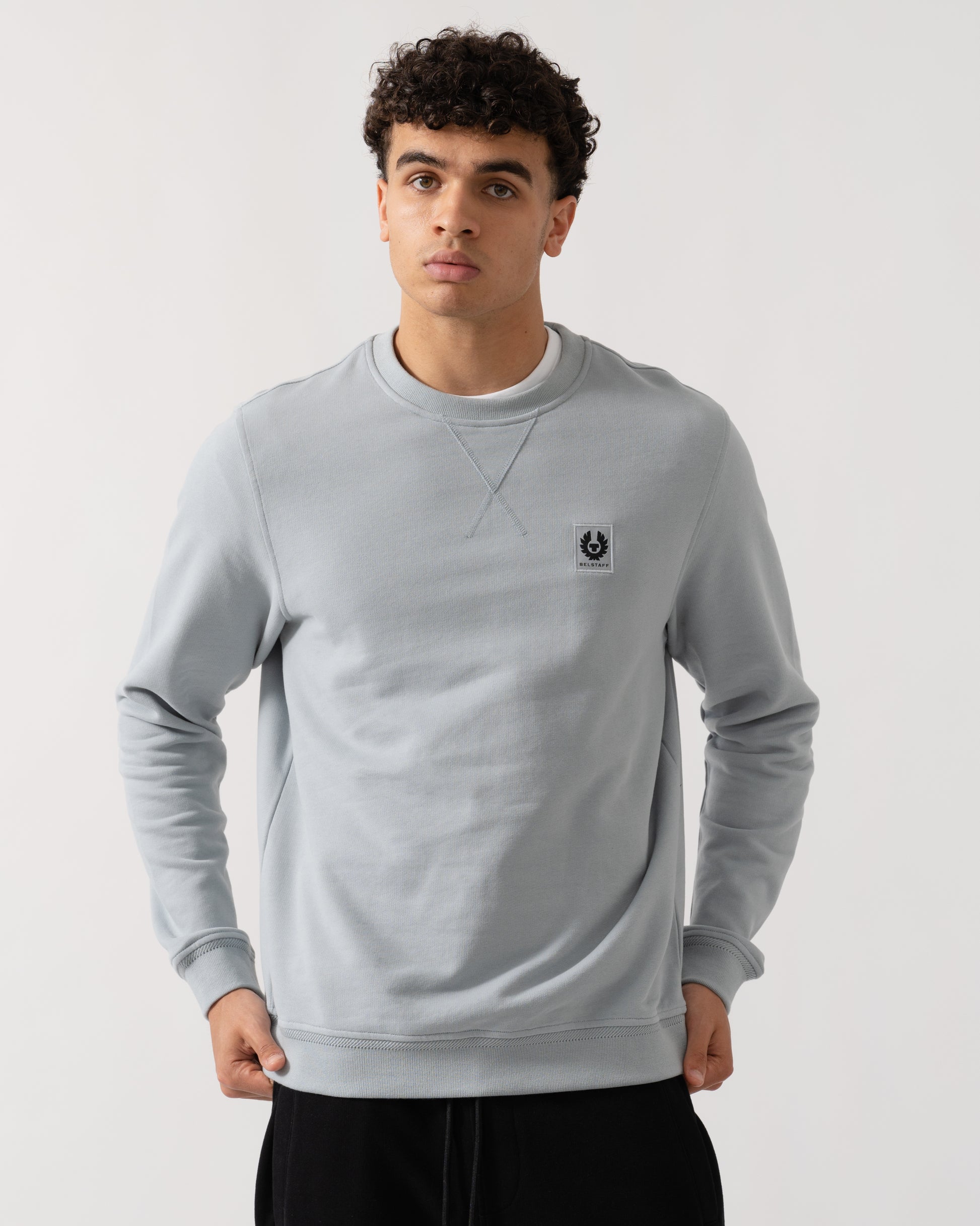 Belstaff Mens Crew Neck Sweatshirt With Logo Patch - Silver Birch - Silver Birch