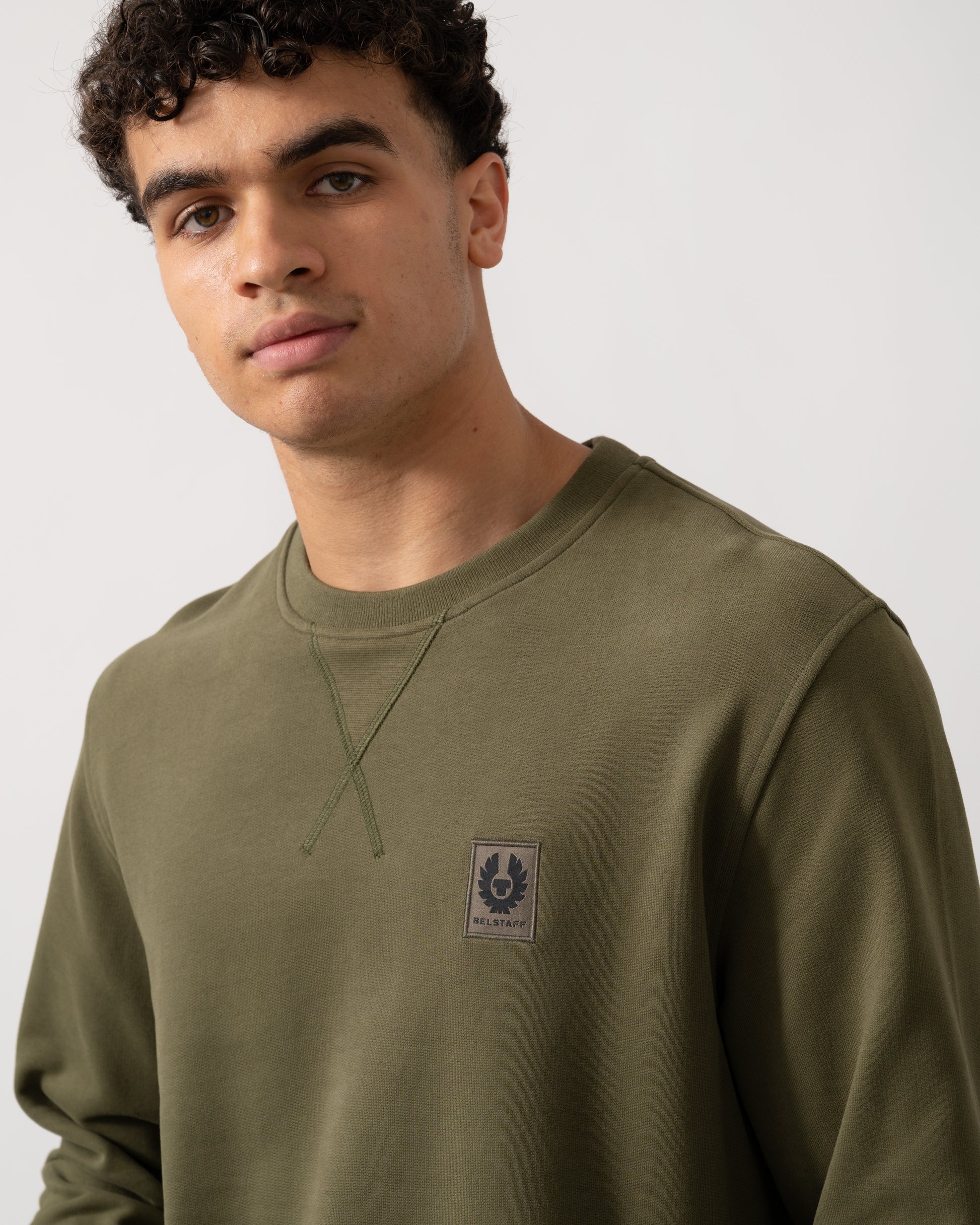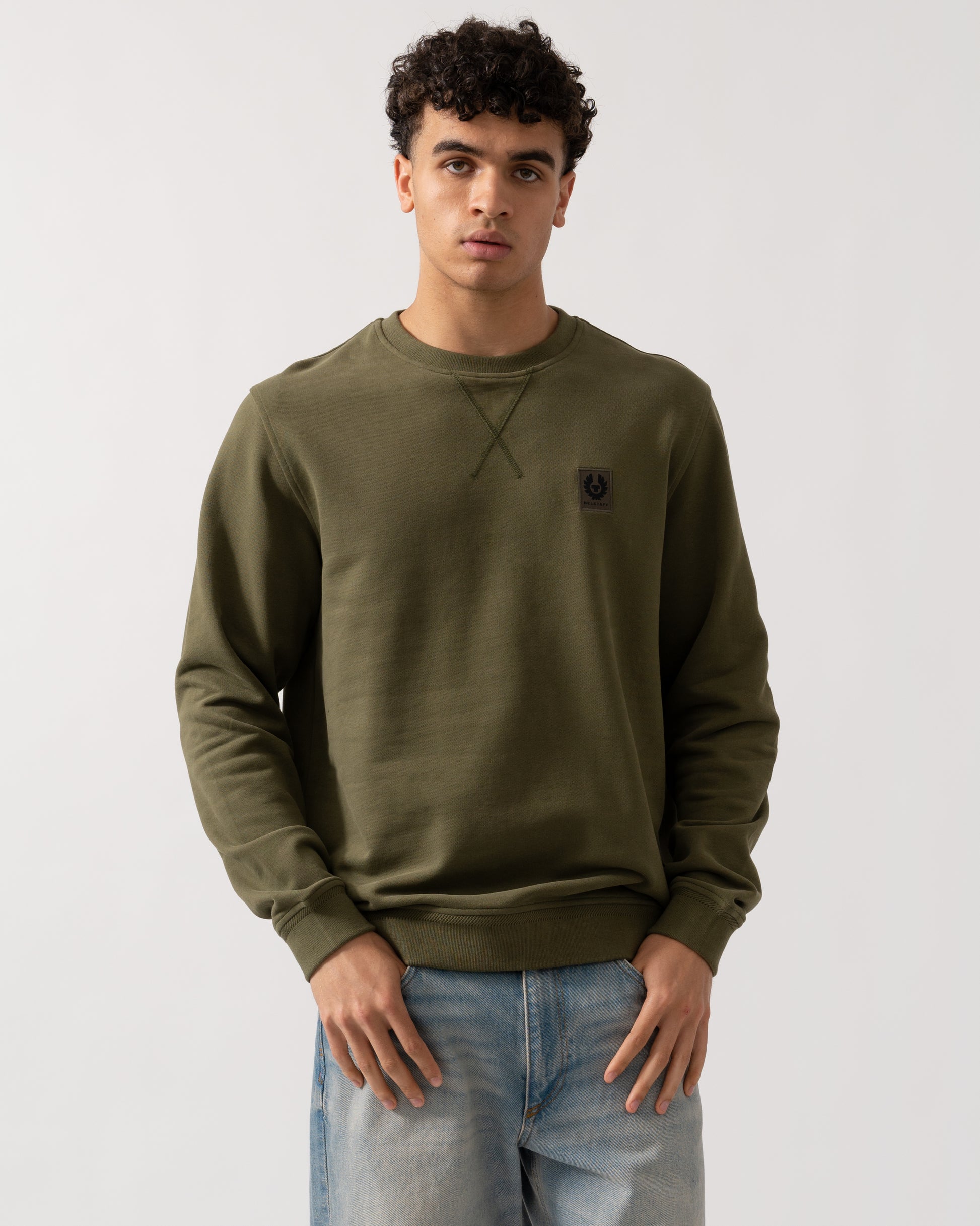 Belstaff Mens Crew Neck Sweatshirt With Logo Patch - Surplus Green - Surplus Green