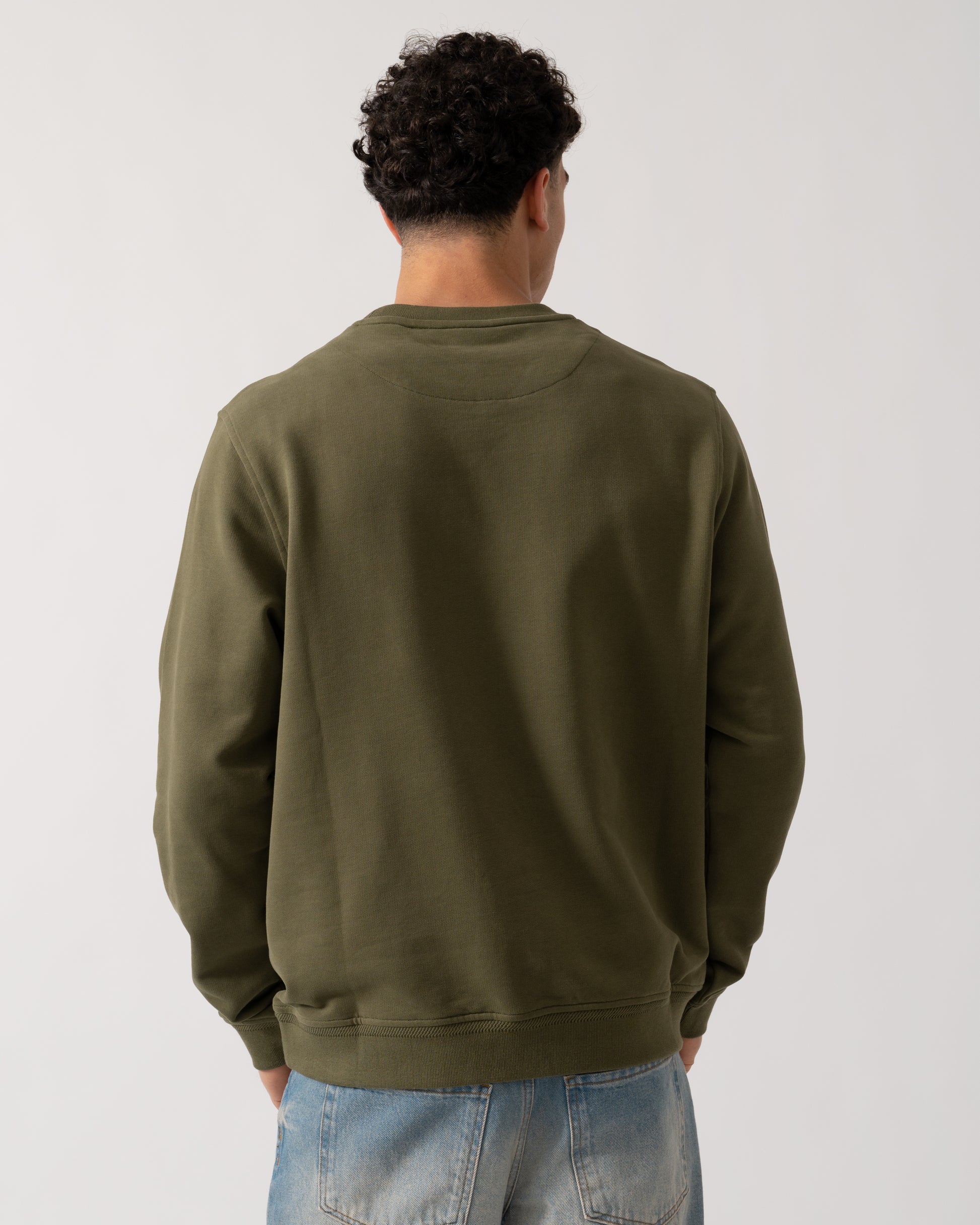 Mens Crew Neck Sweatshirt With Logo Patch - True Olive
