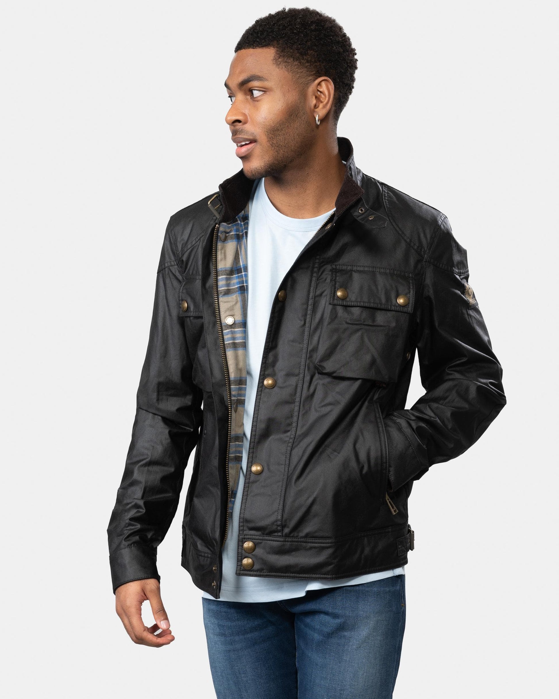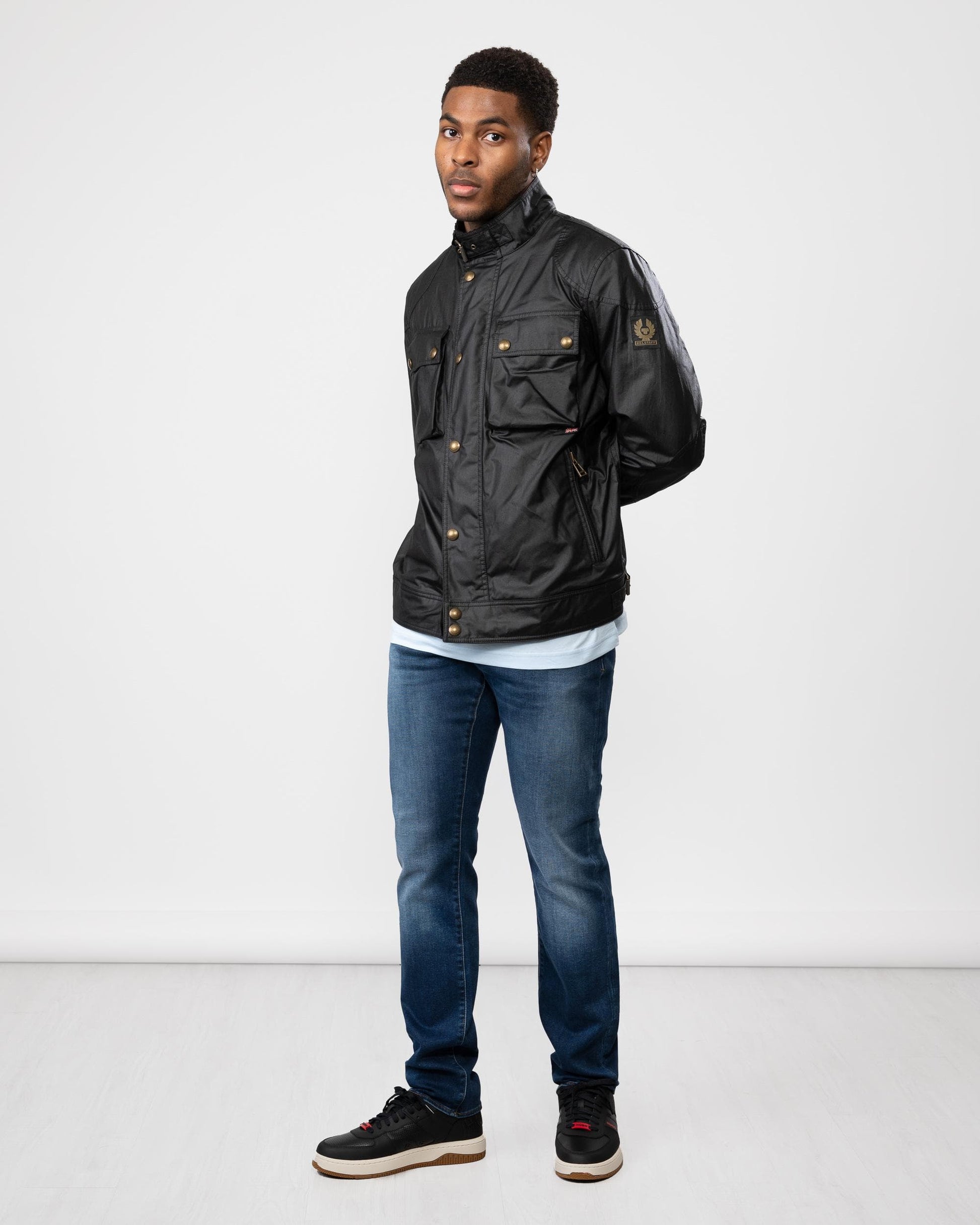 Belstaff Racemaster Mens Waxed Cotton Compact Field Jacket in Black