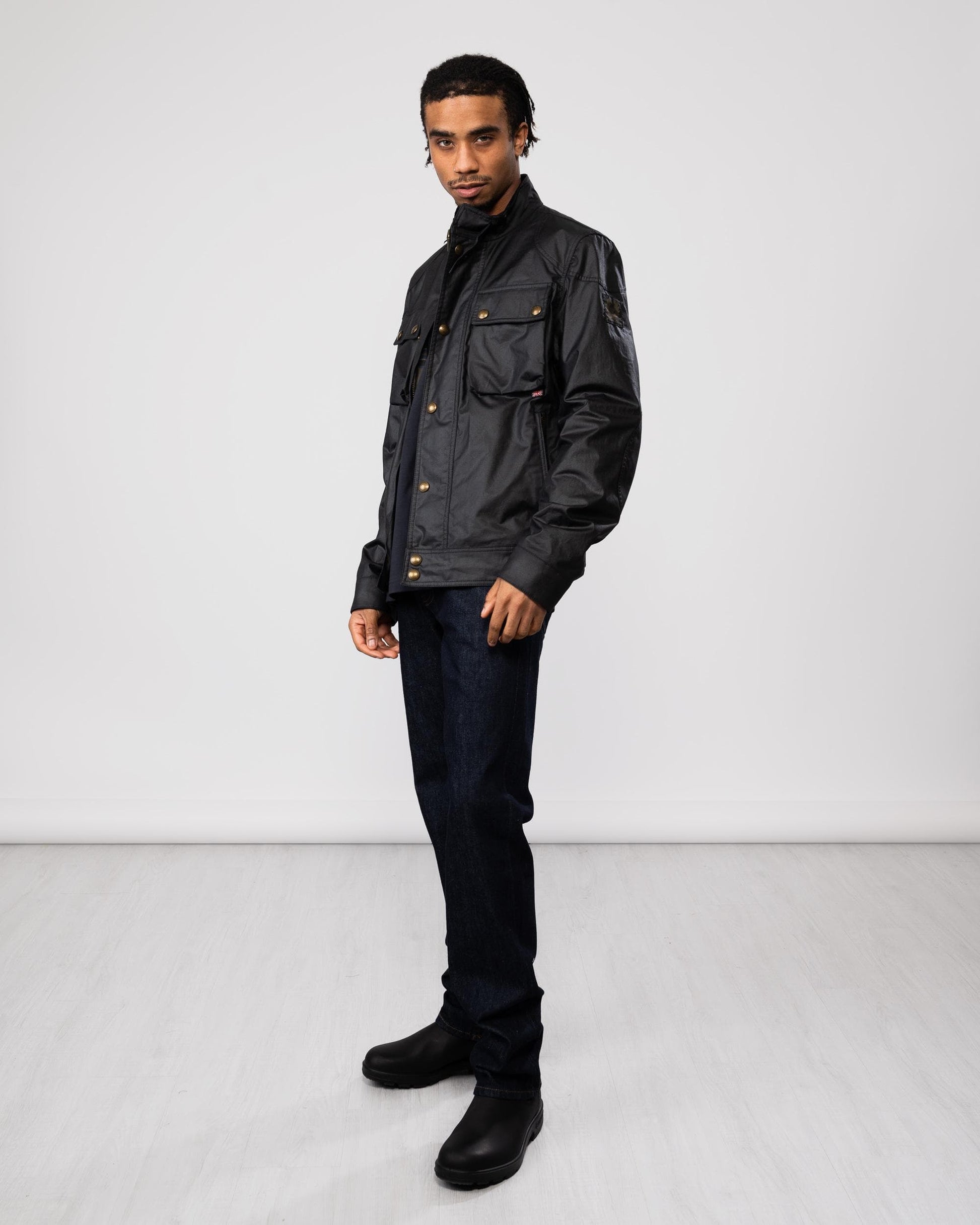 Belstaff Racemaster Mens Waxed Cotton Compact Field Jacket in Dark Navy