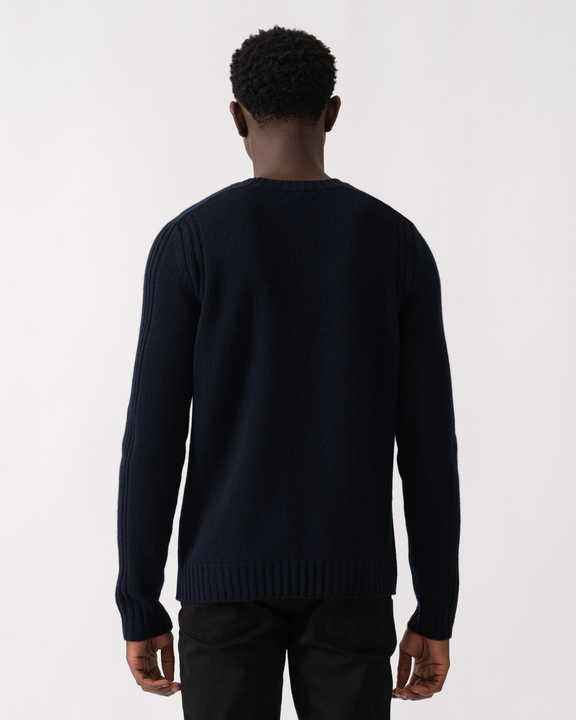 A classic knit sweater finished with Belstaff's Phoenix Logo. This straightforward Dark Ink knit is a staple for the season.
