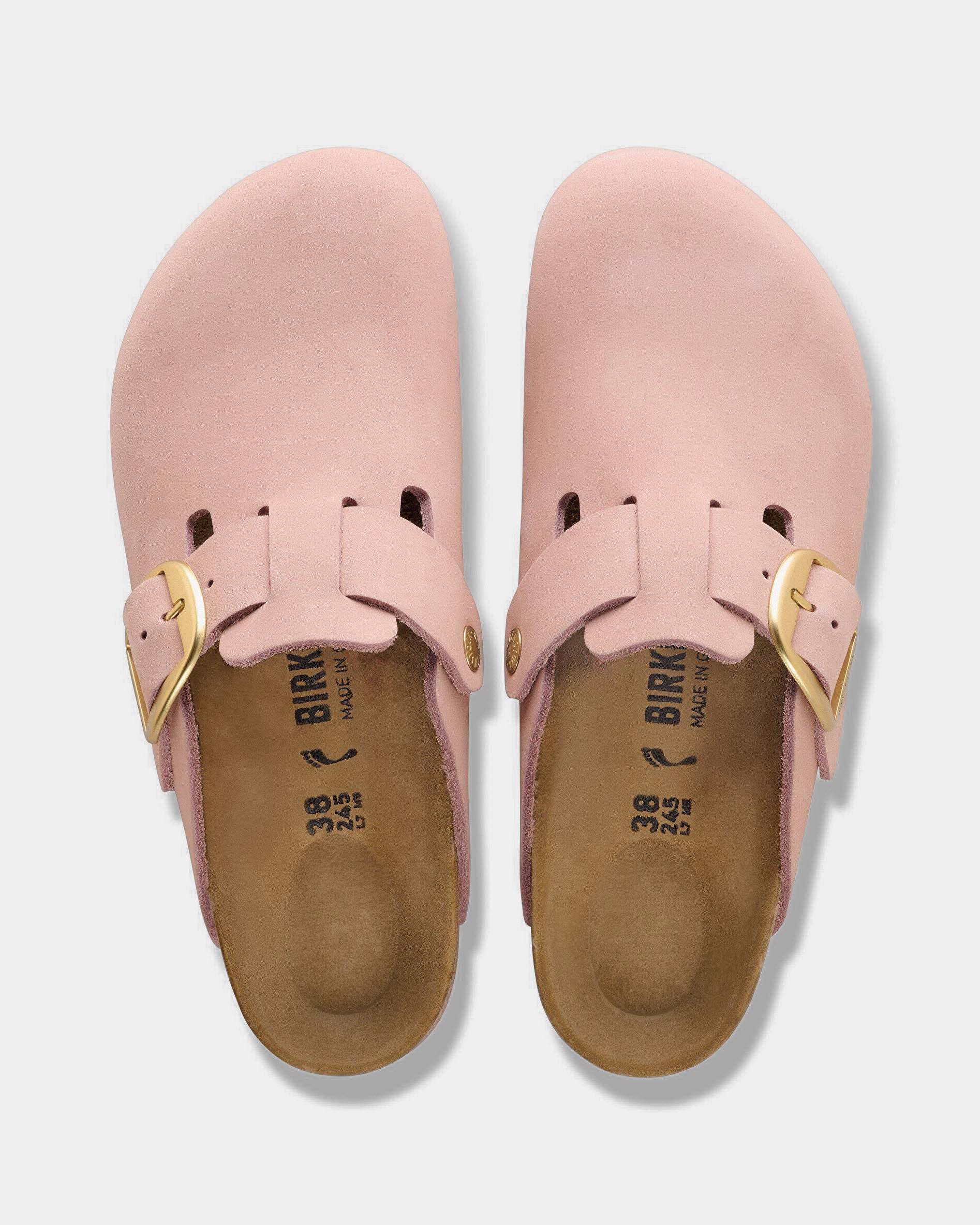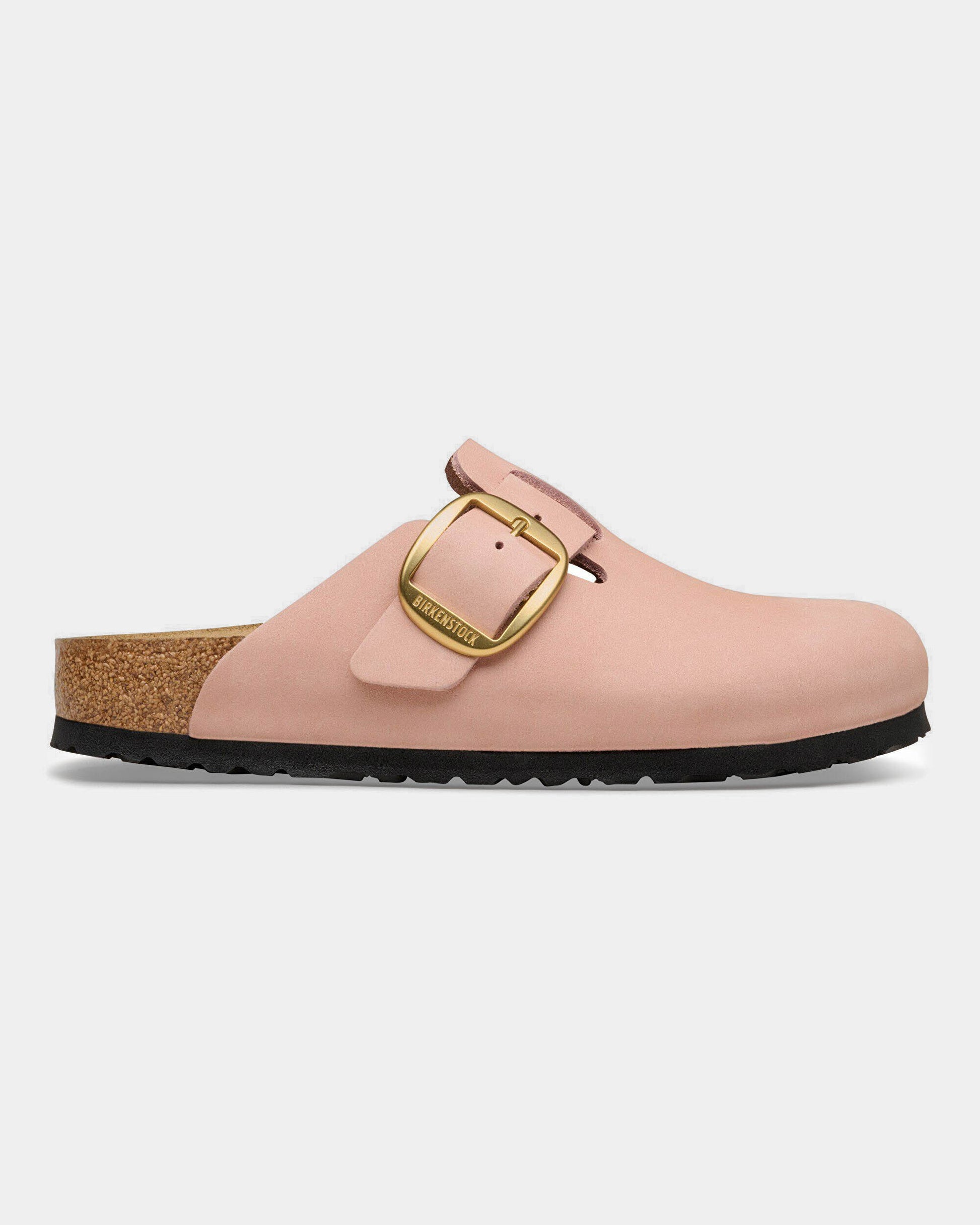 Boston Big Buckle Nubuck Leather Womens Clogs - Soft Pink