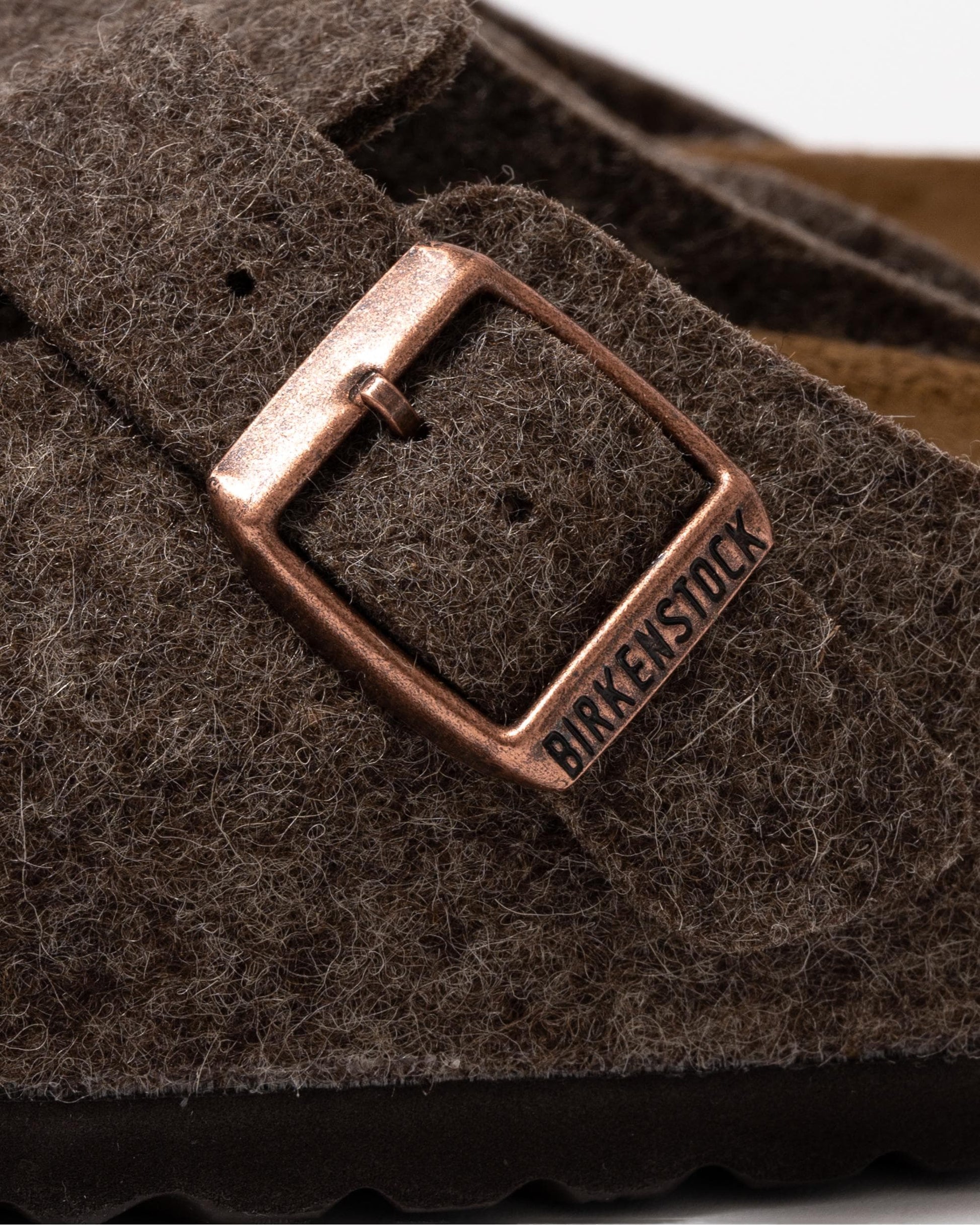 This version of the Boston clog, a classic BIRKENSTOCK model, comes with a shaft in soft, high-quality woolen felt. The clog can be adapted to all feet thanks to a strap on the upper edge of the shaft and a sturdy metal buckle.