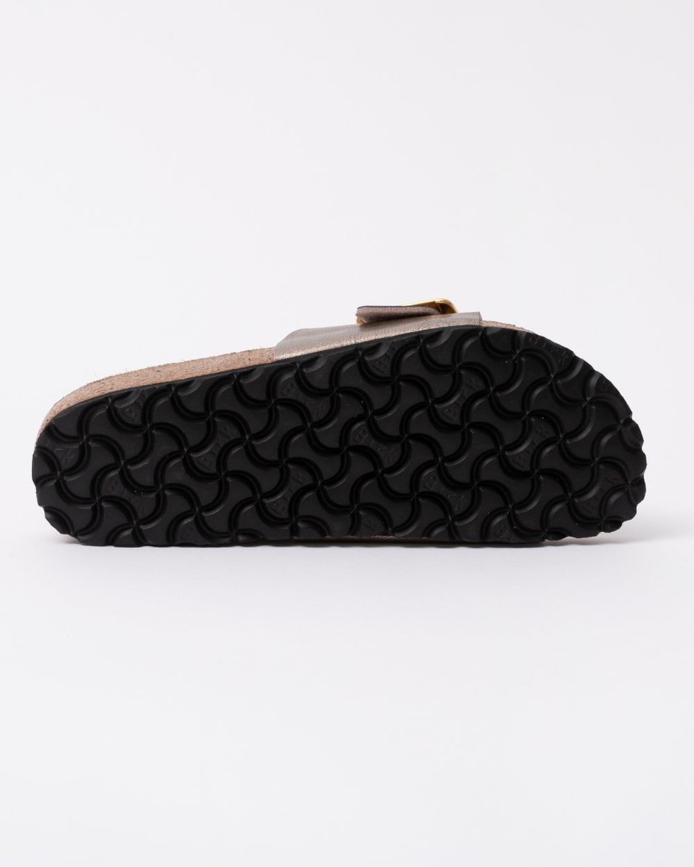 The design of the BIRKENSTOCK Catalina was inspired by the classic Madrid with a strap and metal buckle. The slightly wider strap lends this sandal a modern and elegant appearance. This sandal version has a silky sheen finish. The shiny, gently rounded padded buckles are especially eye-catching. The upper is made from the skin-friendly, hard-wearing synthetic material Birko-Flor®.
